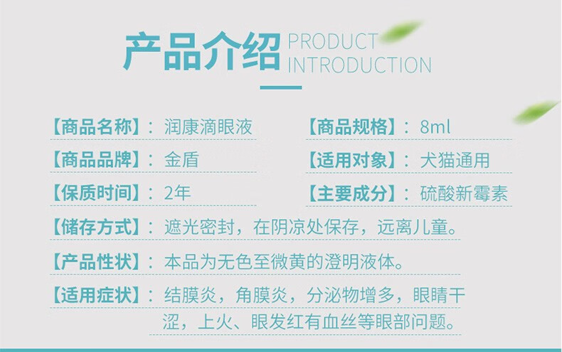 金盾润康滴眼液宠物去泪痕消角膜炎猫狗眼部清洁抗菌8ml