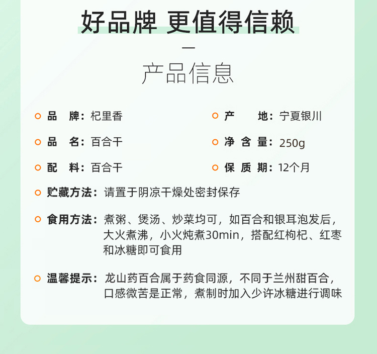 【杞里香百合干250g】干货泡水新鲜食用罐非湖南龙牙 地道原产地 契约基地种植可搭配银耳莲子