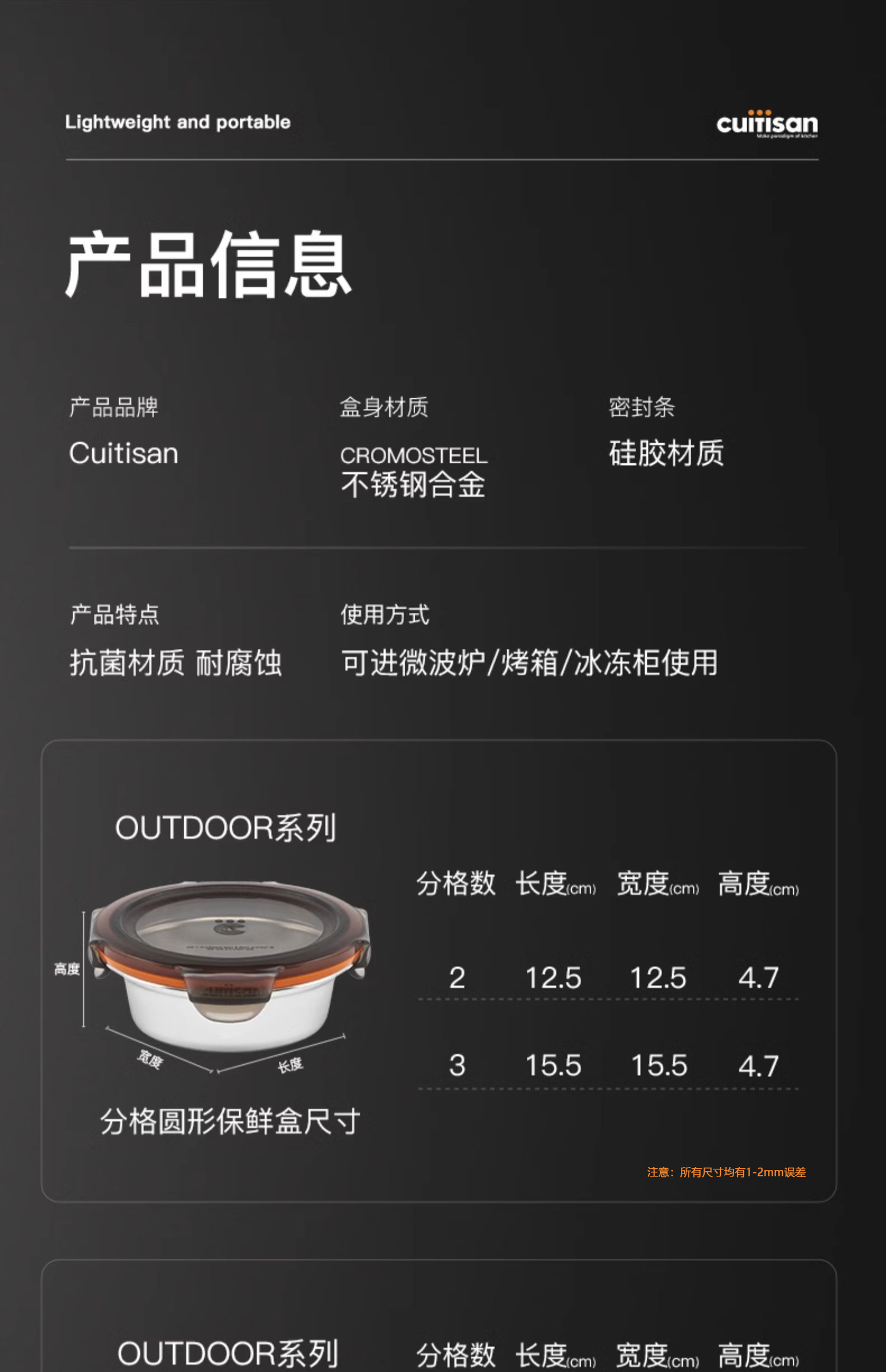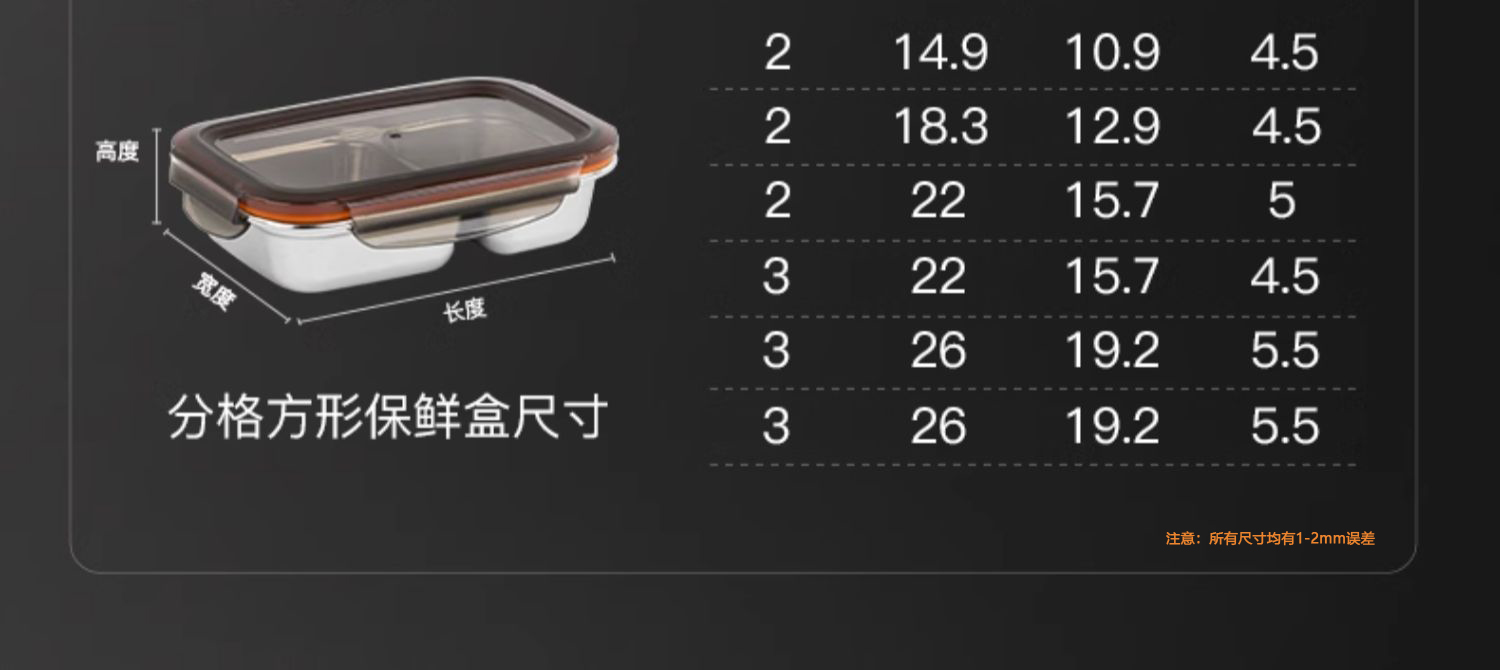Cuitisan酷艺师分格系列304不锈钢保鲜盒分格便当饭盒微波炉加热专用餐盒