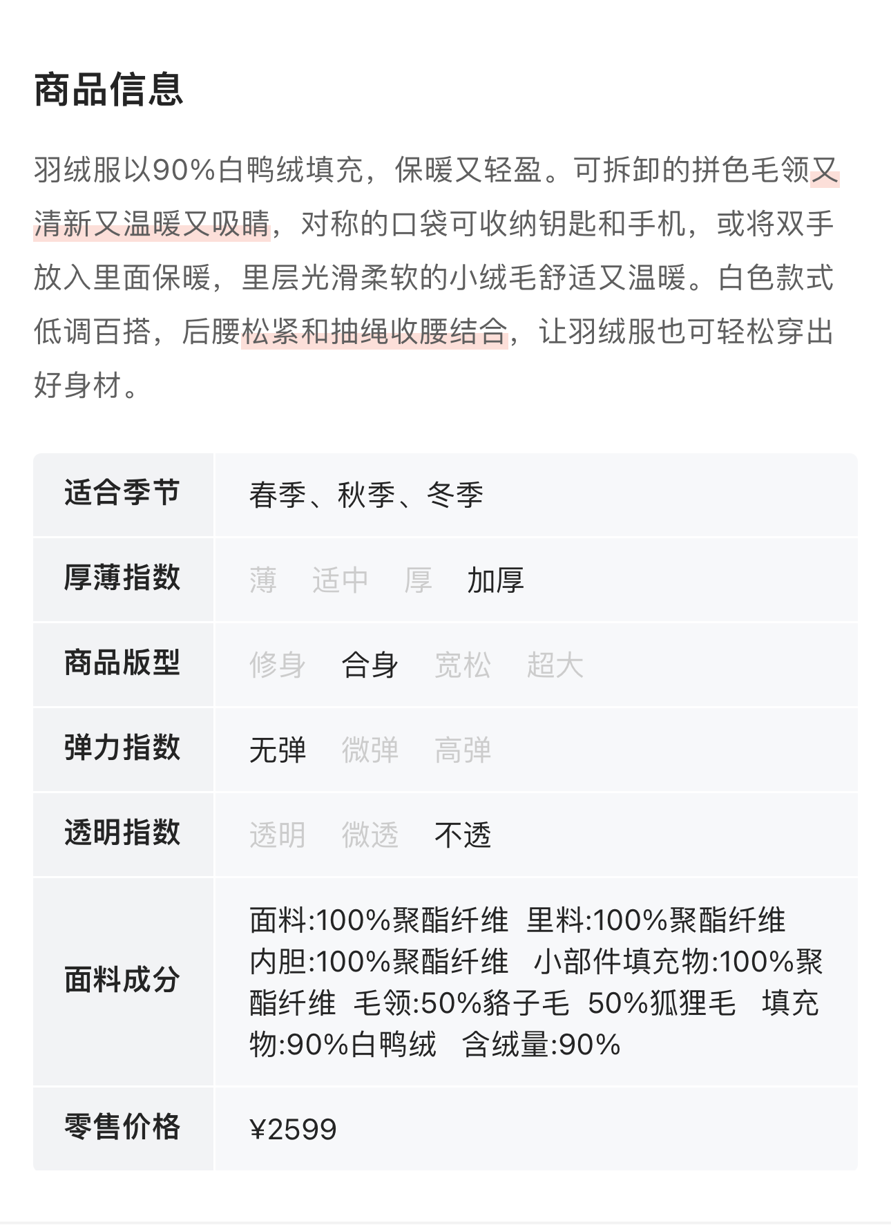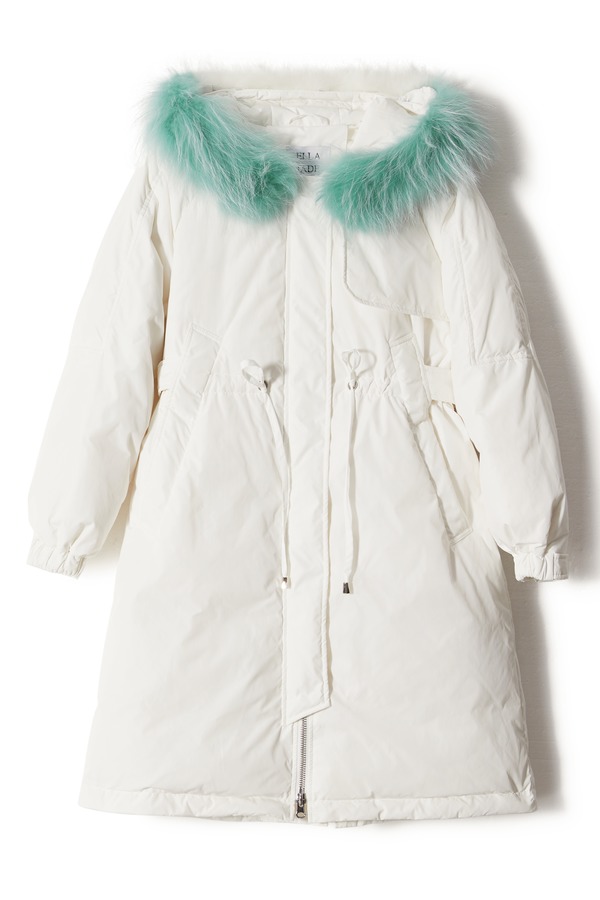 ELLA JADE 抽绳收腰拼色毛领羽绒服 8451