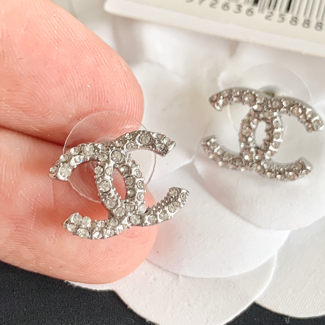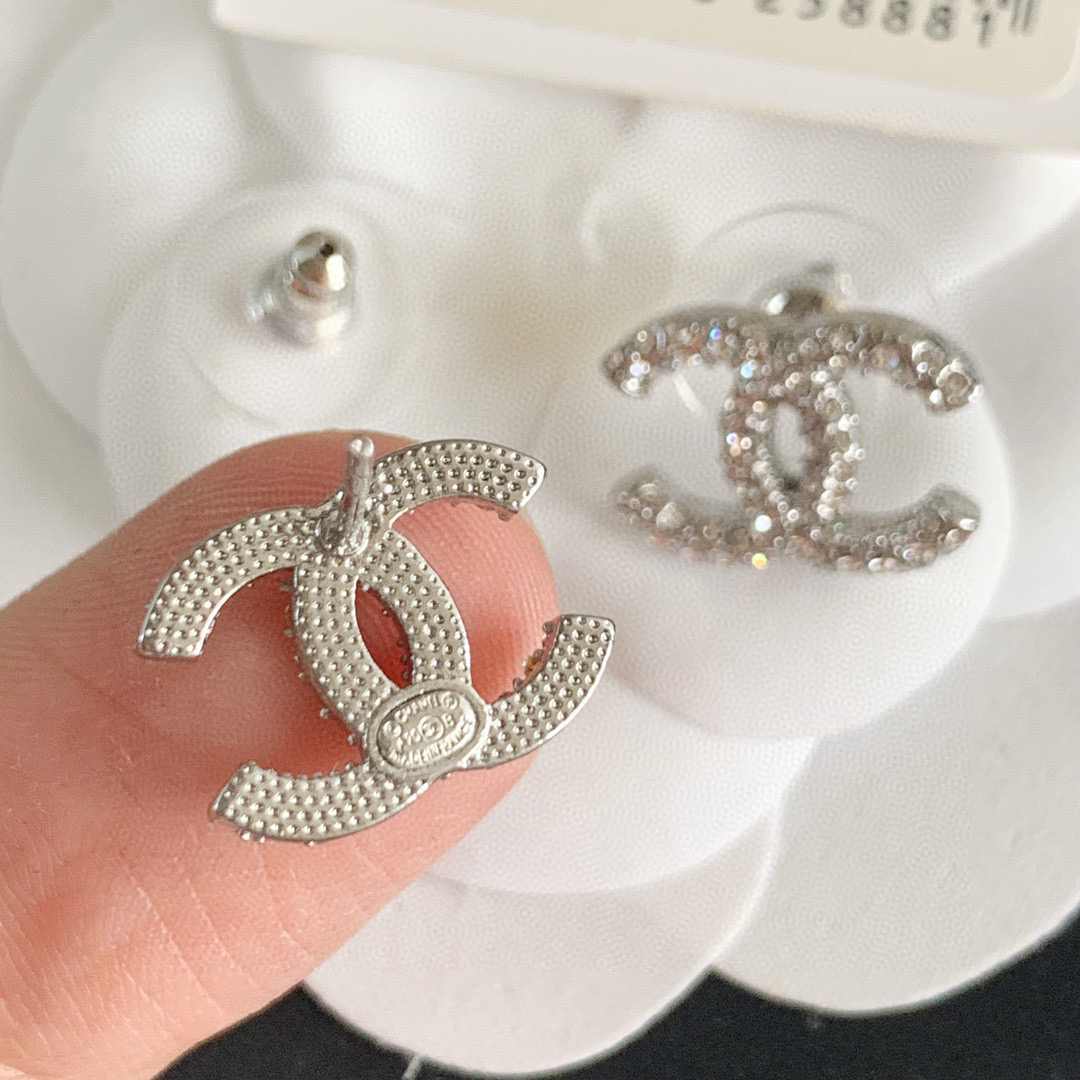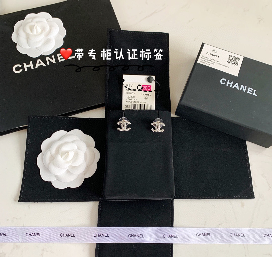 ☀新款 CHANEL香奈儿双c满钻耳钉耳环