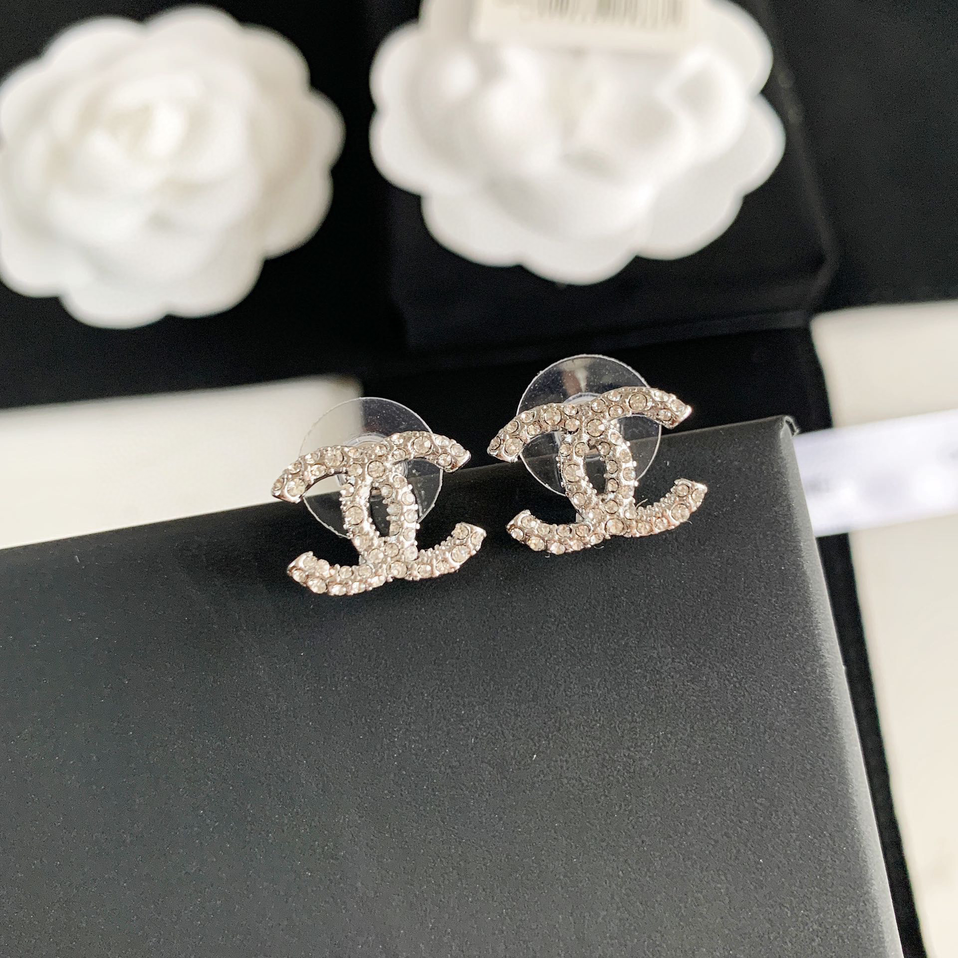 CHANEL香奈儿双c满钻耳钉耳环
