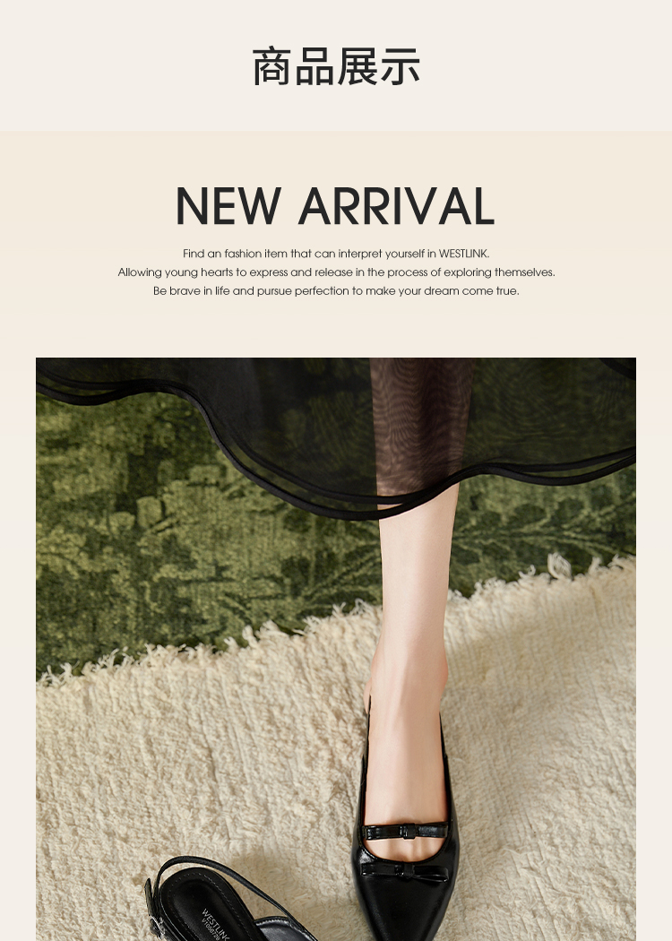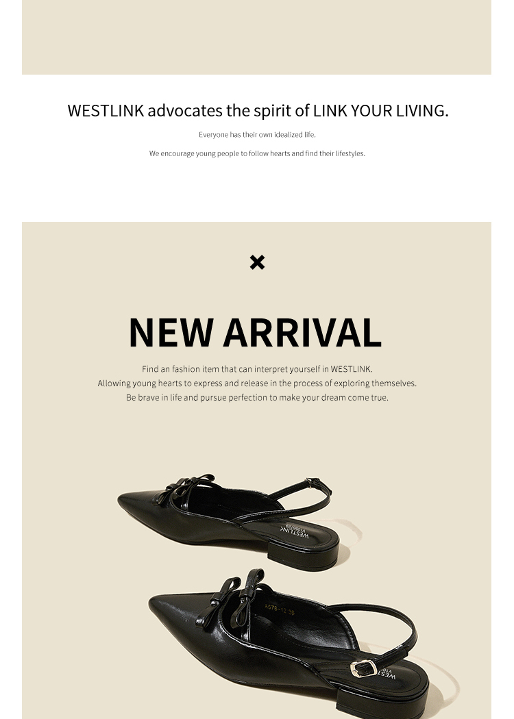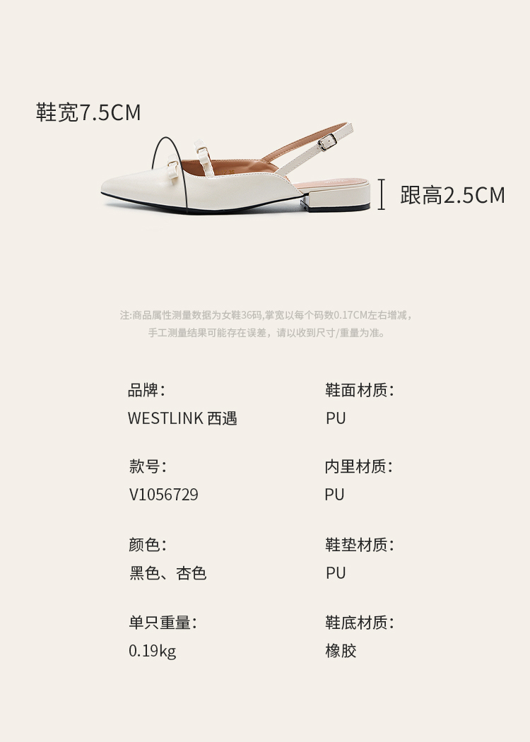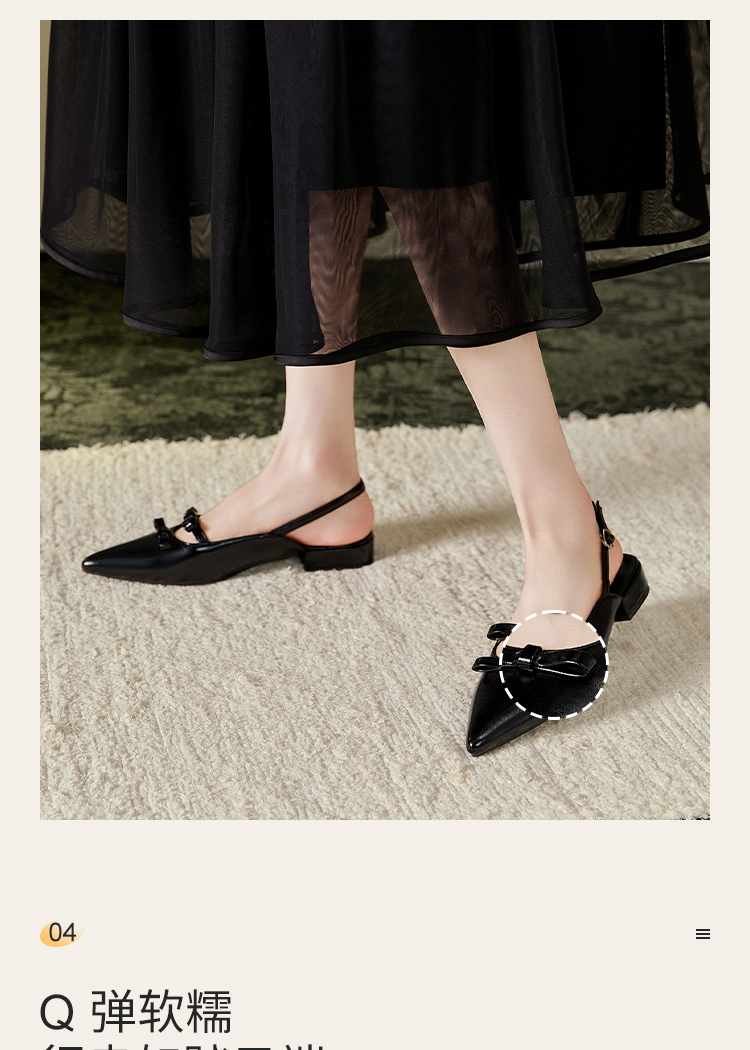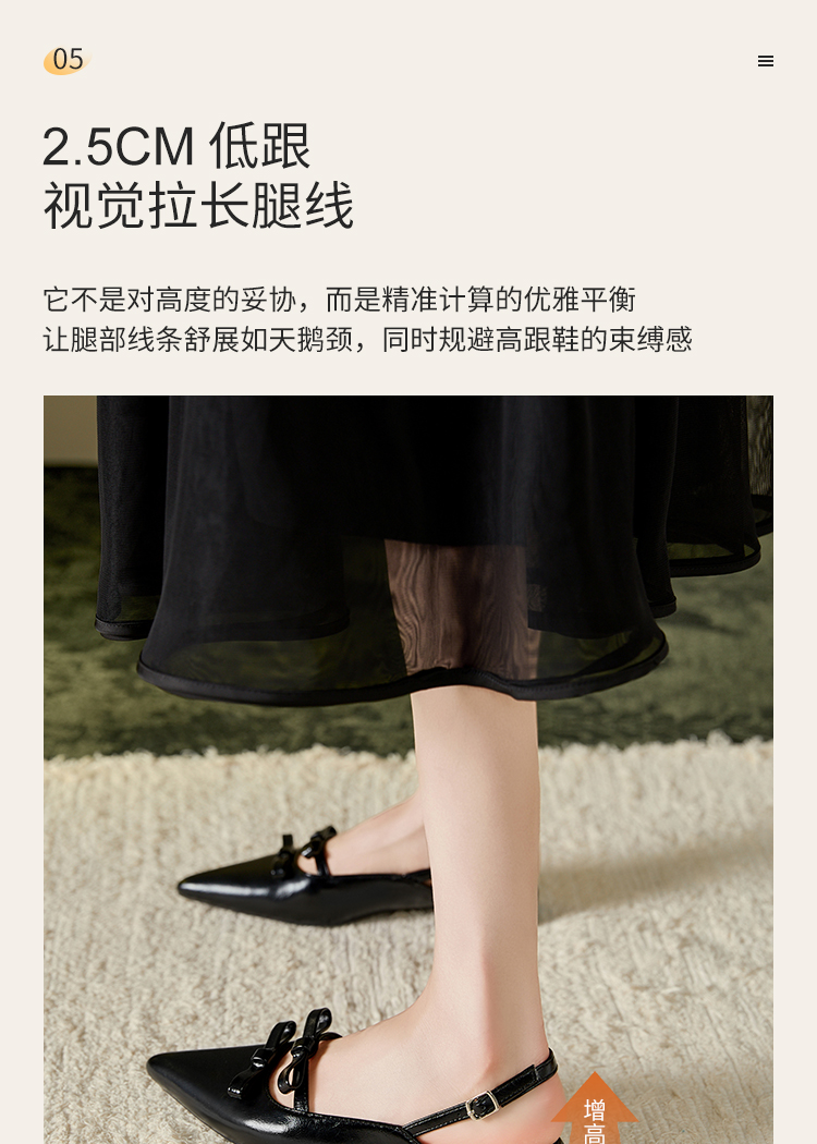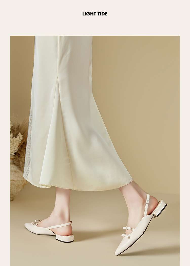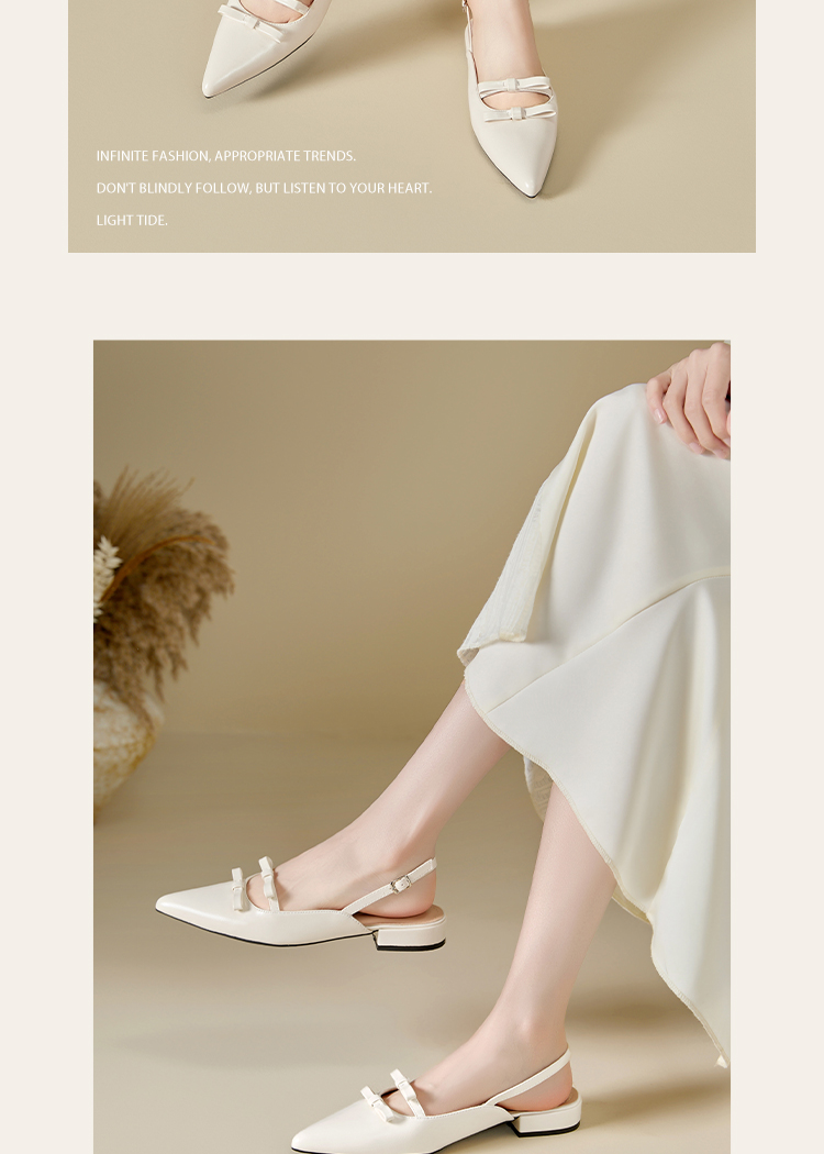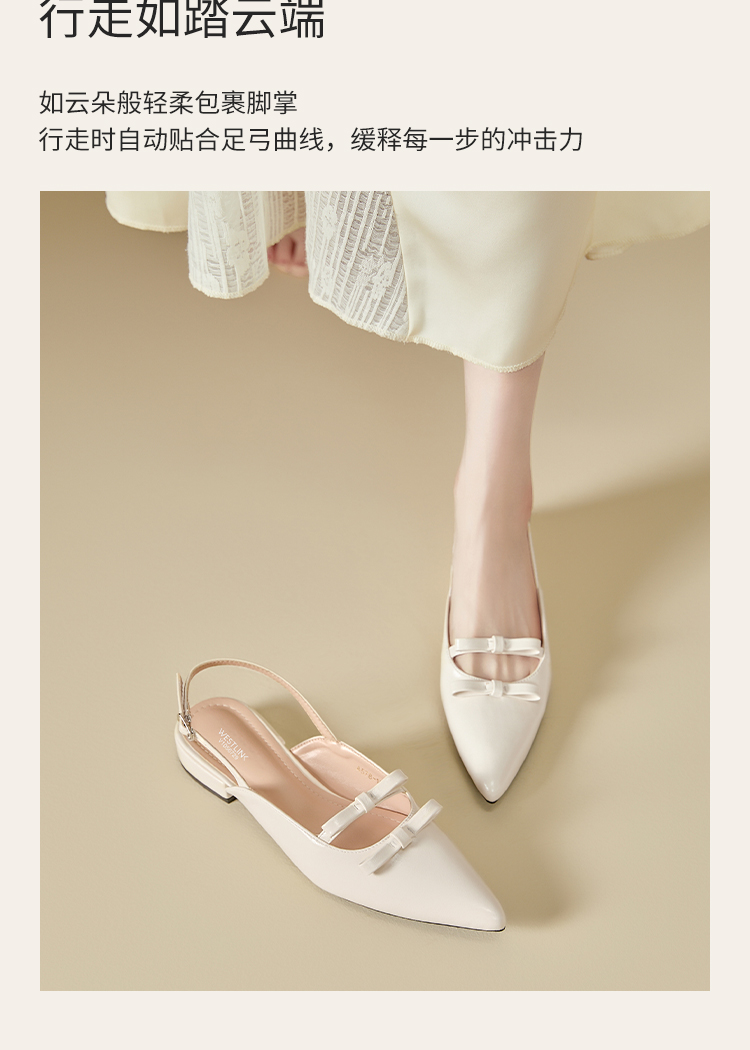 西遇尖头包头凉鞋女新款夏季法式蝴蝶结配裙子平底鞋低跟单鞋V1056729