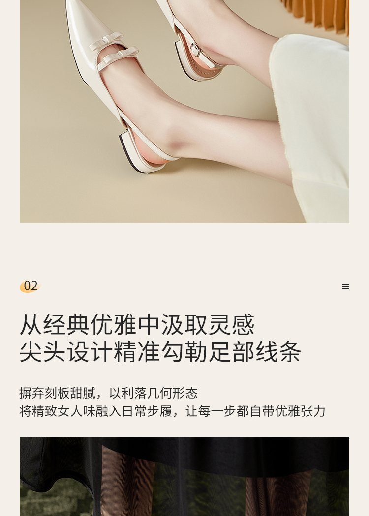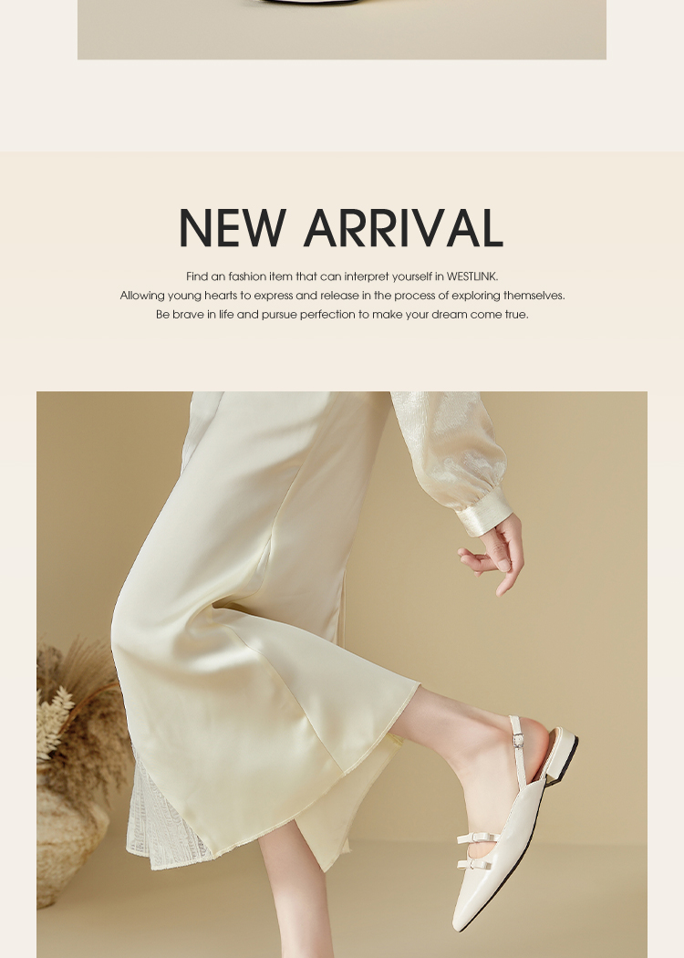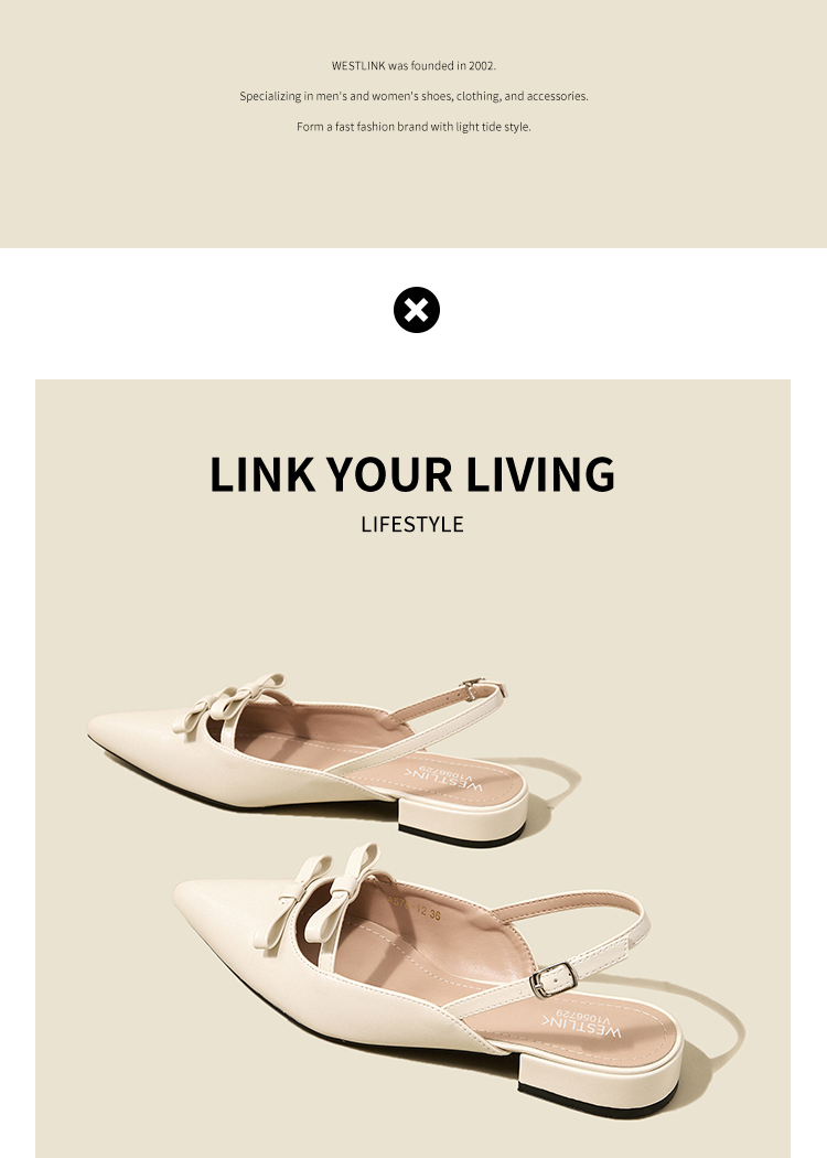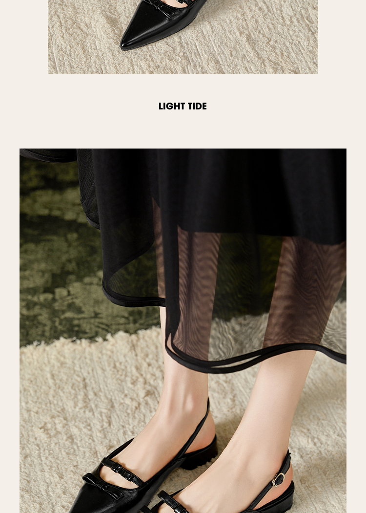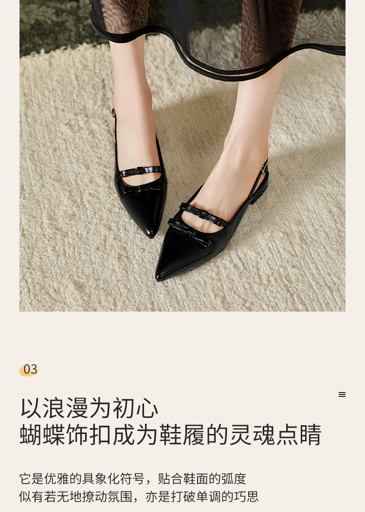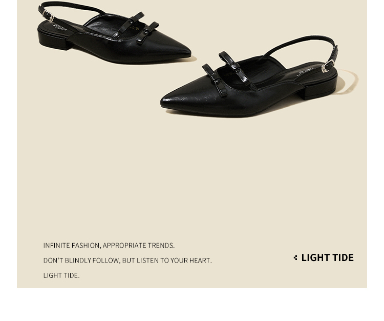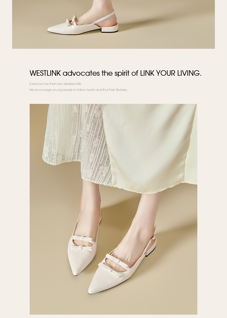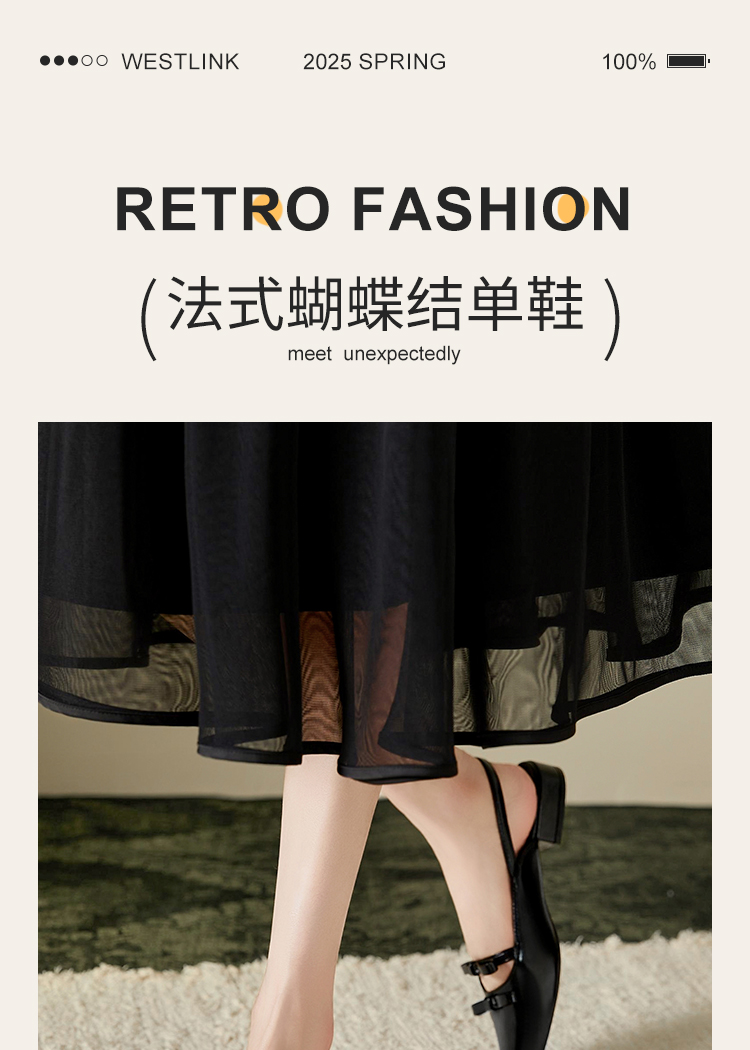西遇尖头包头凉鞋女新款夏季法式蝴蝶结配裙子平底鞋低跟单鞋V1056729