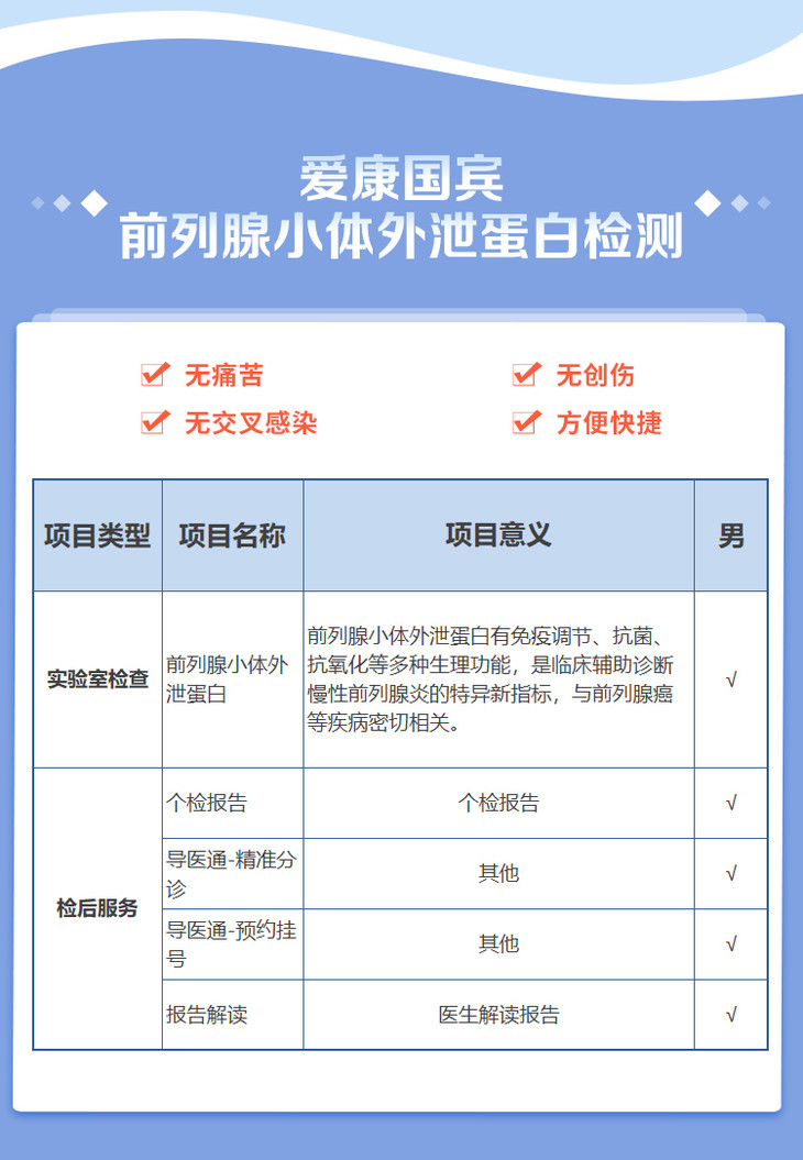 前列腺小体外泄蛋白 适用爱康国宾/VIP/卓悦/卓悦VIP