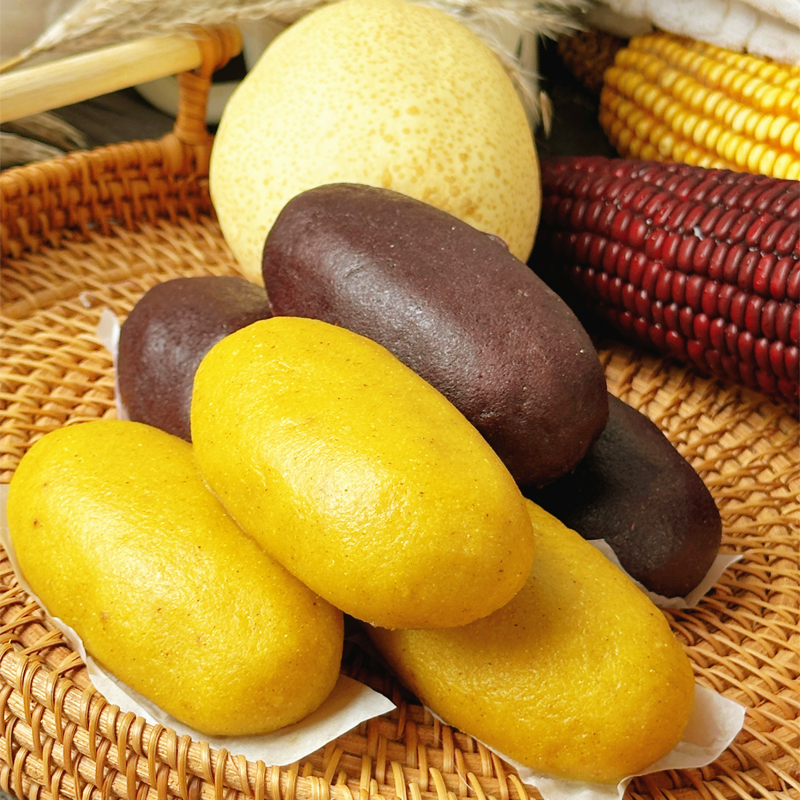 环翠庄园沿用传统加工方法,将糯玉米面、黍米面烫面,包进用梨子、柿子煮熟的红豆馅,再用柴火蒸熟。美味可口的粗粮包就做好了。真空封装,冷冻发货,保证食品新鲜可口。