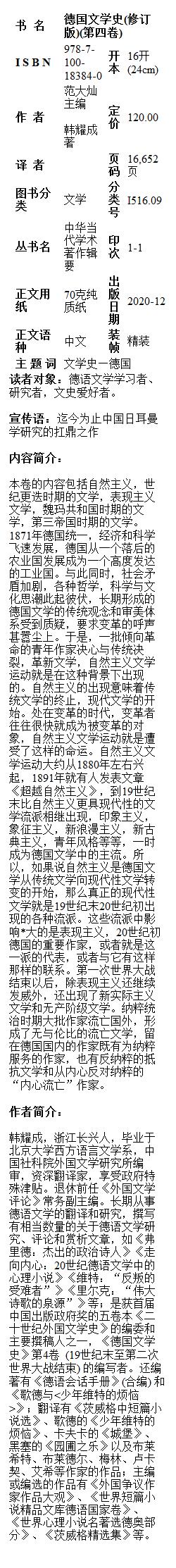 德国文学史(修订版)(第四卷) 范大灿 主编 韩耀成 著 中华当代学术著作辑要