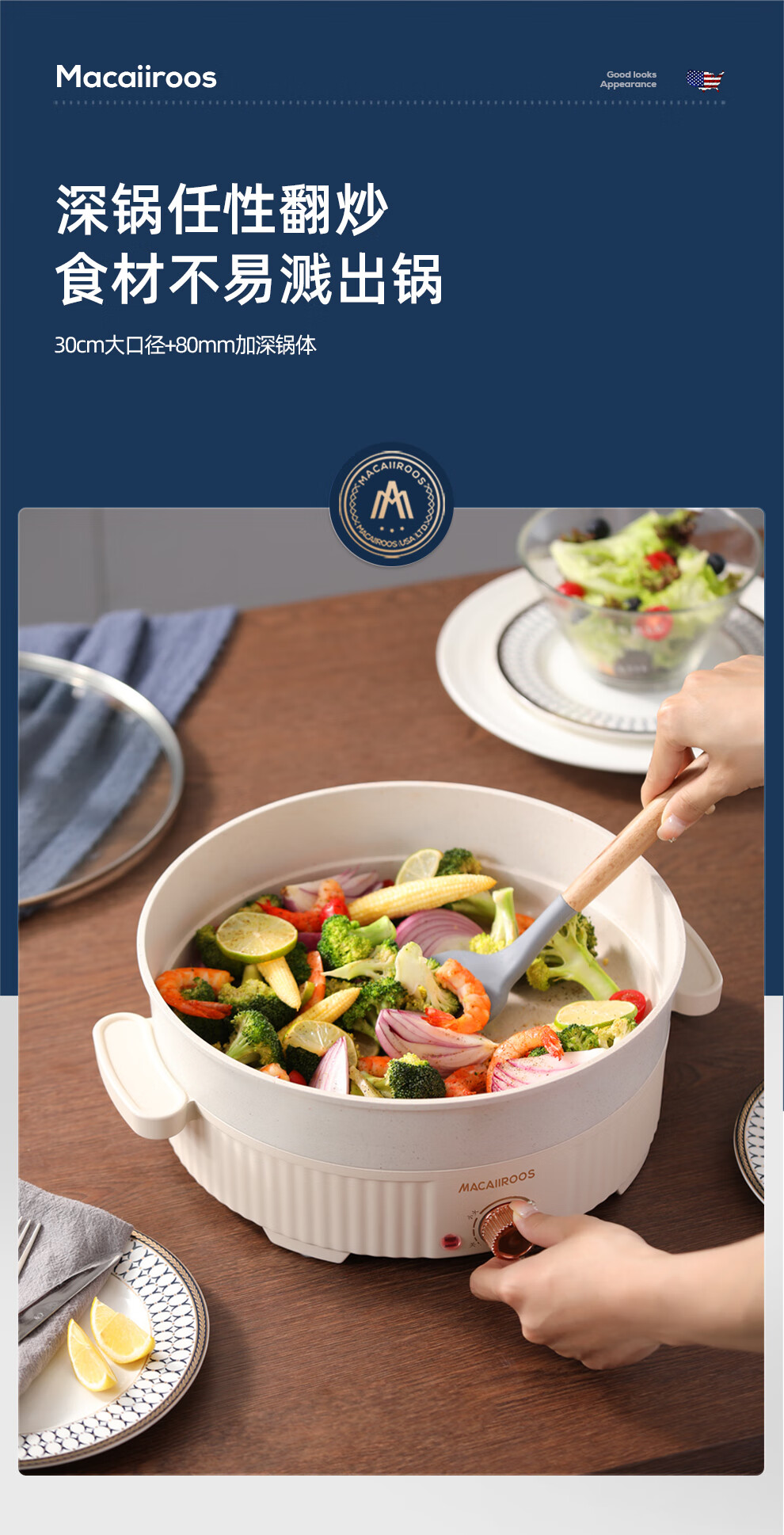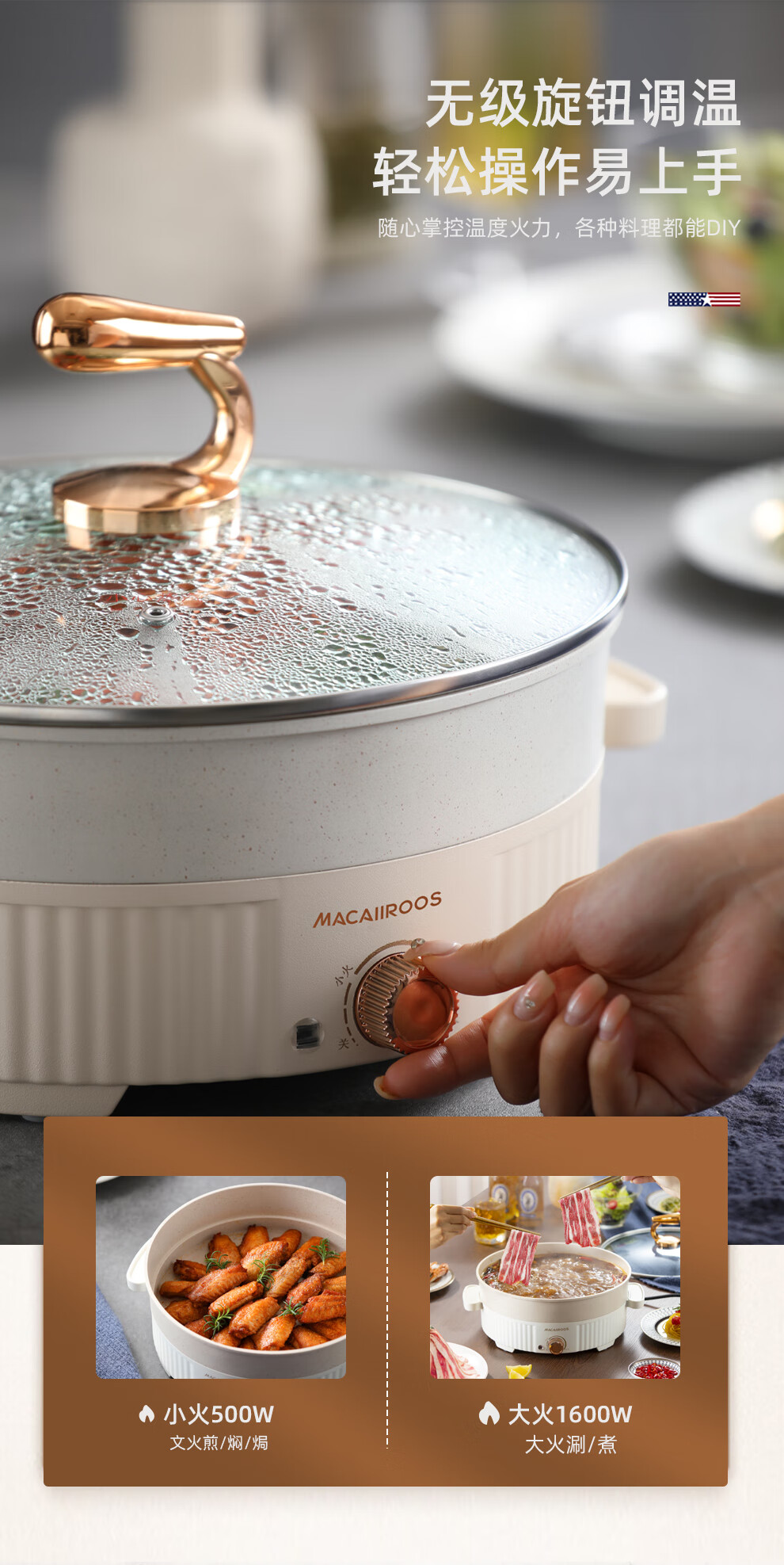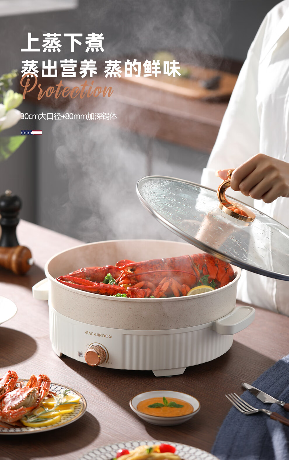 【小家电】迈卡罗MC-BD157多功能电热锅家用炒菜锅电炒锅火锅蒸煮炖一体HF