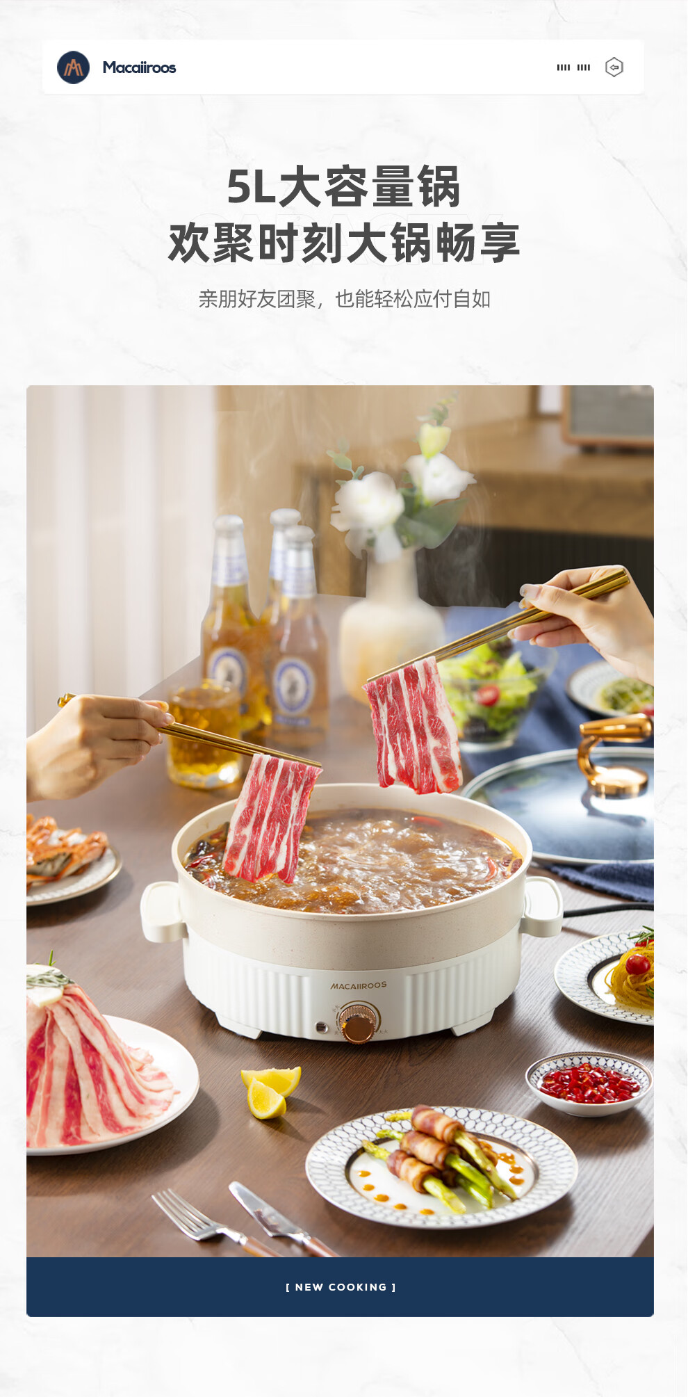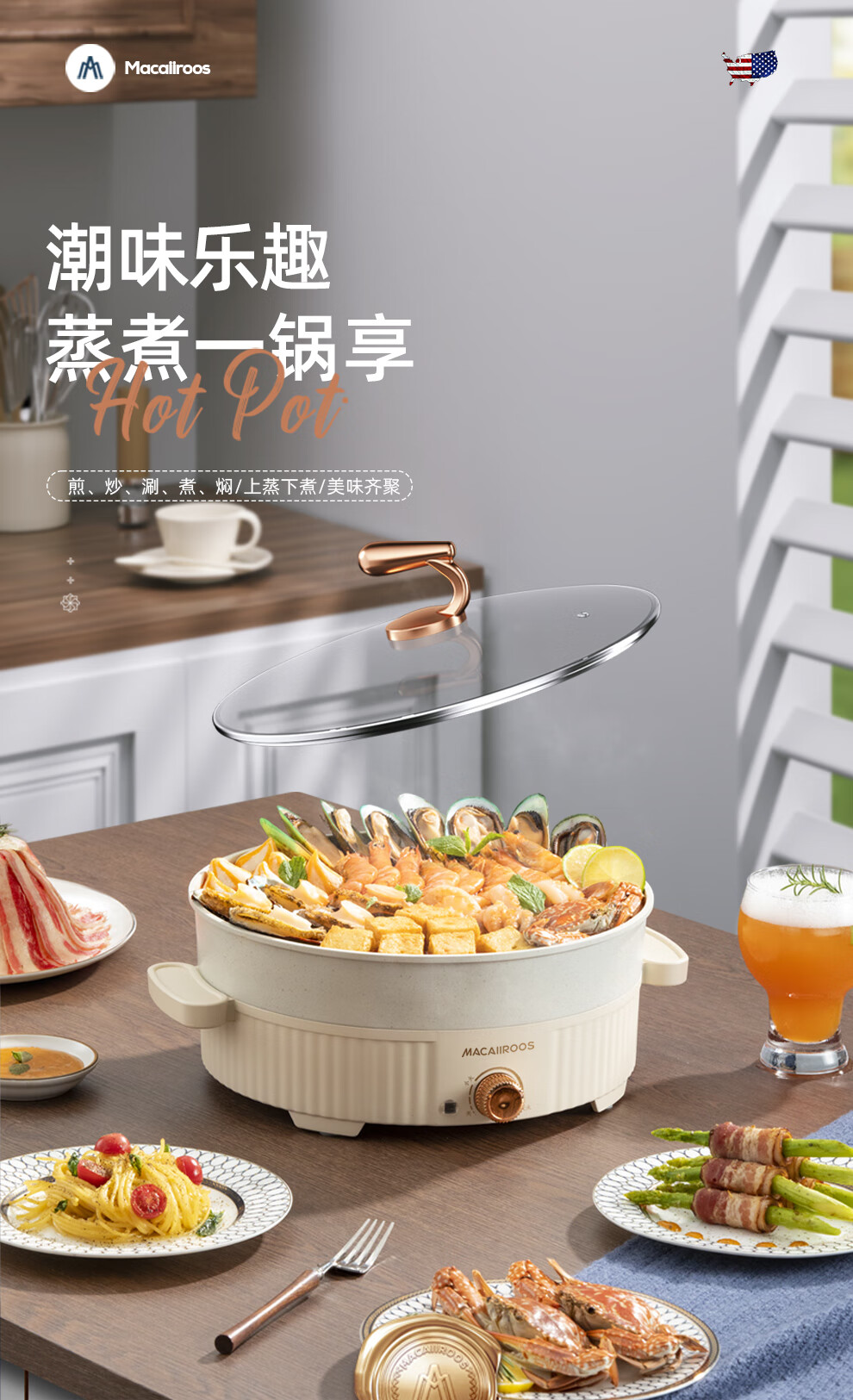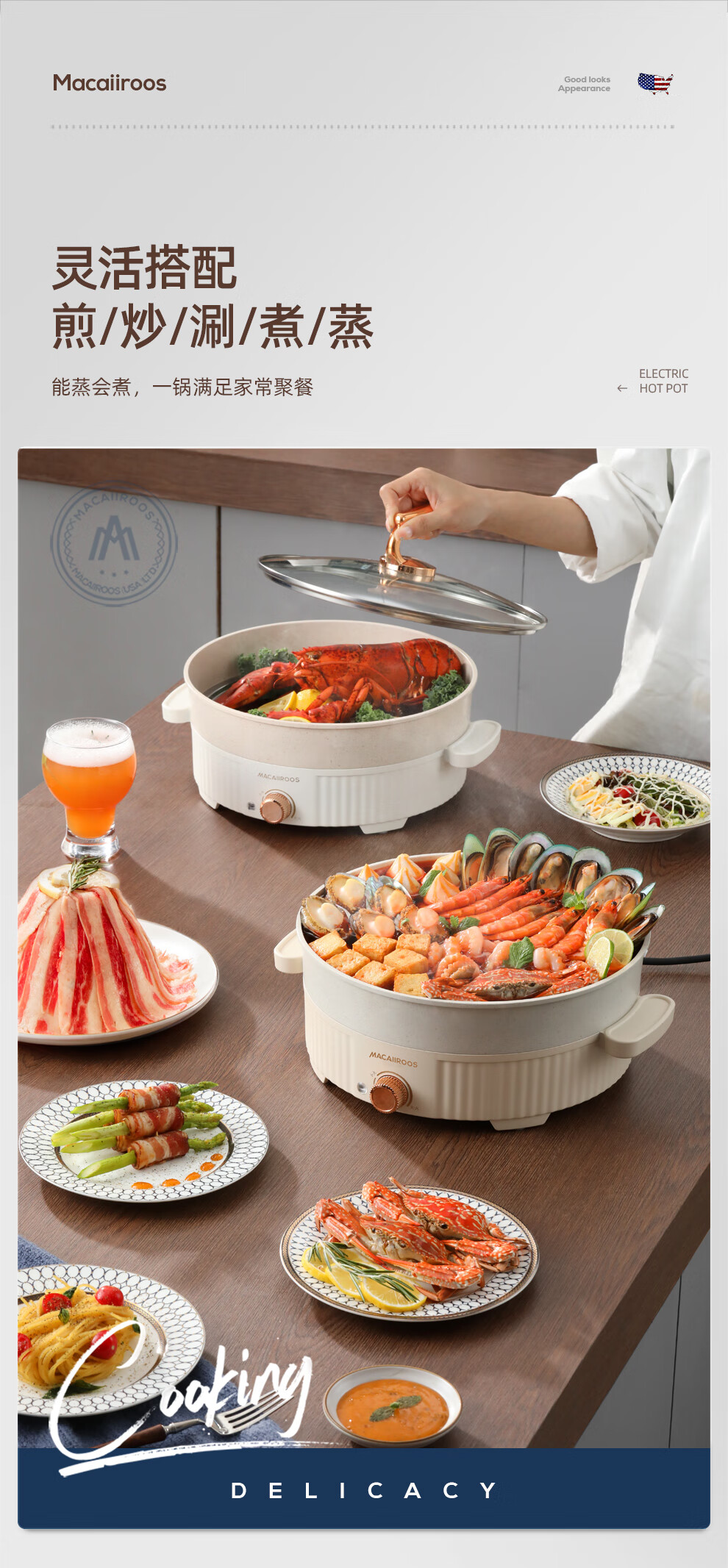 【小家电】迈卡罗MC-BD157多功能电热锅家用炒菜锅电炒锅火锅蒸煮炖一体HF