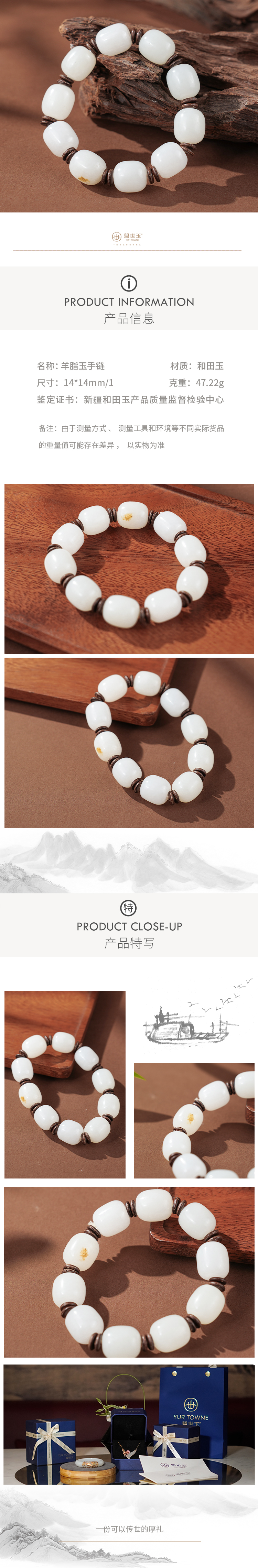 新疆国玉盟世玉羊脂玉手链【带证书·顺丰物流】