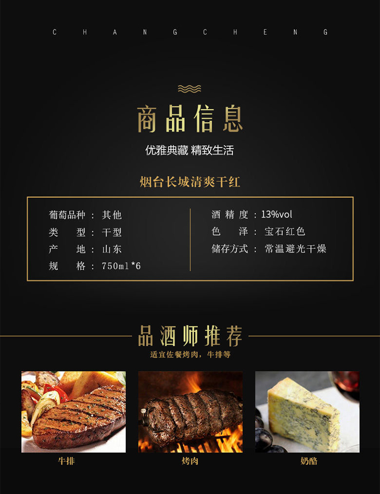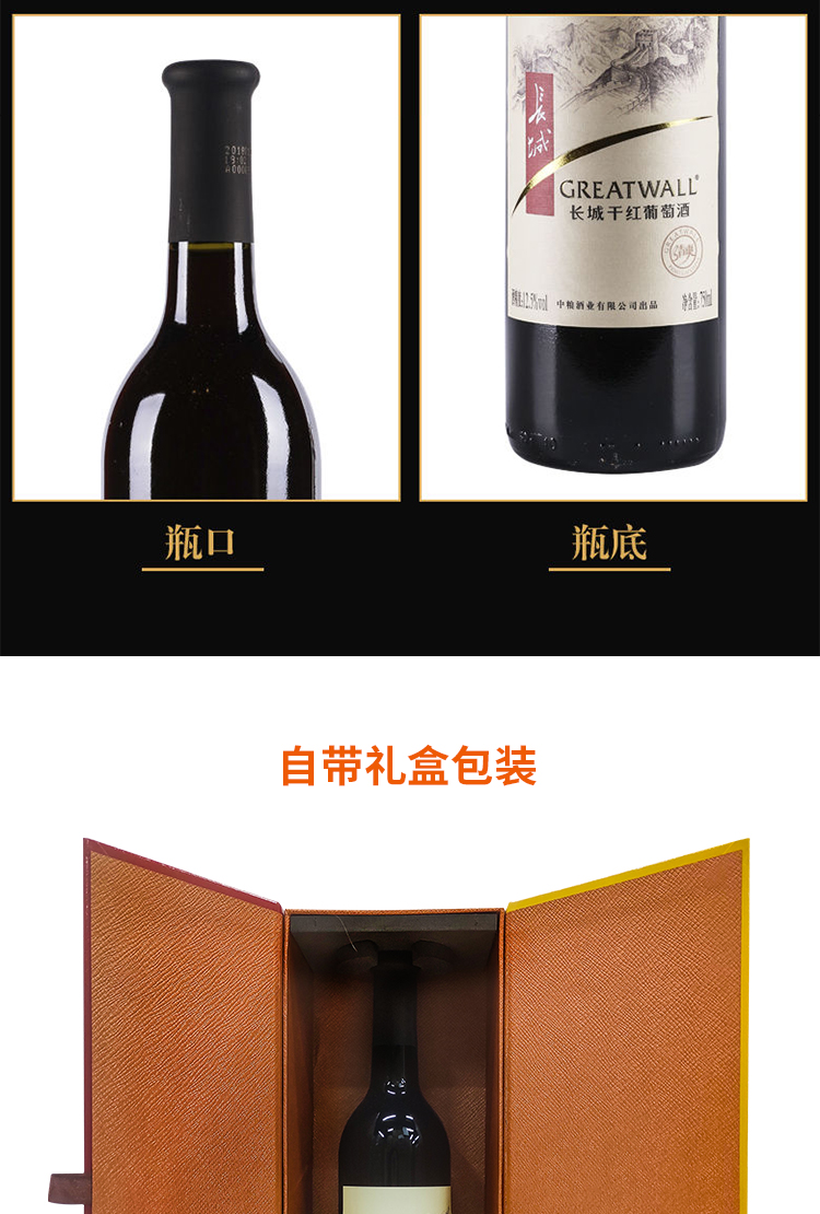 长城干红葡萄酒清爽礼盒装红酒 整箱6瓶*750ml包邮