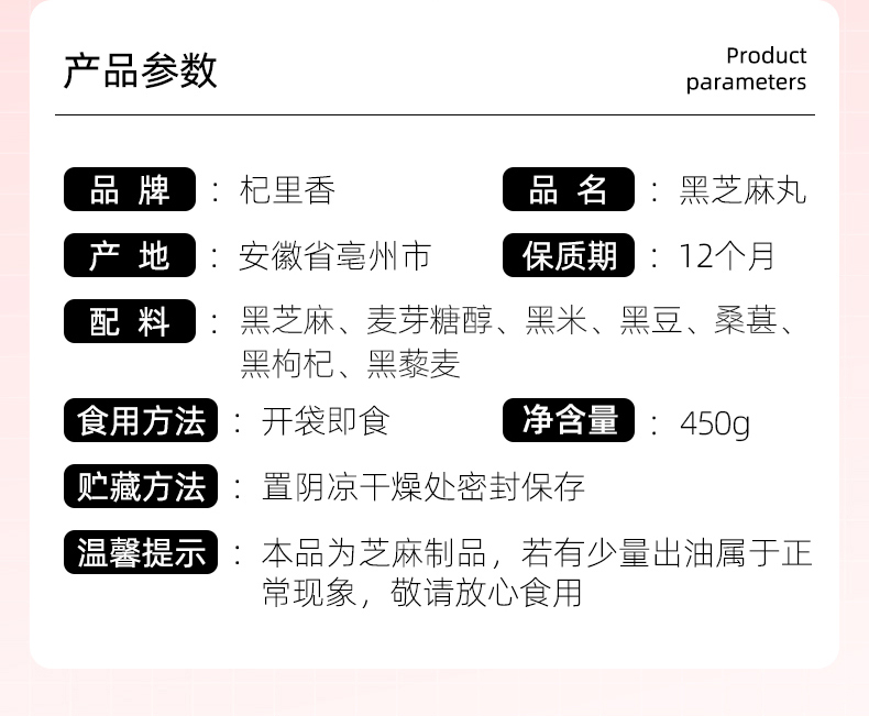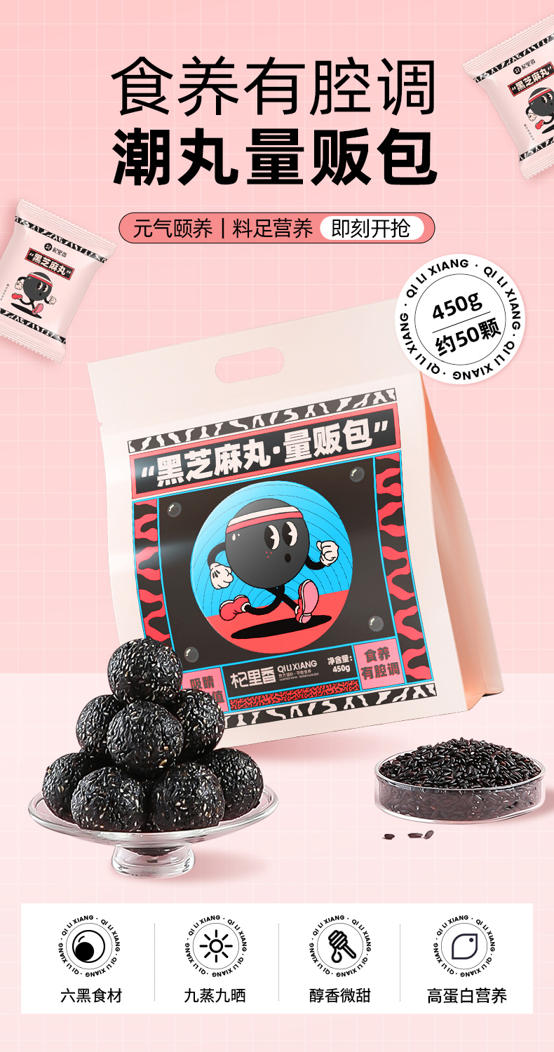【杞里香九制黑芝麻丸球】黑豆黑米黑芝麻丸子 量贩装450g更实惠 健康轻养 软糯不黏牙 美味营养 熬夜加班、追剧、睡不着 每天吃2颗