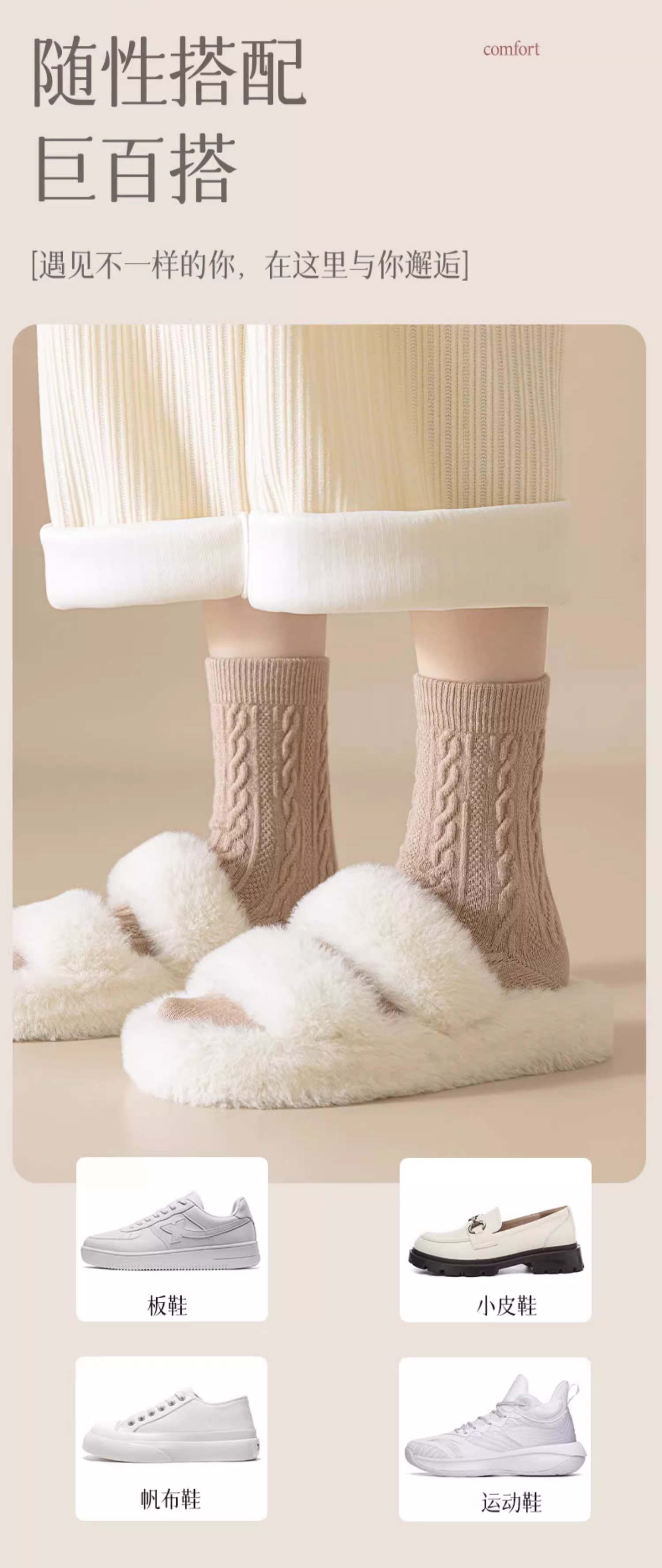 【春节不打烊】蓄热保暖羊毛袜,纯色中筒袜、加厚保暖【G】