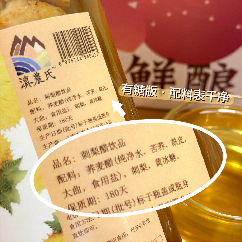 【品名】滇农氏 云南手工酿养生花果醋 【规格】252ml*9瓶礼盒装 【保质期】120天 【产地】云南 【发货地】云南 【发货快递】圆通 【不发货区域】新疆,西藏,港澳台地区不发 【发货时效】48小时,节假日顺延 |