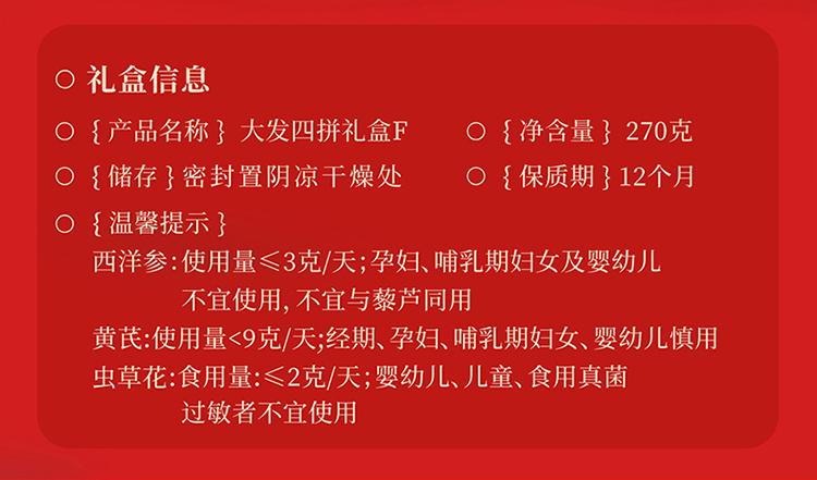 杞里香大發大发礼盒四拼西洋参石斛鹿茸羊肚菌组合;西洋参片红枸杞当归西洋参段组合;党参段当归红参鱼胶组合;五拼西洋参片石斛牛头果黑枸杞鹿茸灵芝组合;西洋参片红枸杞虫草花黄芪送礼年货礼物