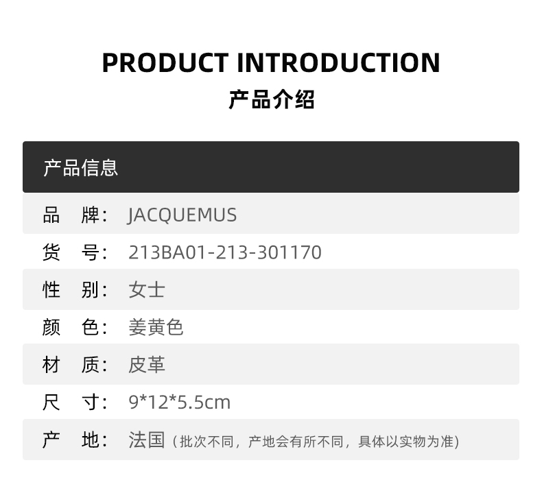 JACQUEMUS 女士姜黄色皮革手提包 213BA01-213-301170