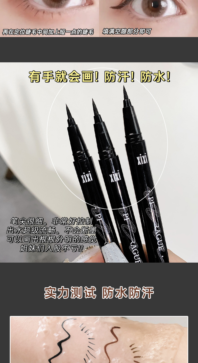 【速抢!手残党福音🎉】XIXI防晕染眼线笔✨速干不脱妆,一笔搞定初学者也能轻松画出迷人大眼👀!xixi彩妆眼线笔防汗不易晕染速干眼线液笔