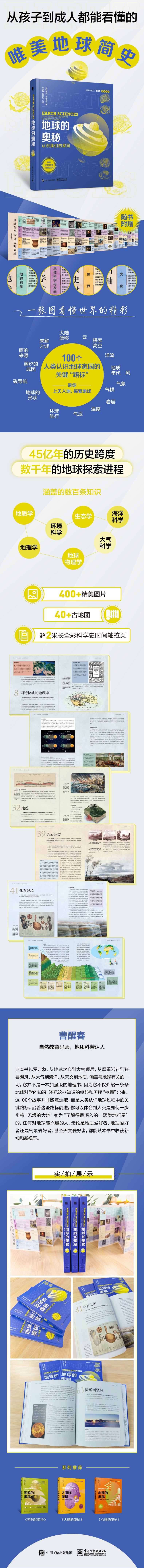 地质科普达人 自然教育导师 曹醒春 倾情荐读 从孩子到成人都能看懂的唯美地球科学史 100个人类认识地球家园的关键“路标”,带你上天入地,探索地球 附赠2.2米双面全彩地球科学发展时间轴拉页,多幅精美地球大片,28种地球矿物高清图片和资料