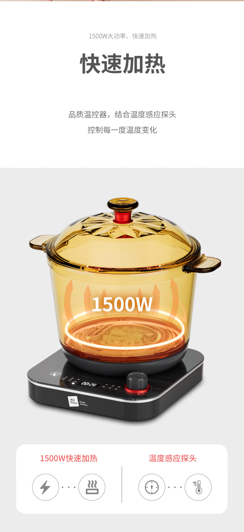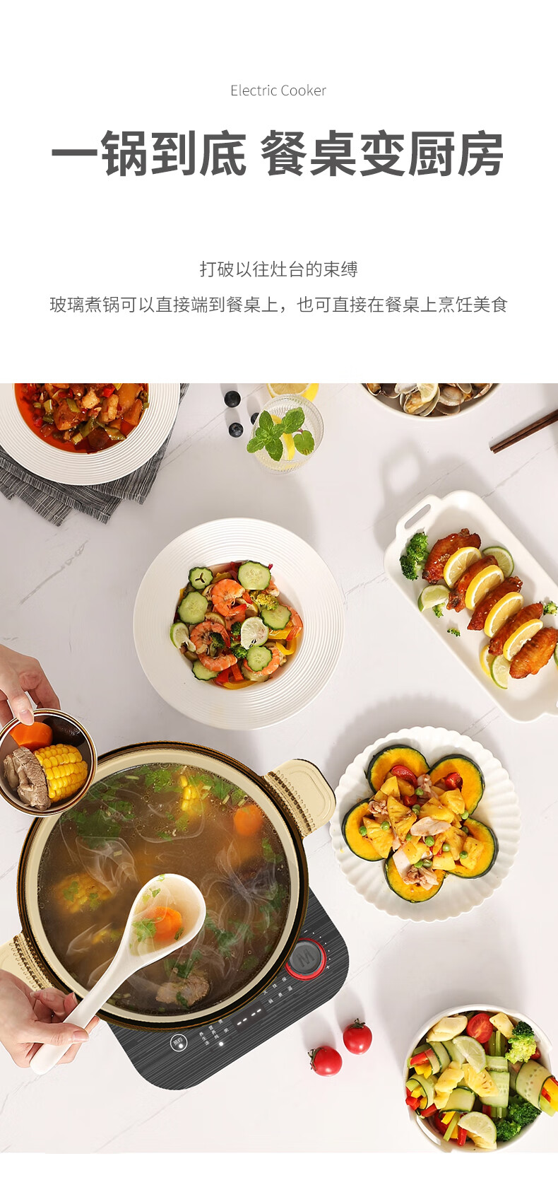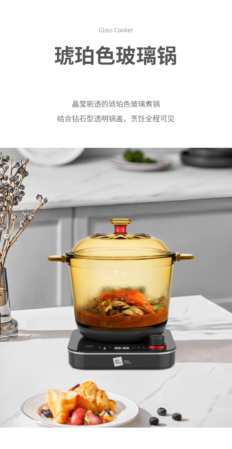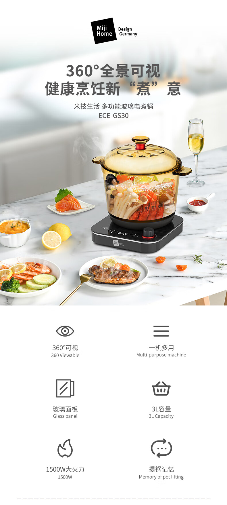 【小家电】米技生活(Miji Home)多功能锅玻璃电煮锅 琥珀色 ECE-GS30 HF