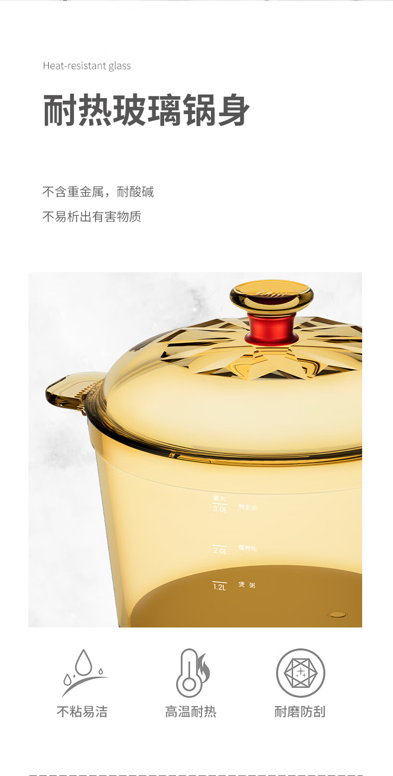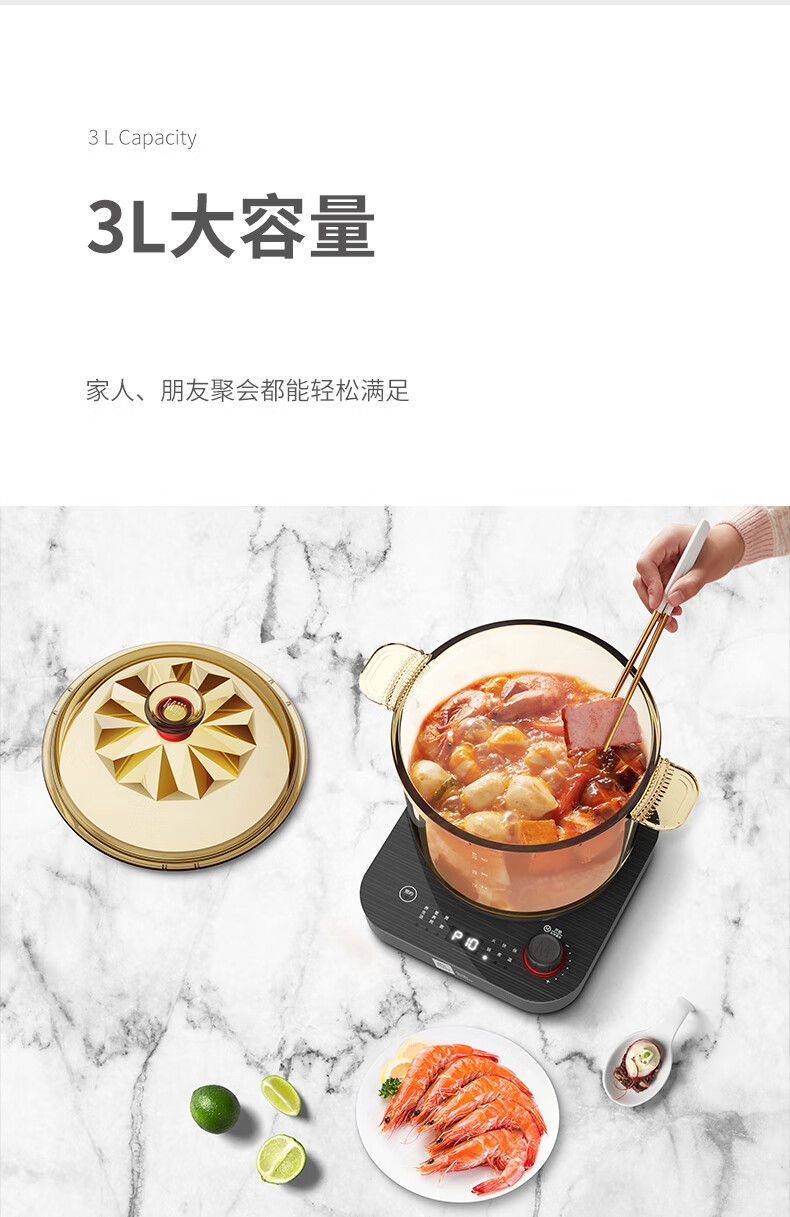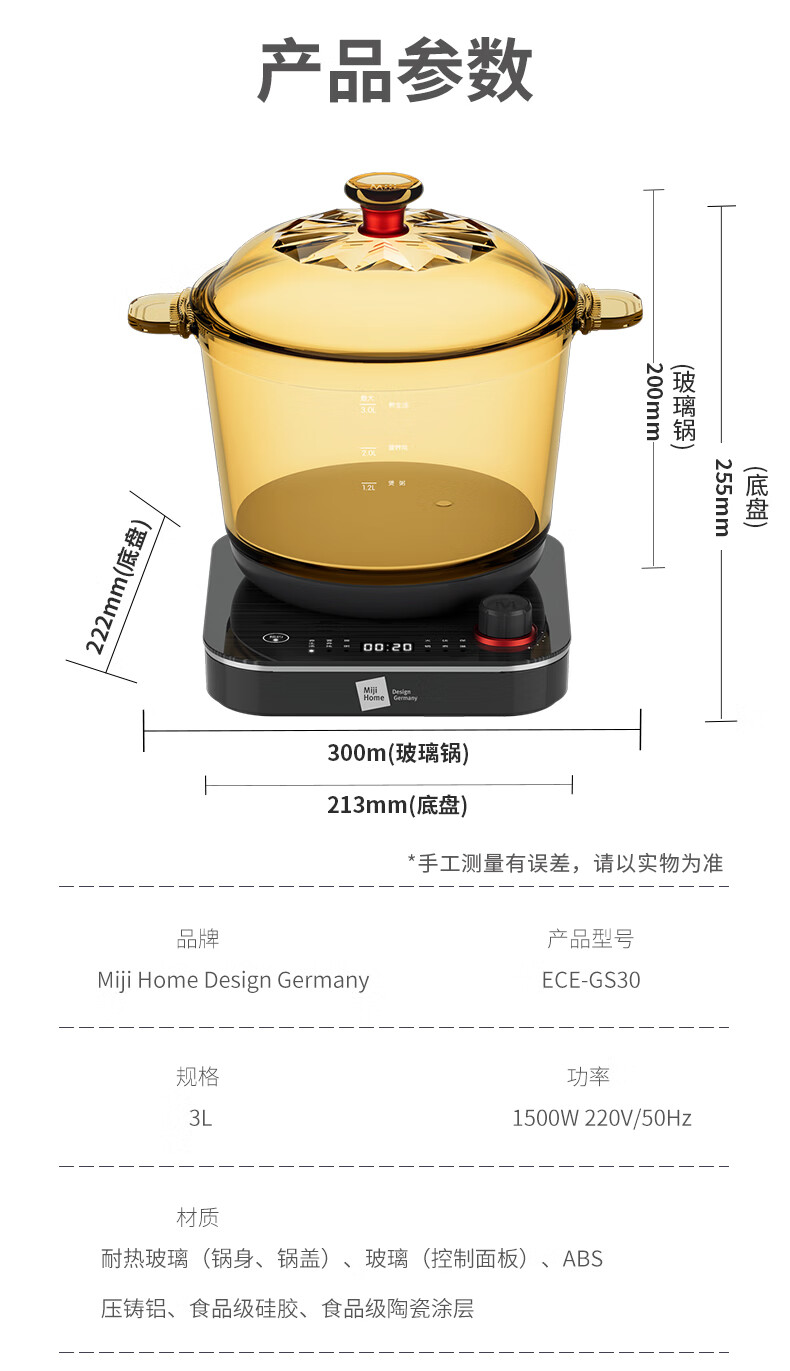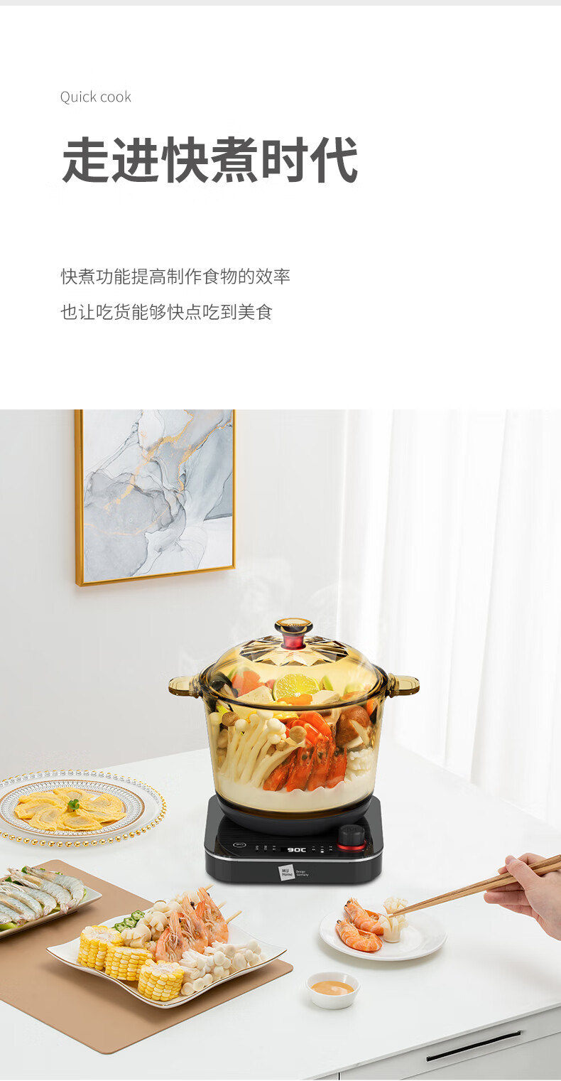 【小家电】米技生活(Miji Home)多功能锅玻璃电煮锅 琥珀色 ECE-GS30 HF