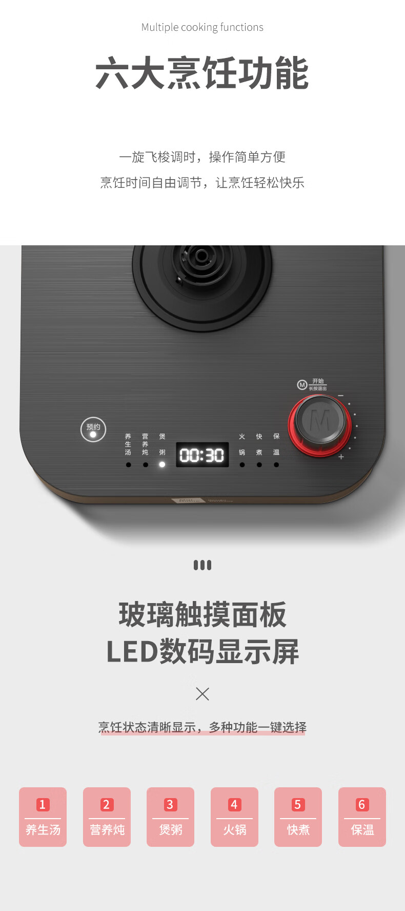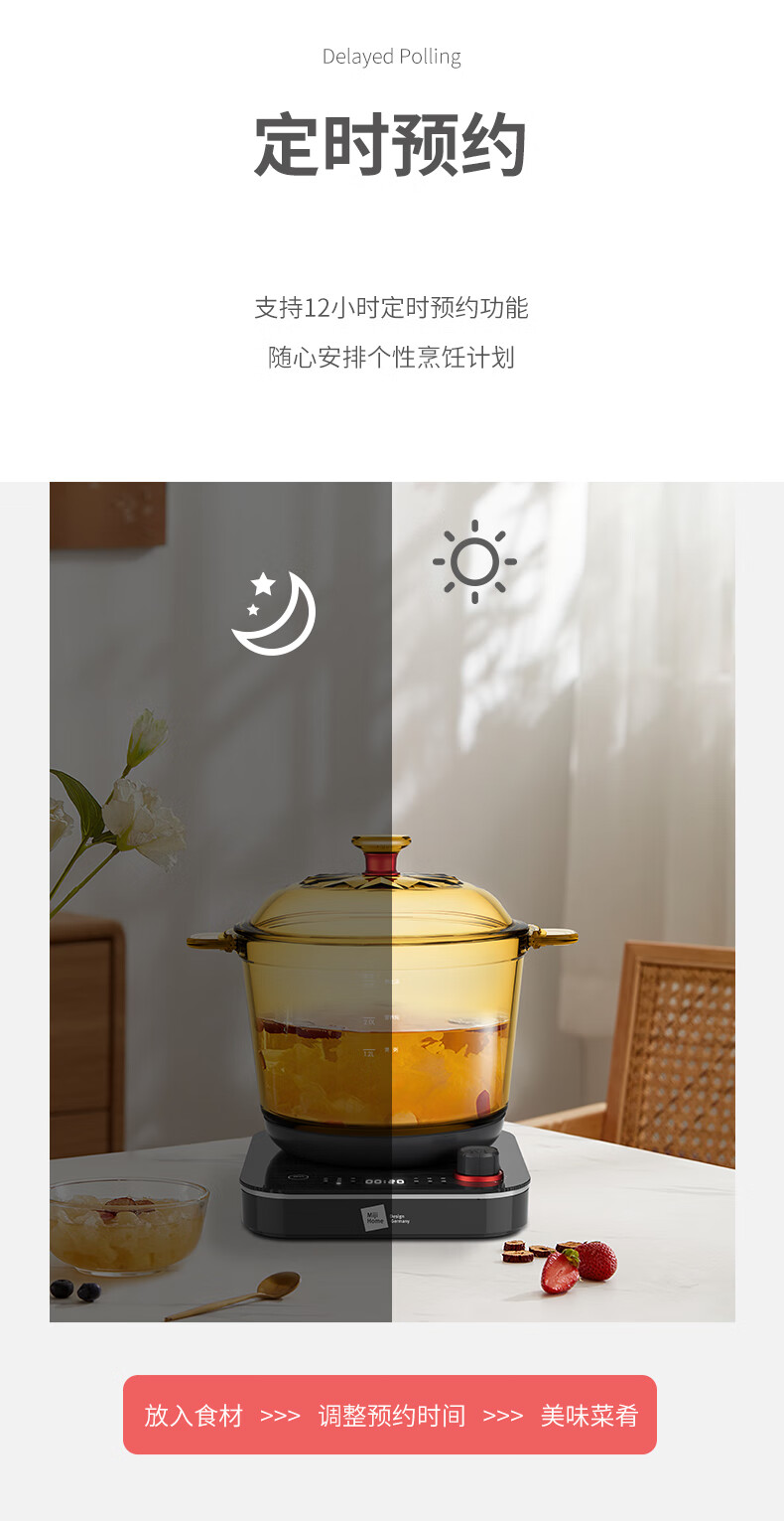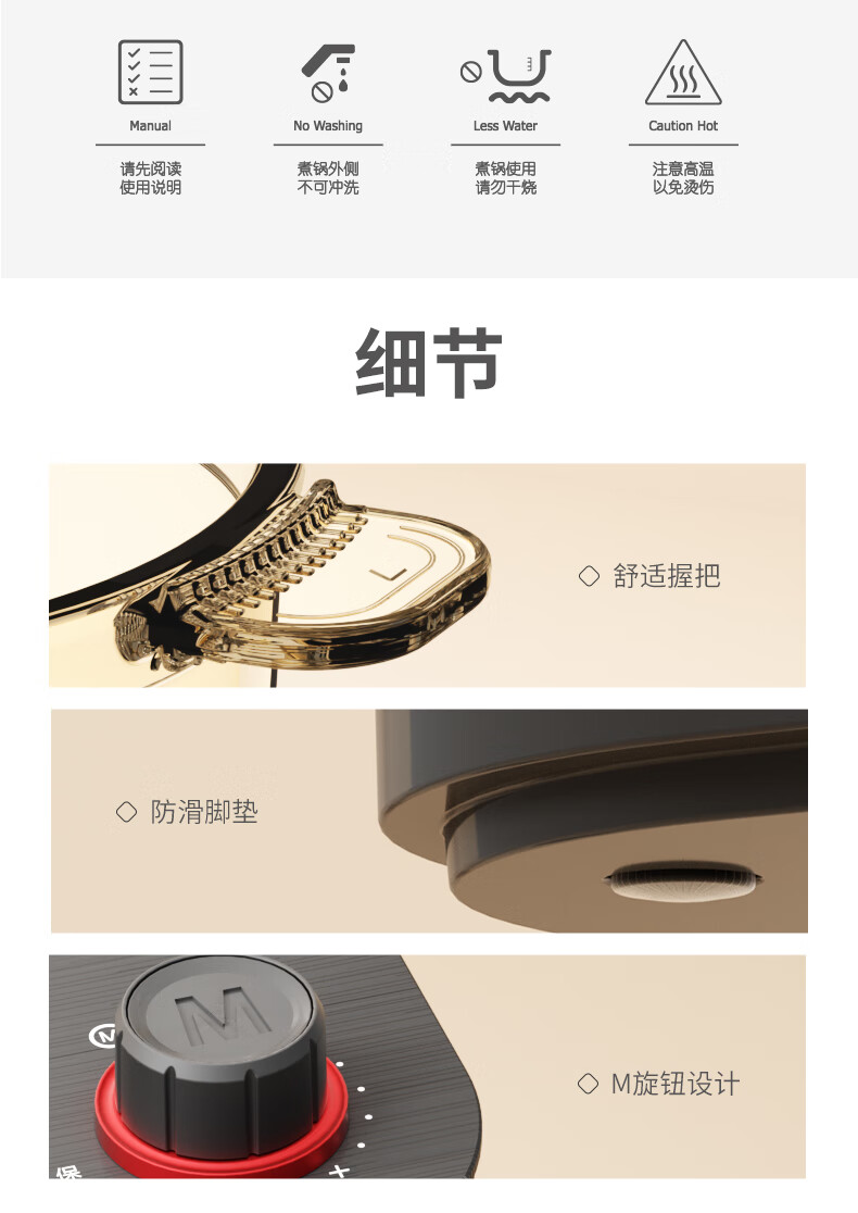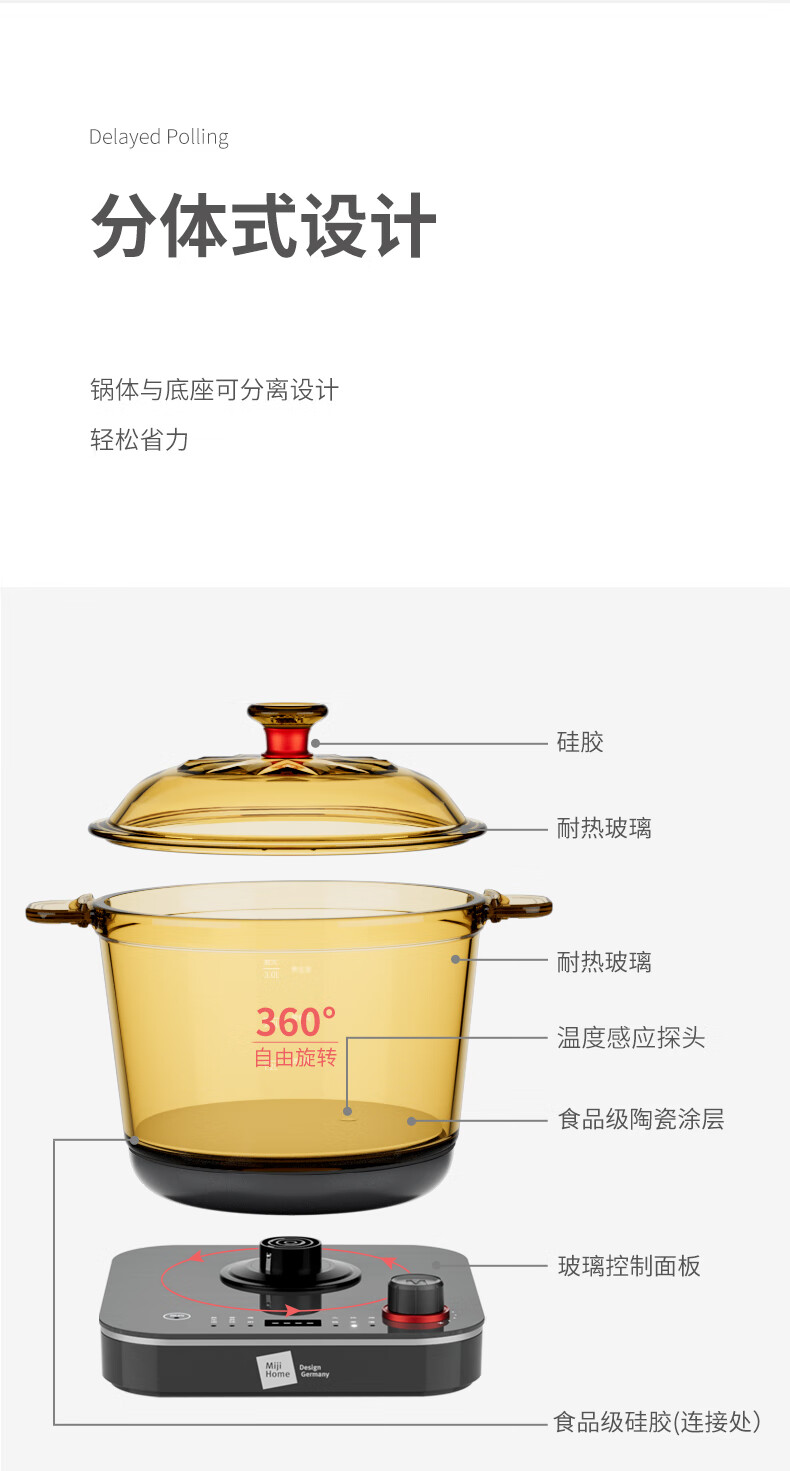 【小家电】米技生活(Miji Home)多功能锅玻璃电煮锅 琥珀色 ECE-GS30 HF