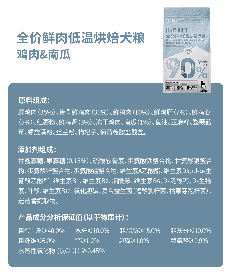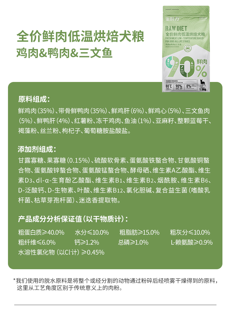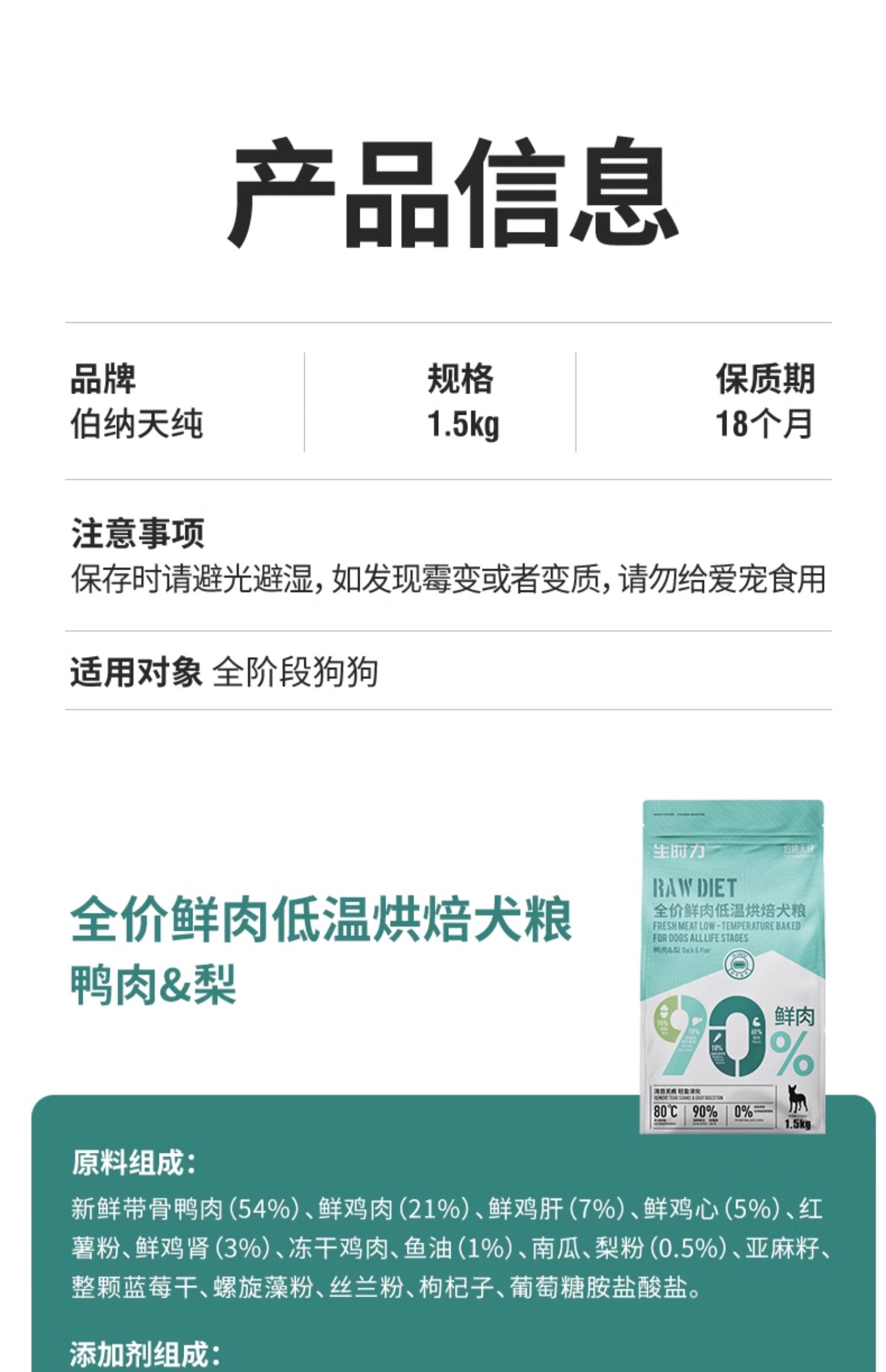伯纳天纯生时力鲜肉低温烘焙狗粮泰迪比熊法斗博美全价通用型粮1.5kg