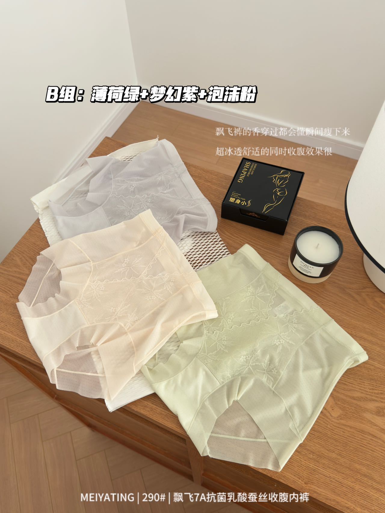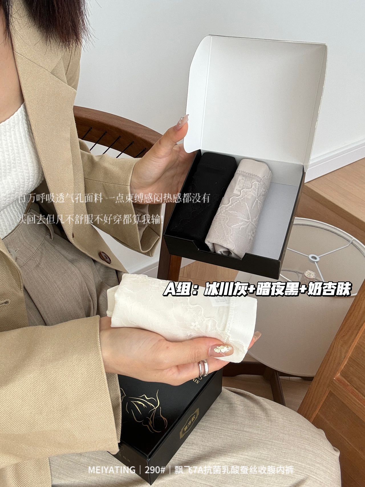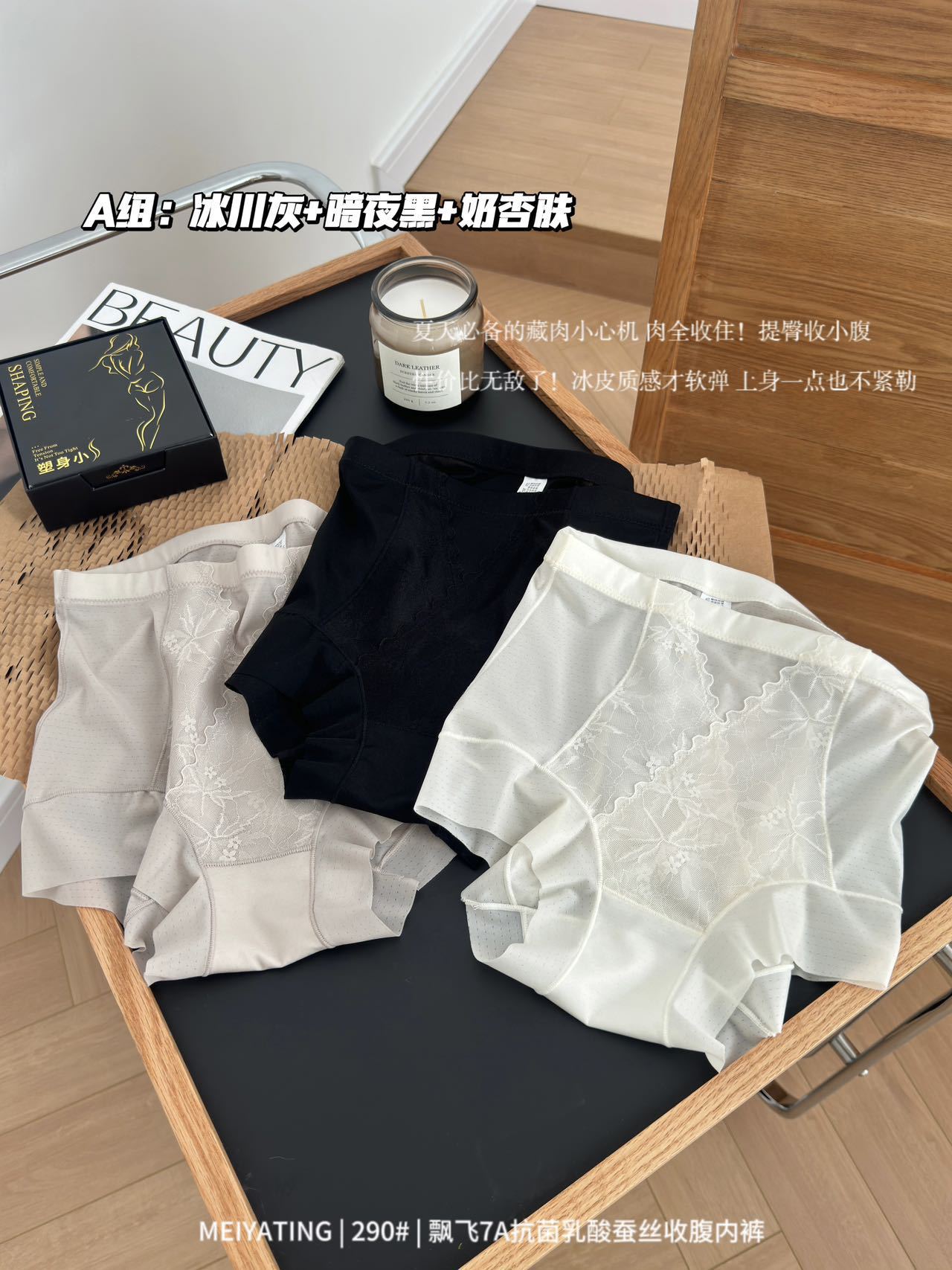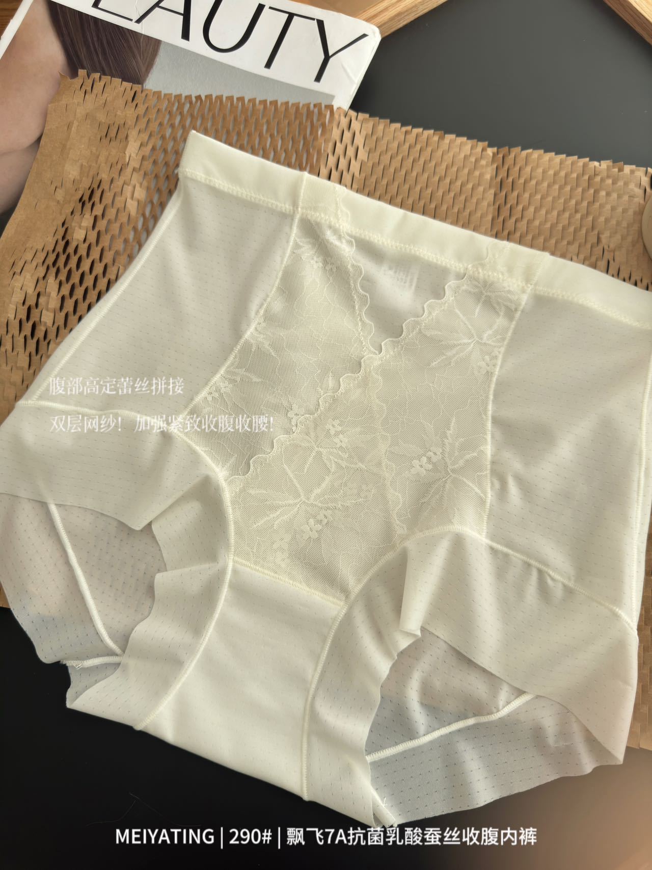 79抢原价399元飘飞7A抑菌乳酸蚕丝收腹内裤女蕾丝提花提臀内裤裸感0束缚女士三角裤盒装