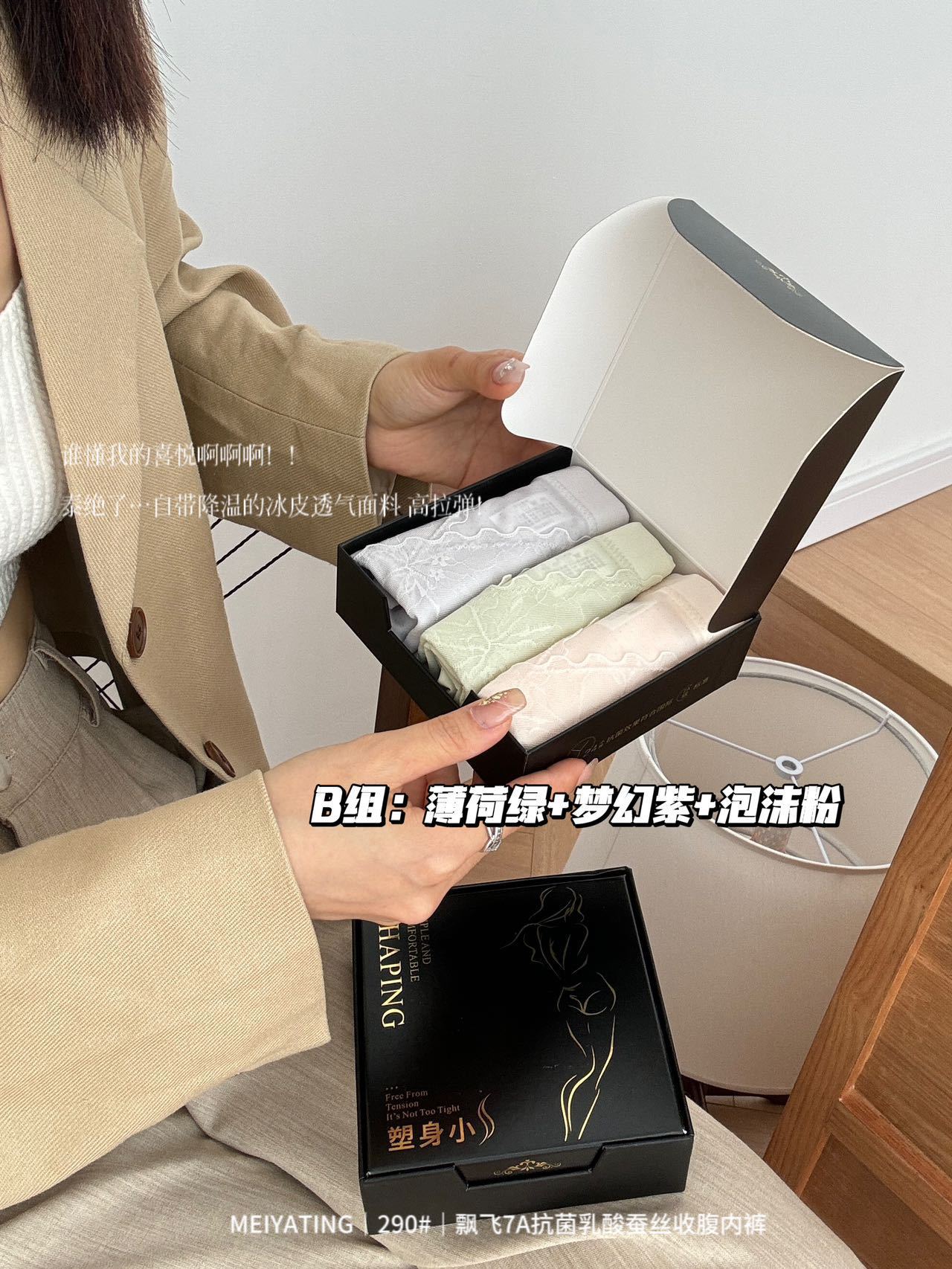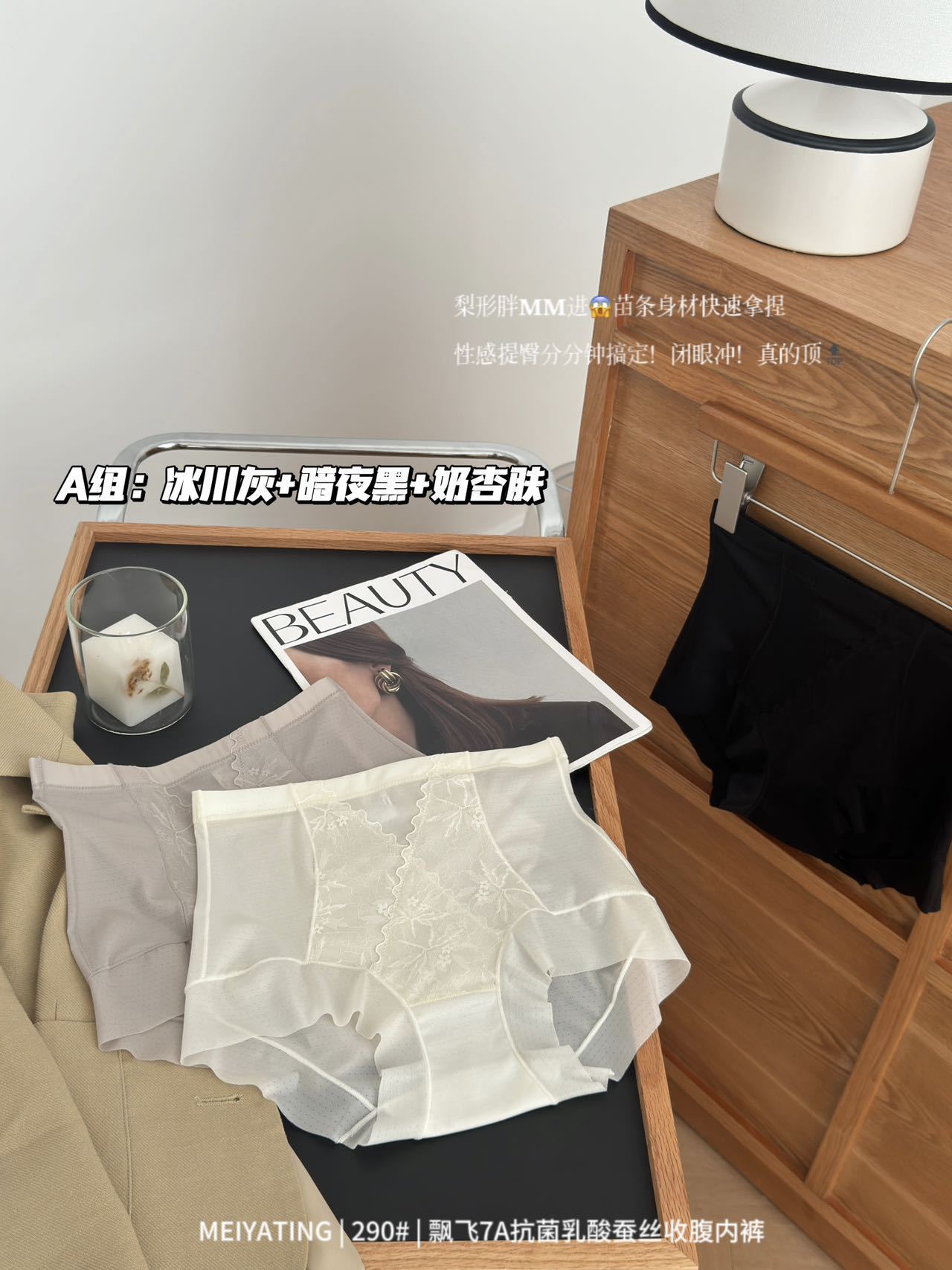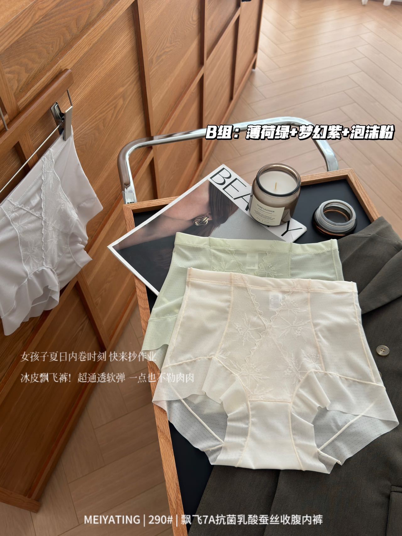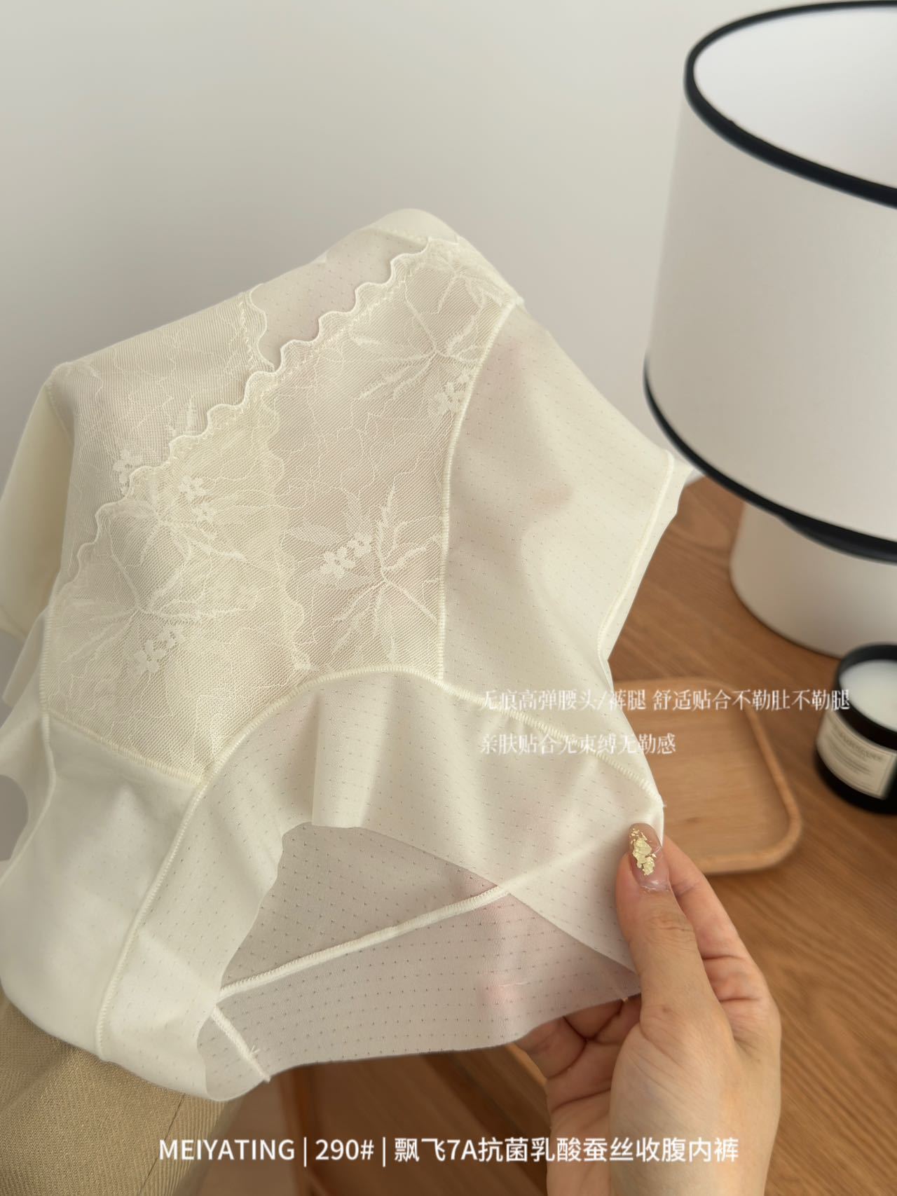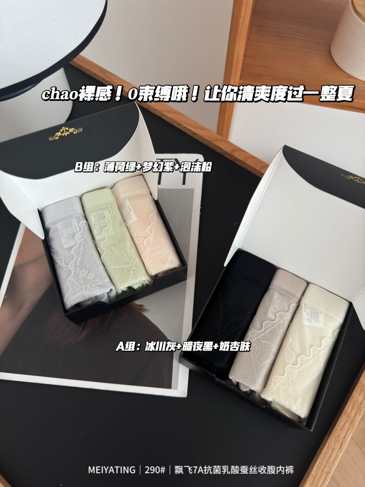 79抢原价399元飘飞7A抑菌乳酸蚕丝收腹内裤女蕾丝提花提臀内裤裸感0束缚女士三角裤盒装
