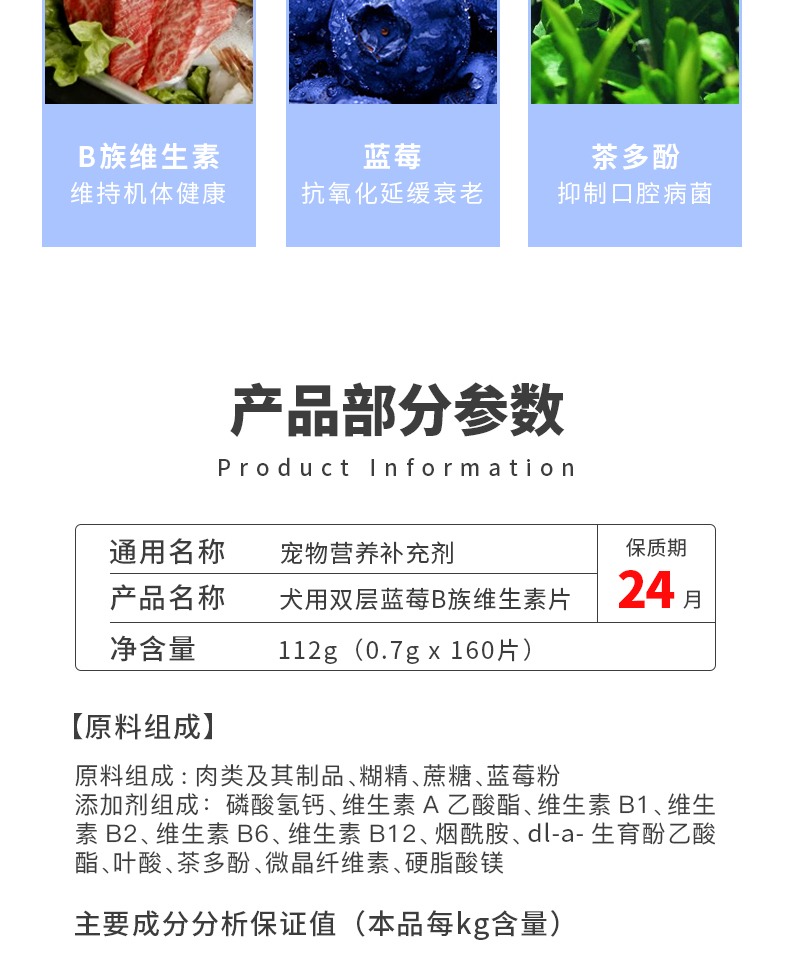 盖夫双层蓝莓B族维生素片犬用抗氧化衰老维持机体健康增强免疫力