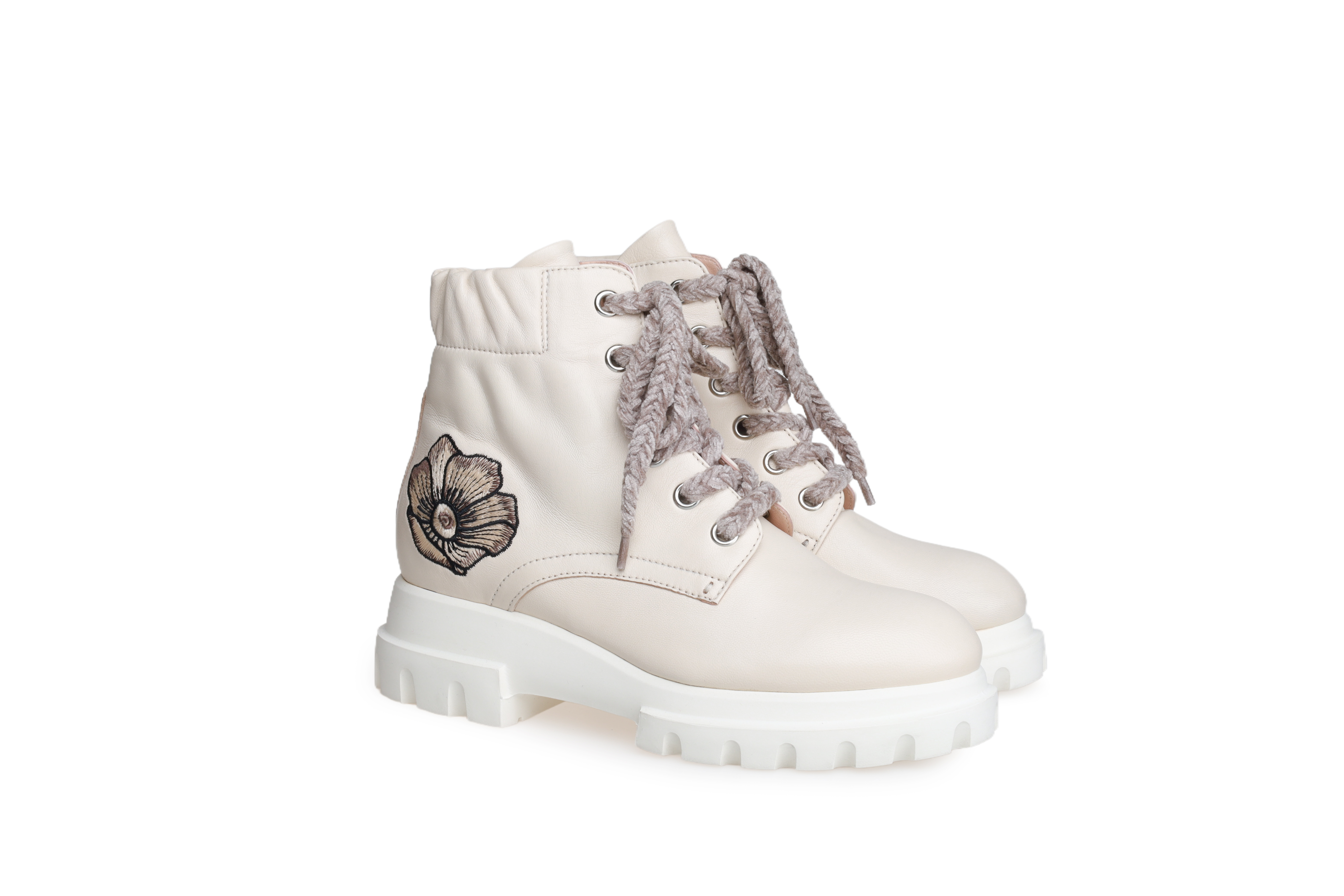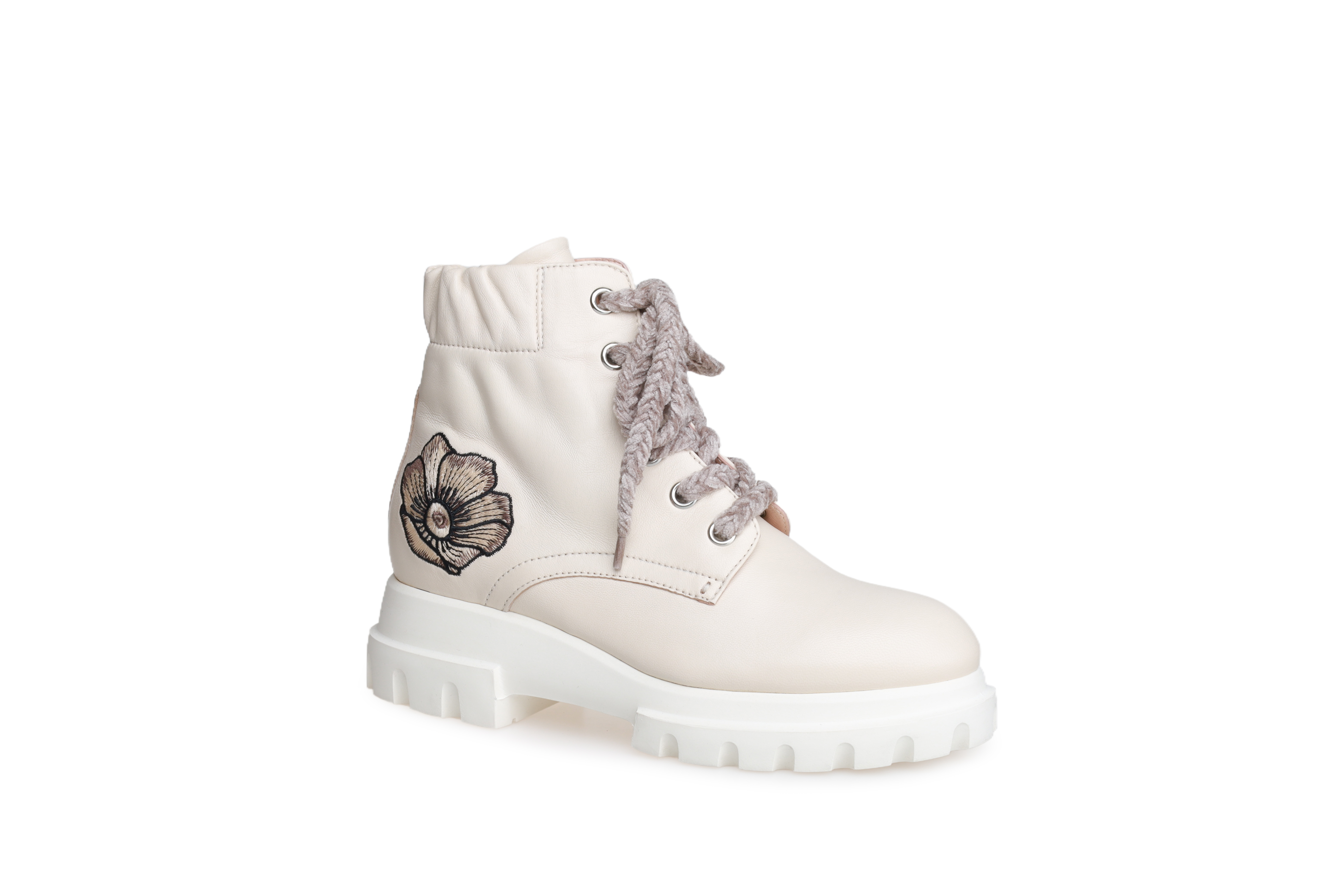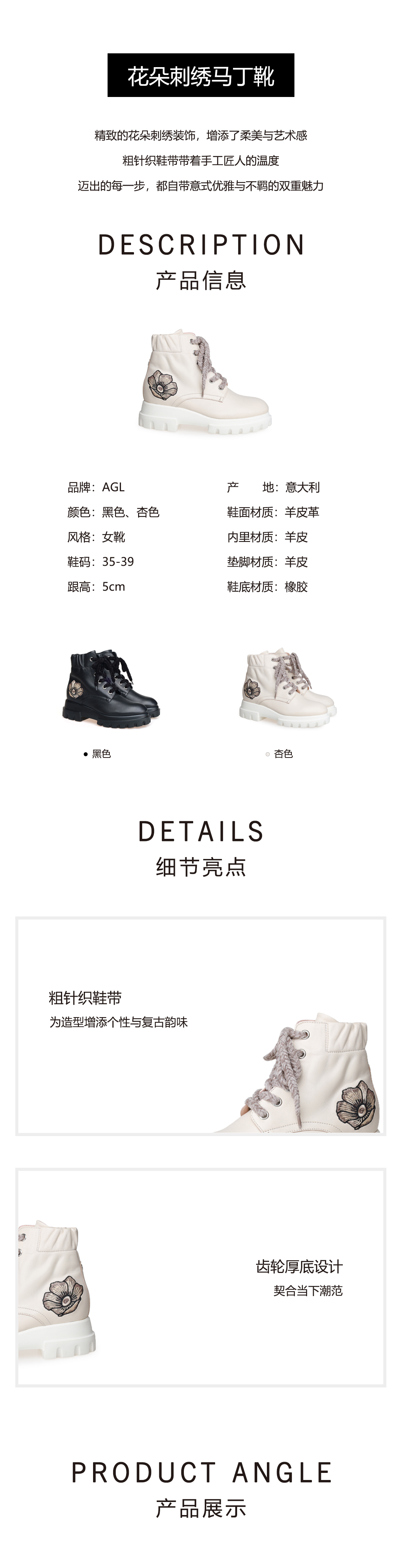 豪麟名鞋AGL女鞋马丁靴羊皮革D756596杏色