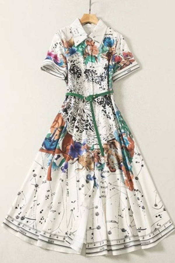 Le Malene 翻领动物印花中长连衣裙 16587