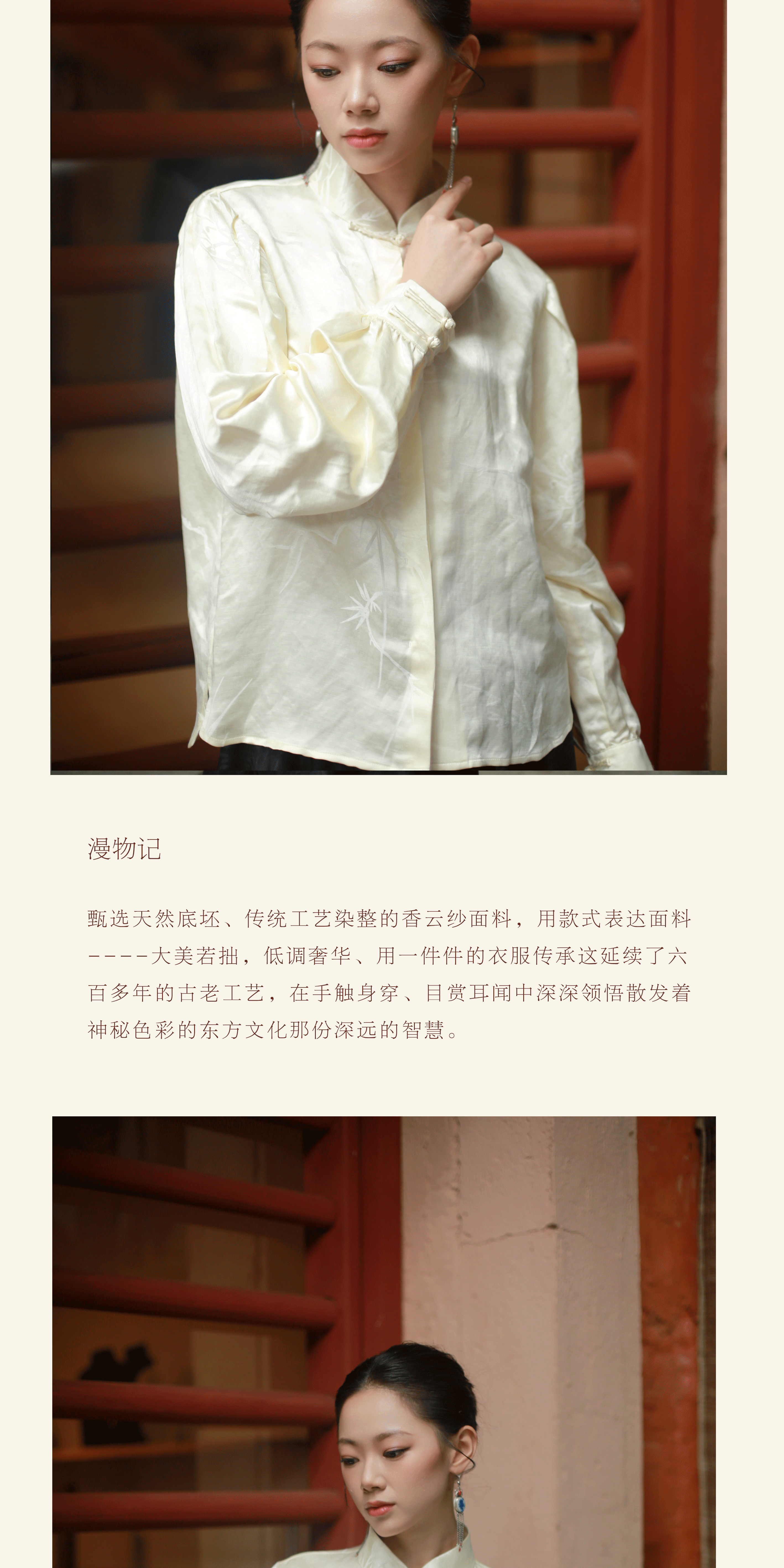 漫物记丝麻立领长袖衬衫MWJ-513