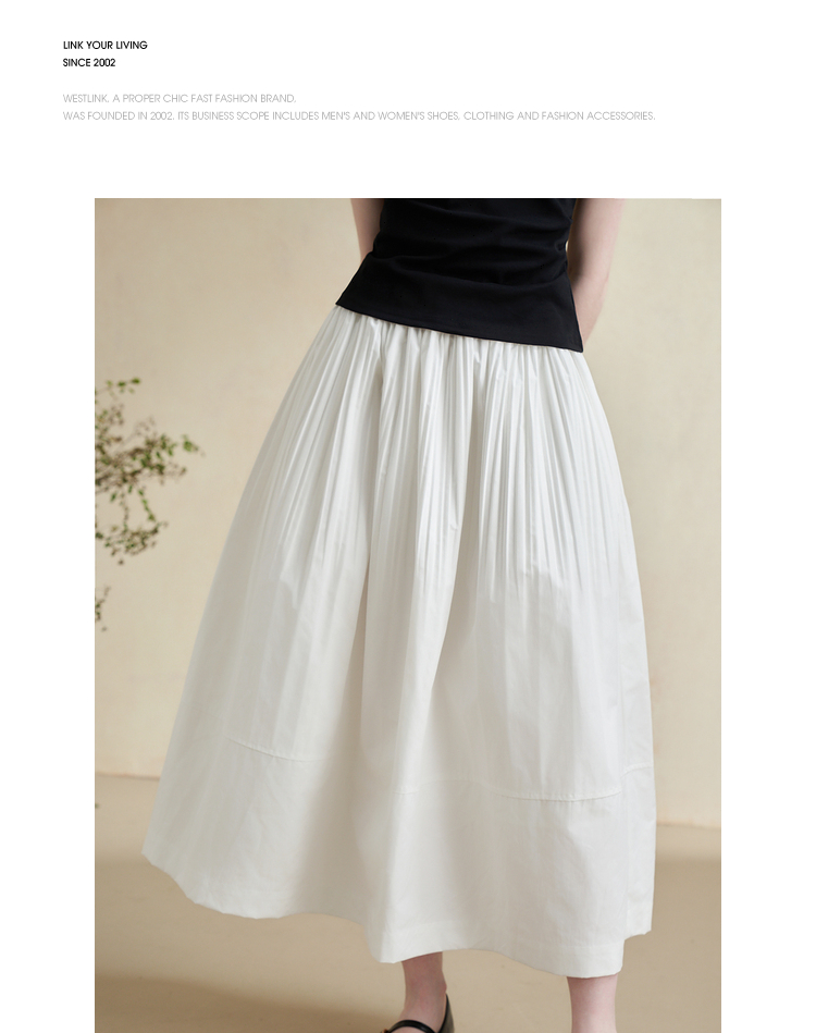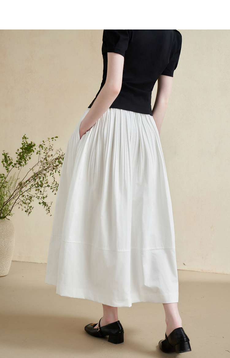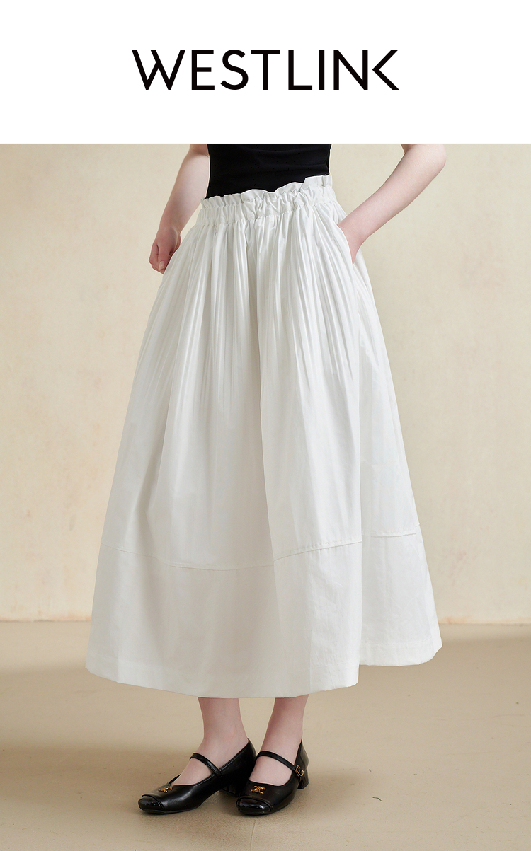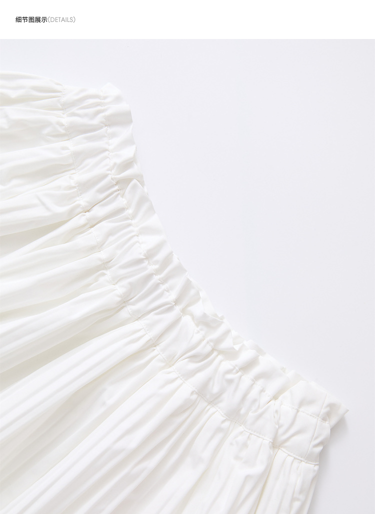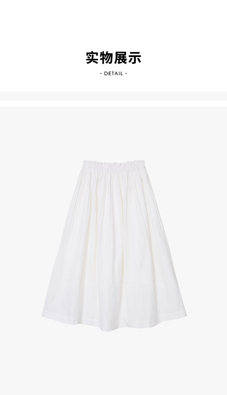 温柔文艺风肌理感半身裙女简约弹力松紧腰小白裙V2241825