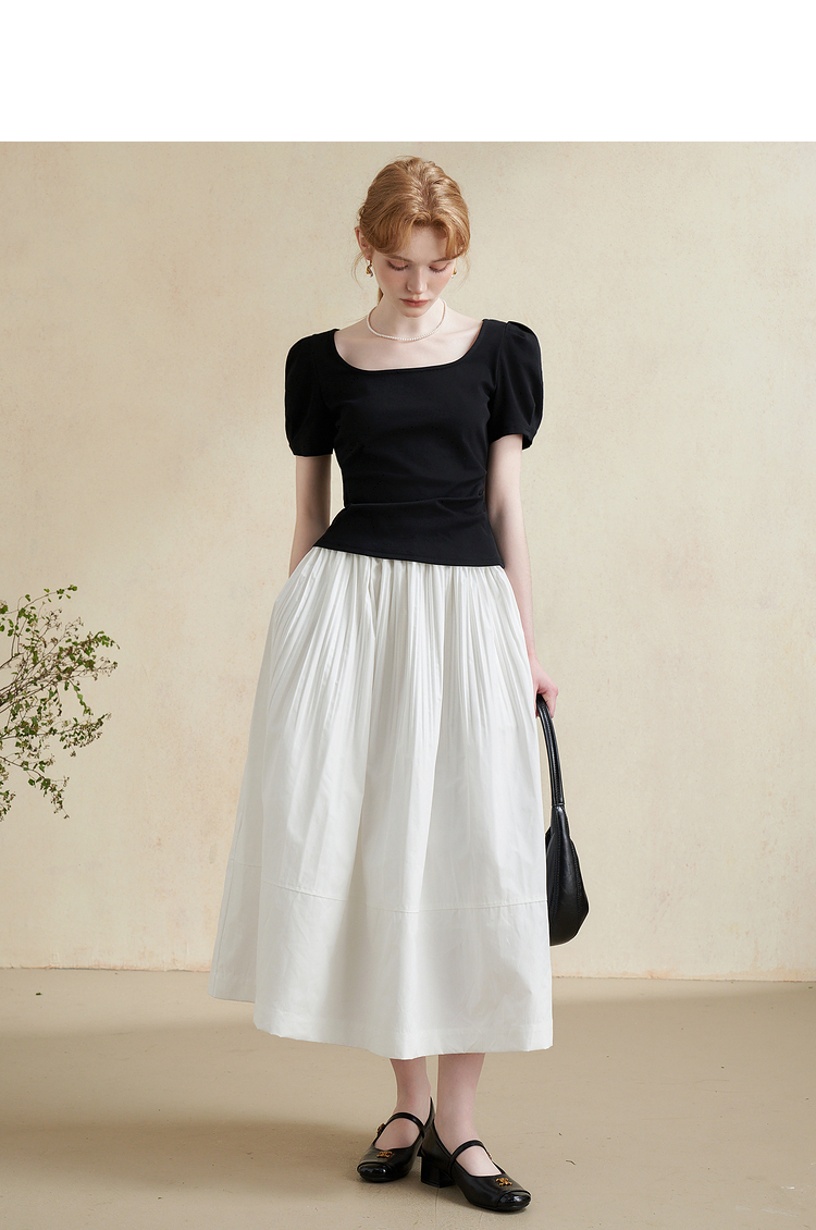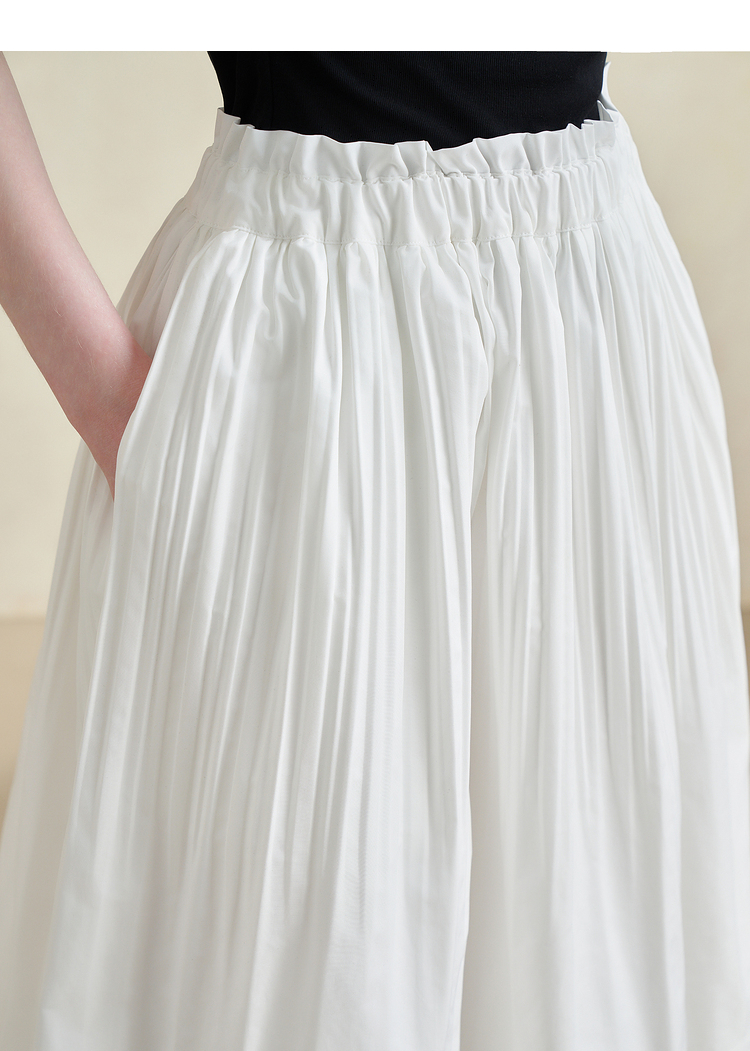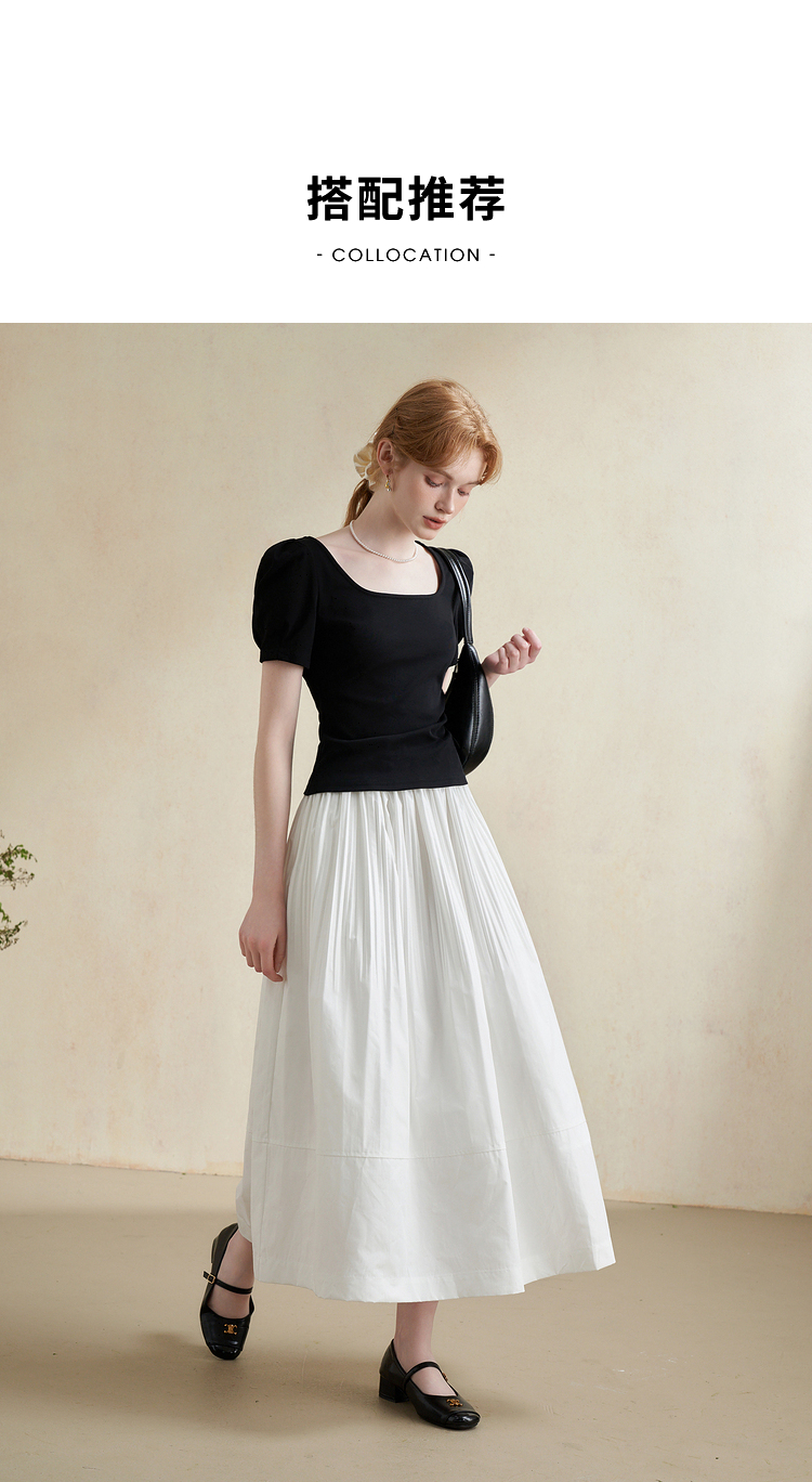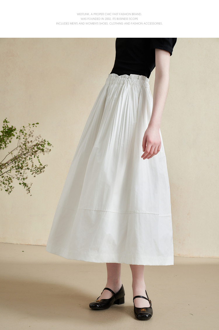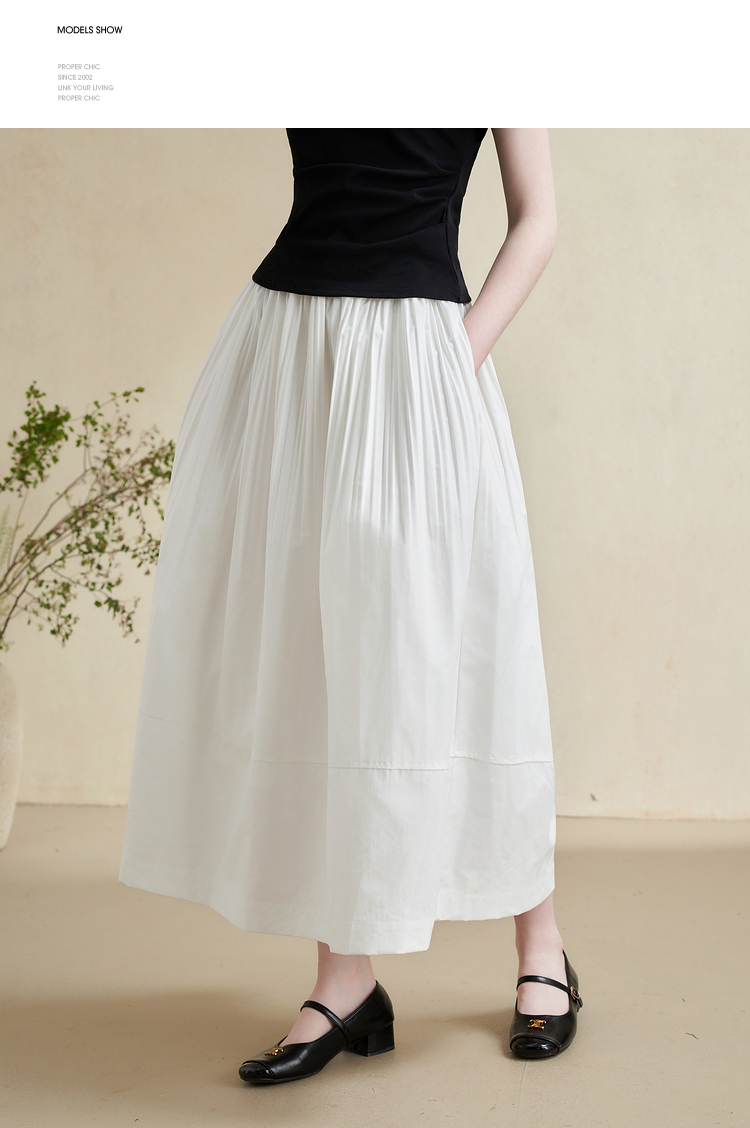 温柔文艺风肌理感半身裙女简约弹力松紧腰小白裙V2241825