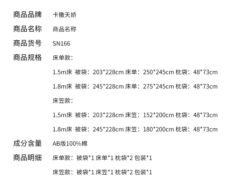 【12月】卡撒天娇 纯棉磨毛床笠小四件【7F童床】[广百北京路店]