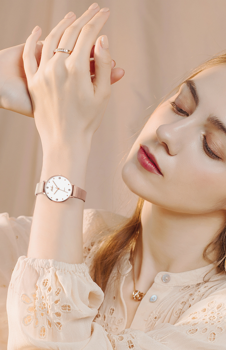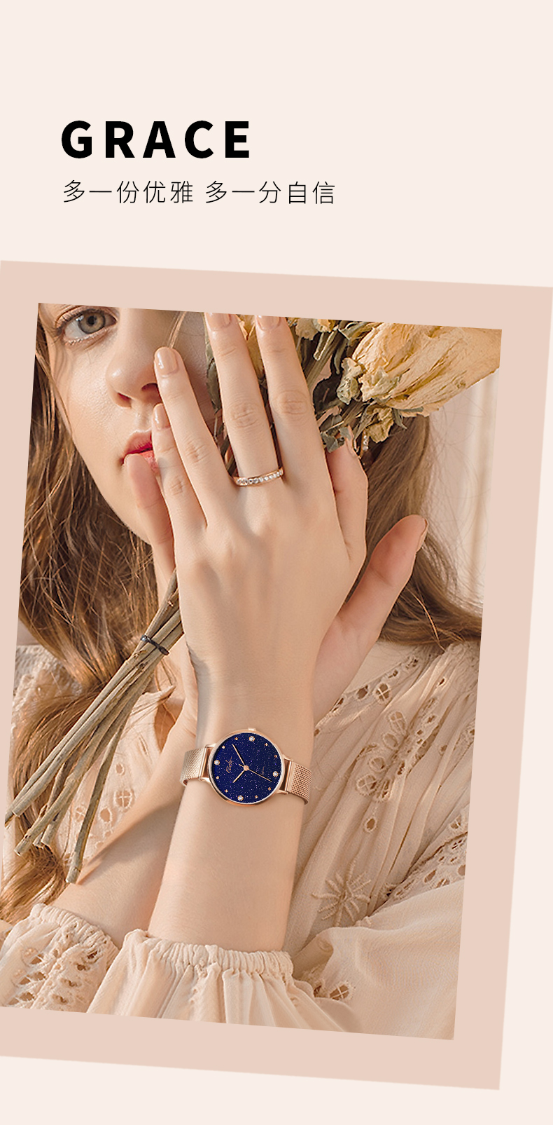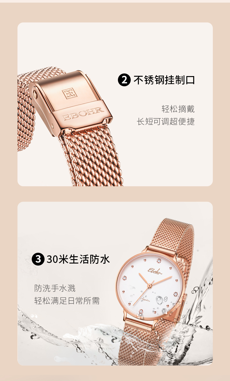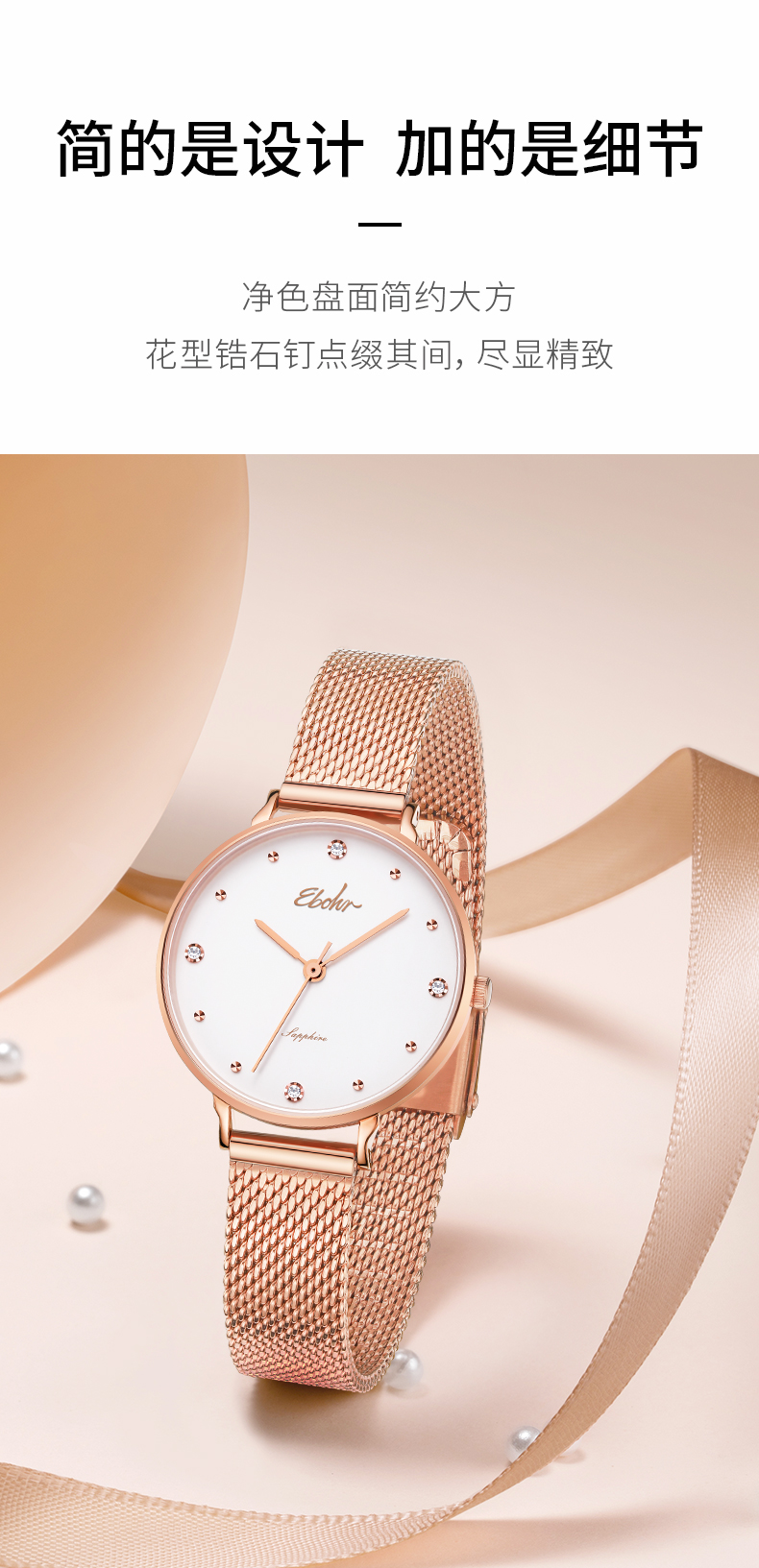 依波(EBOHR)手表卡纳系列简约纤薄防水编织带石英女表5150