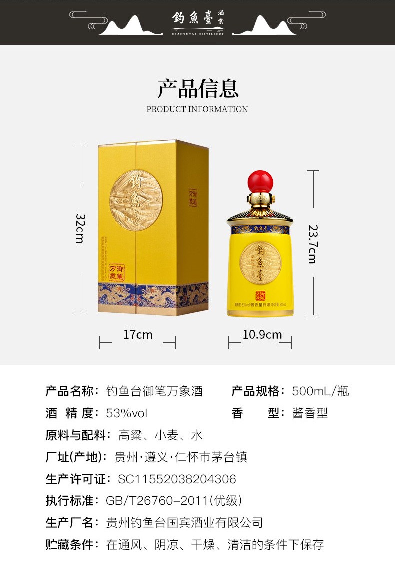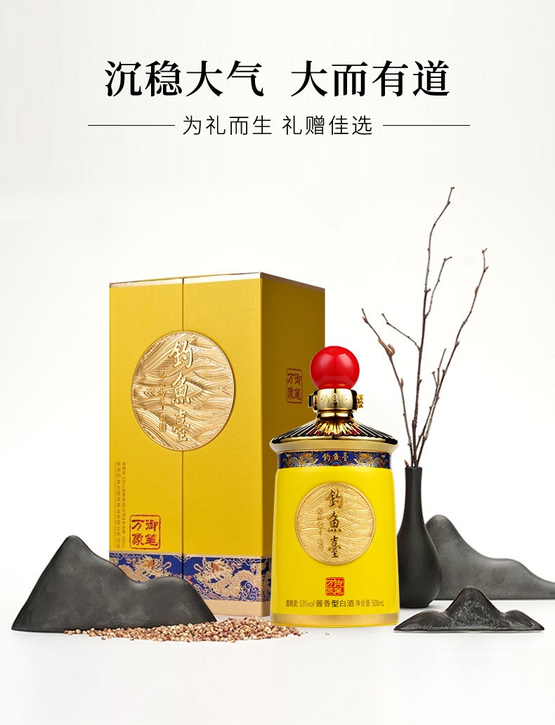 贵州钓鱼台国宾乾隆御笔万象53度酱香型白酒500ml单瓶礼盒装收藏