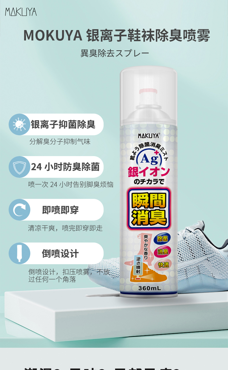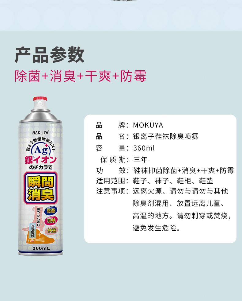 【已下架】积分换购 | MOKUYA银离子鞋袜除臭喷雾360ml*2瓶(不支持无理由退换)[福利品]