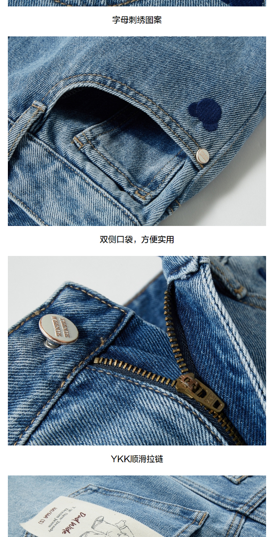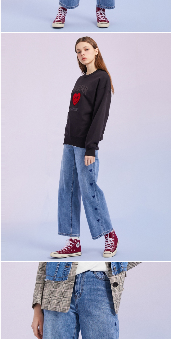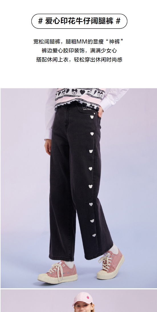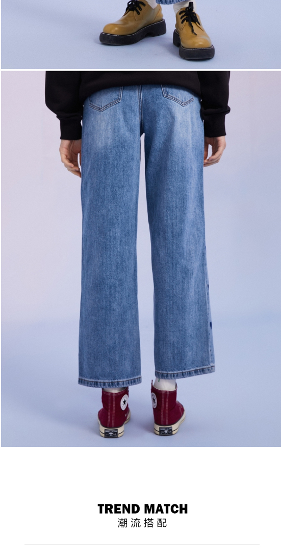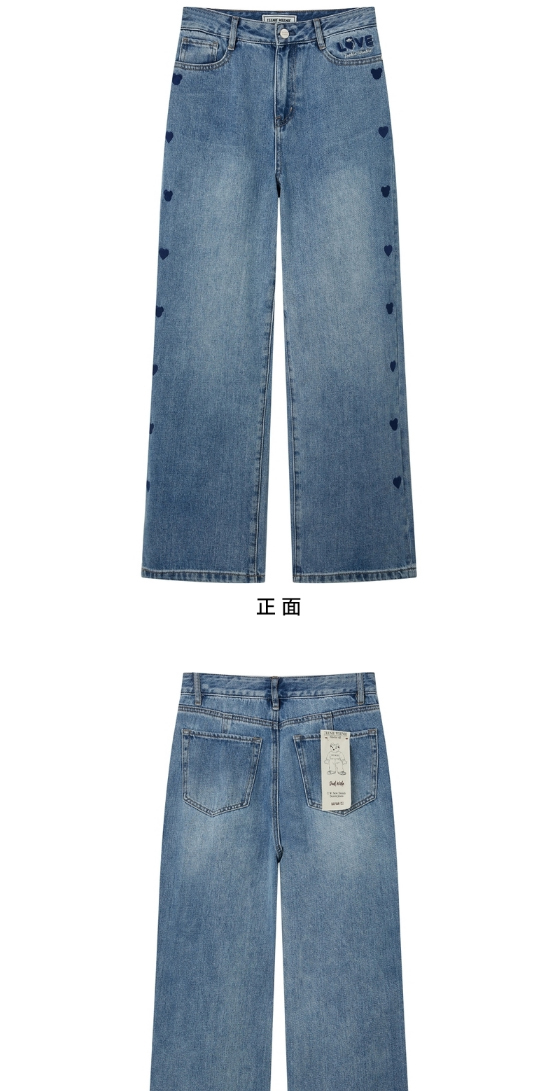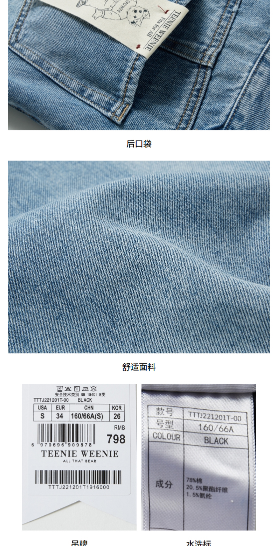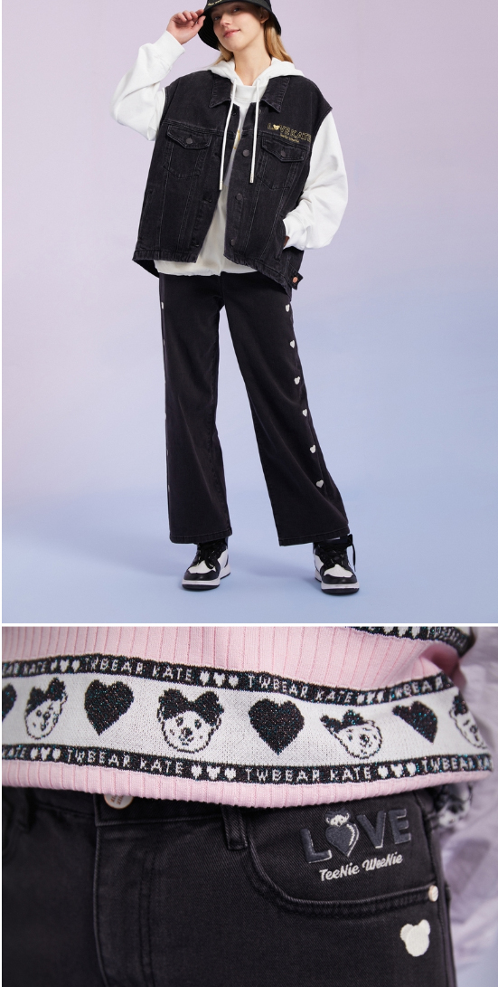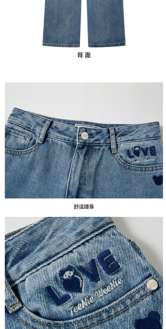 TeenieWeenie小熊宽松牛仔长裤直筒裤阔腿裤韩版显瘦女2022春夏款TTTJ221201T
