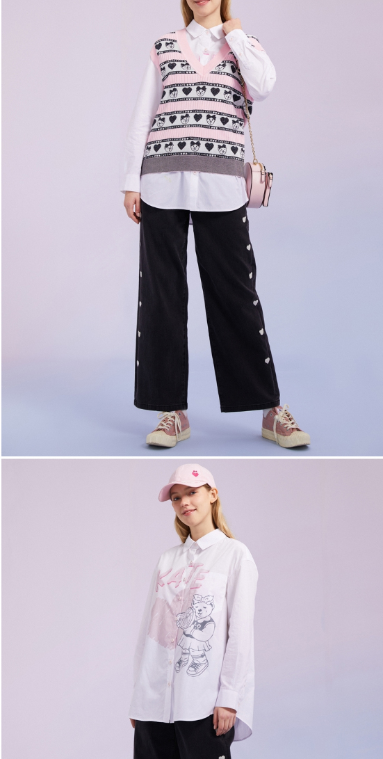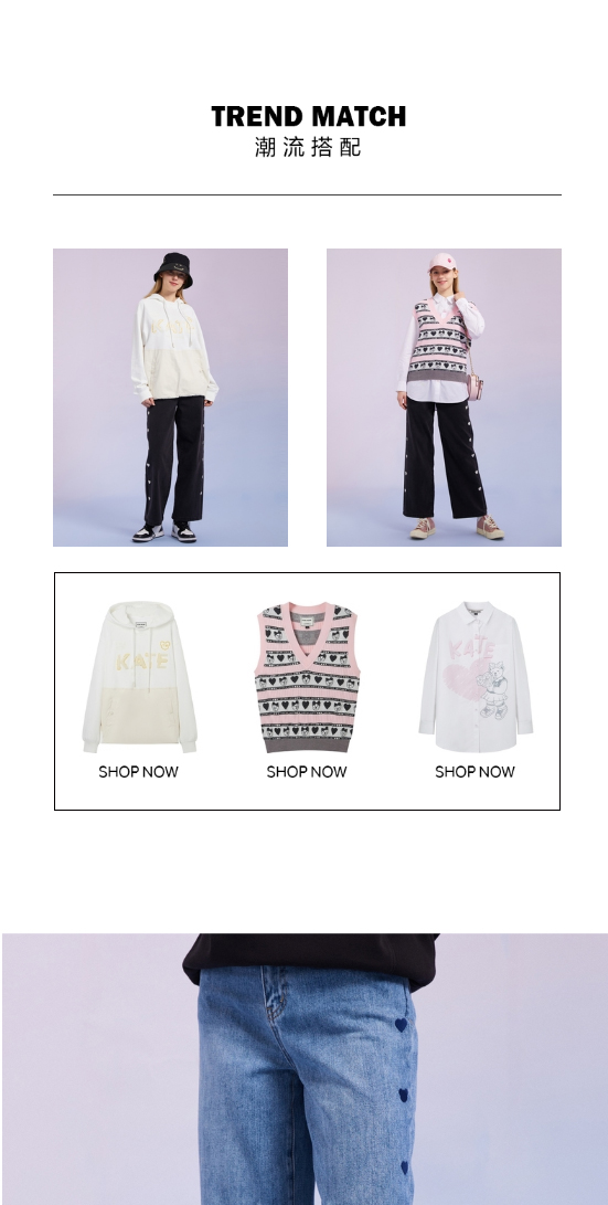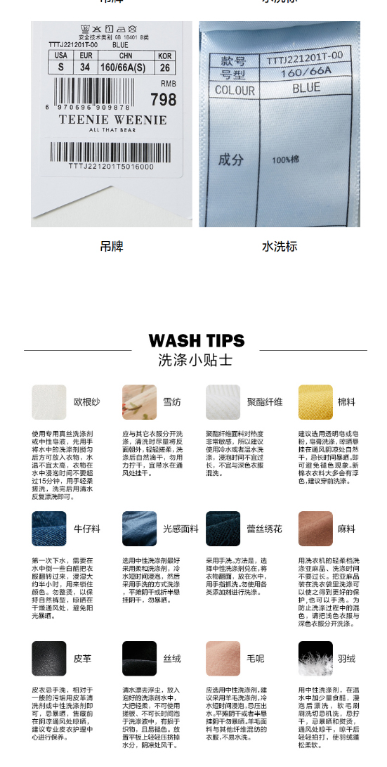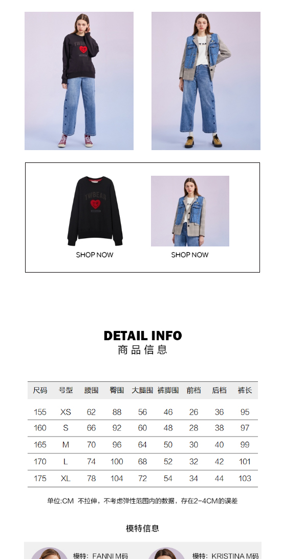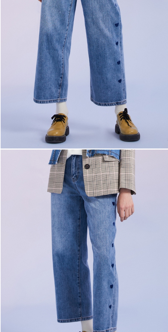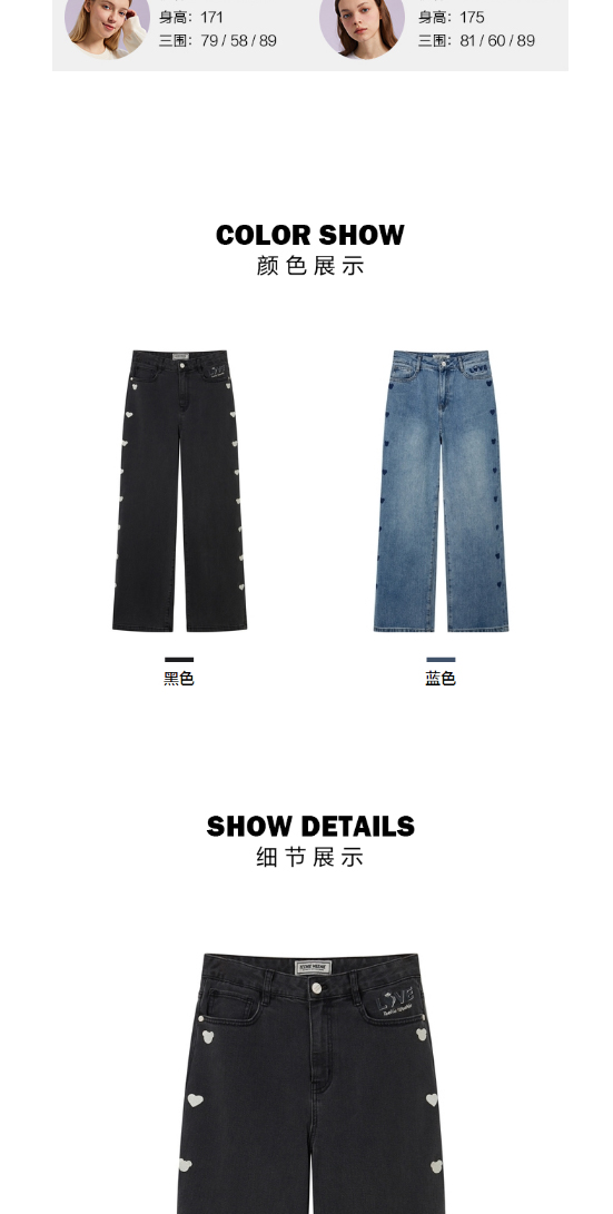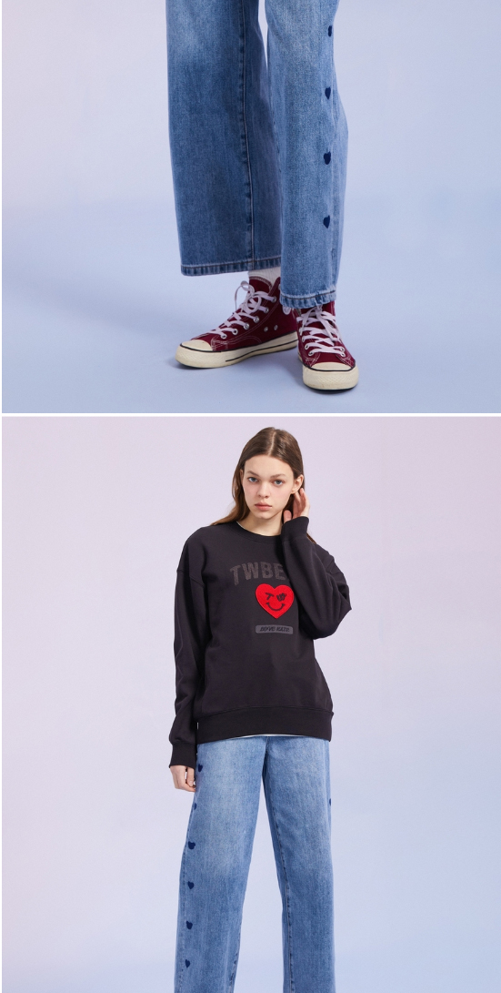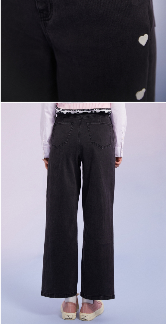 TeenieWeenie小熊宽松牛仔长裤直筒裤阔腿裤韩版显瘦女2022春夏款TTTJ221201T