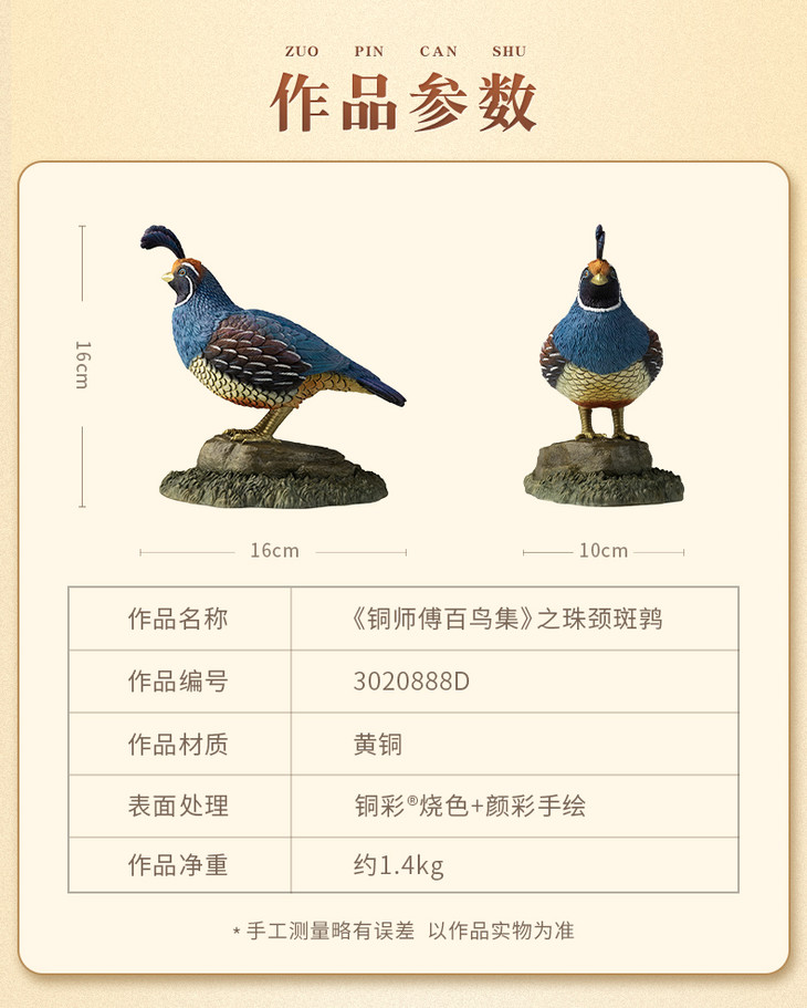 铜师傅 铜摆件《铜师傅百鸟集》之珠颈斑鹑 家居饰品
