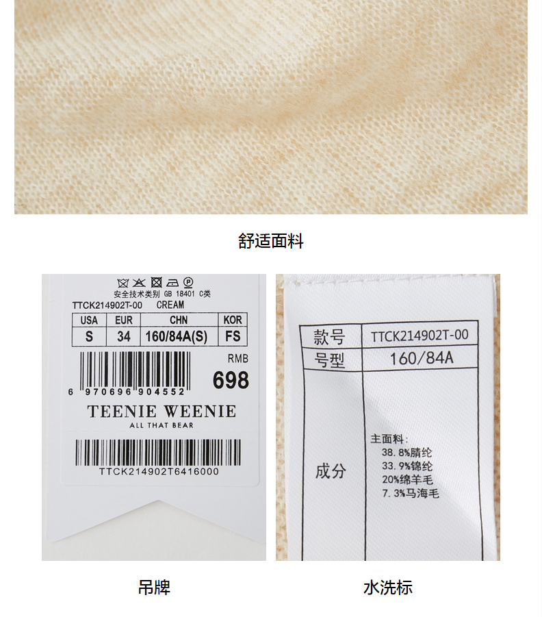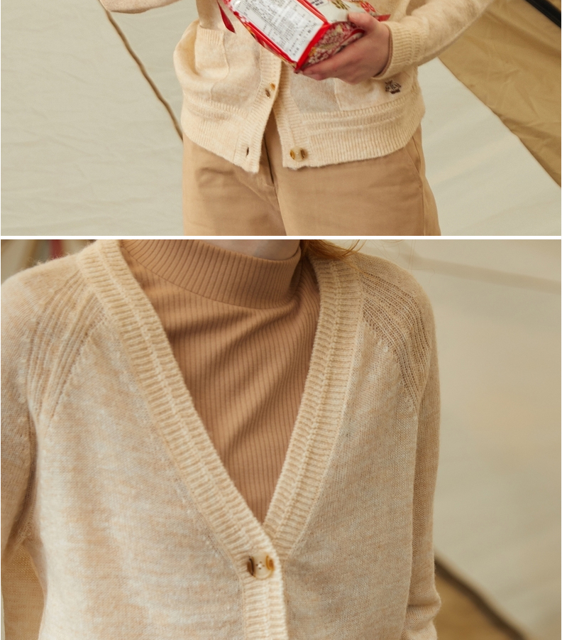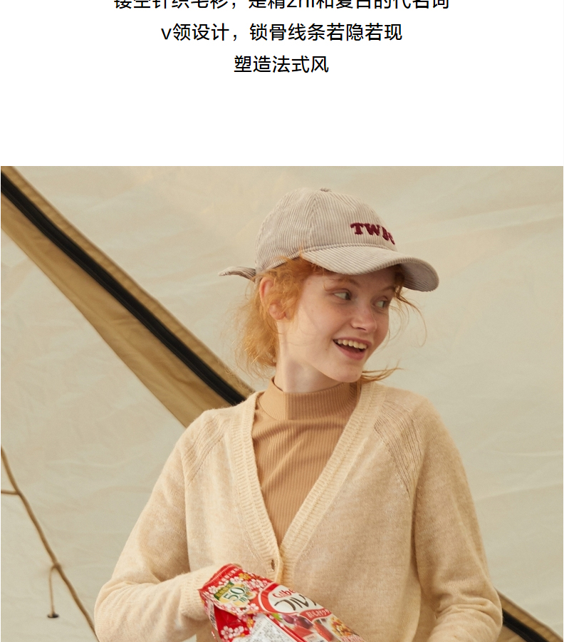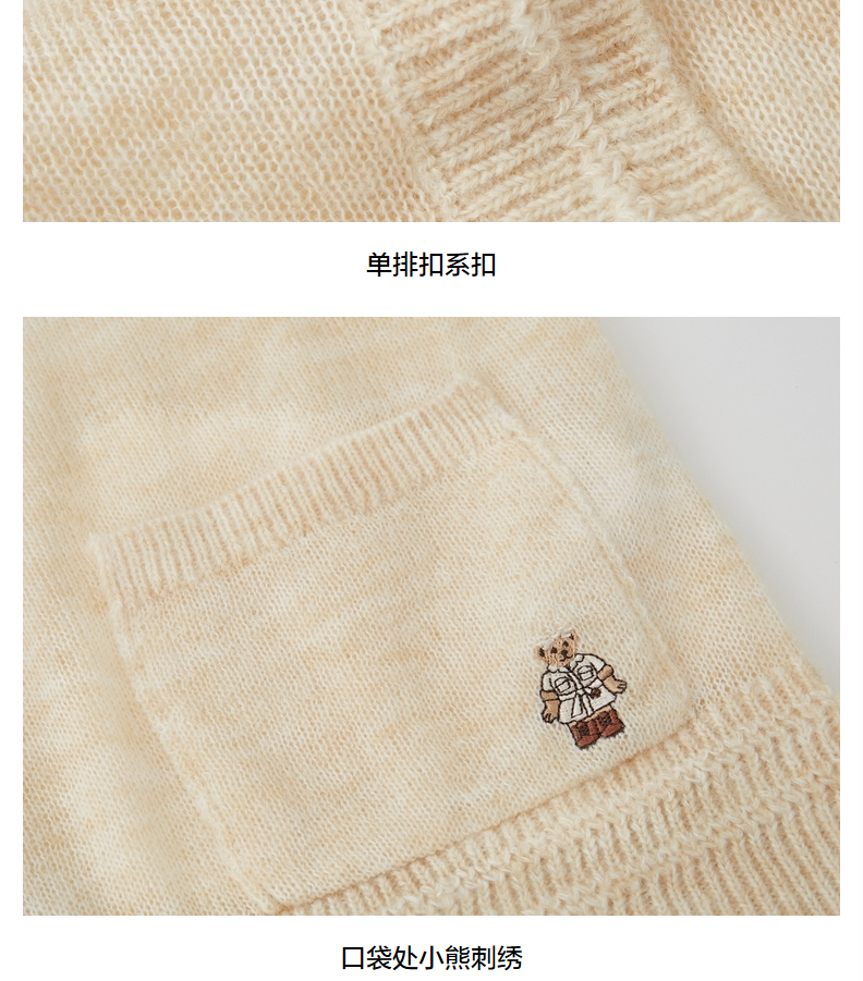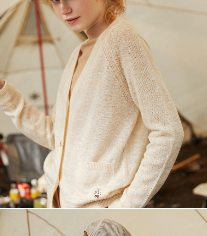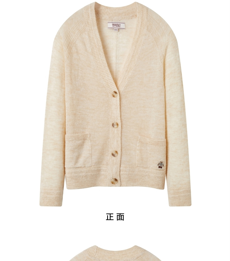 TeenieWeenie小熊V领针织衫开衫毛衣外套修身显瘦外穿女2021冬款TTCK214902T