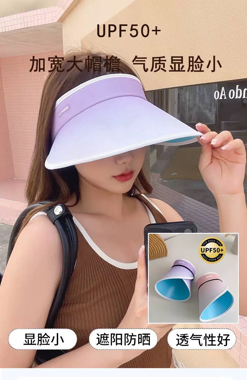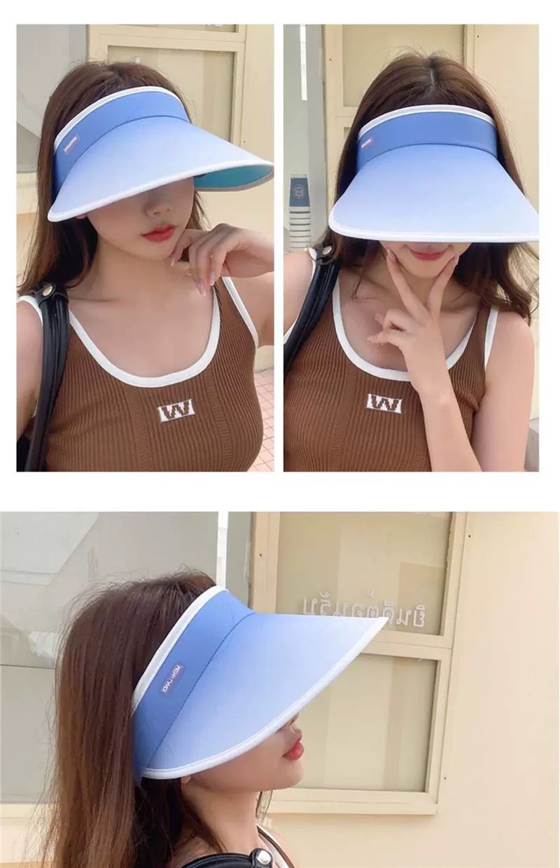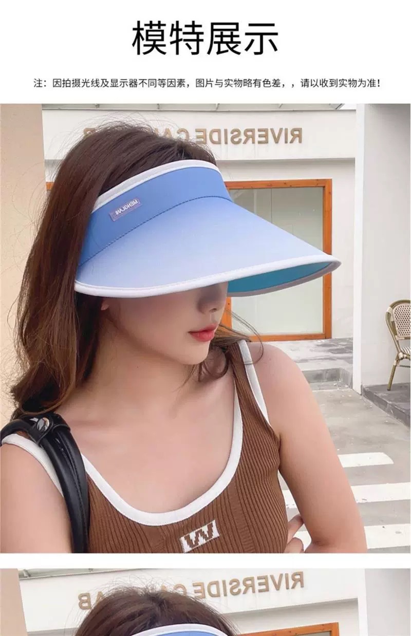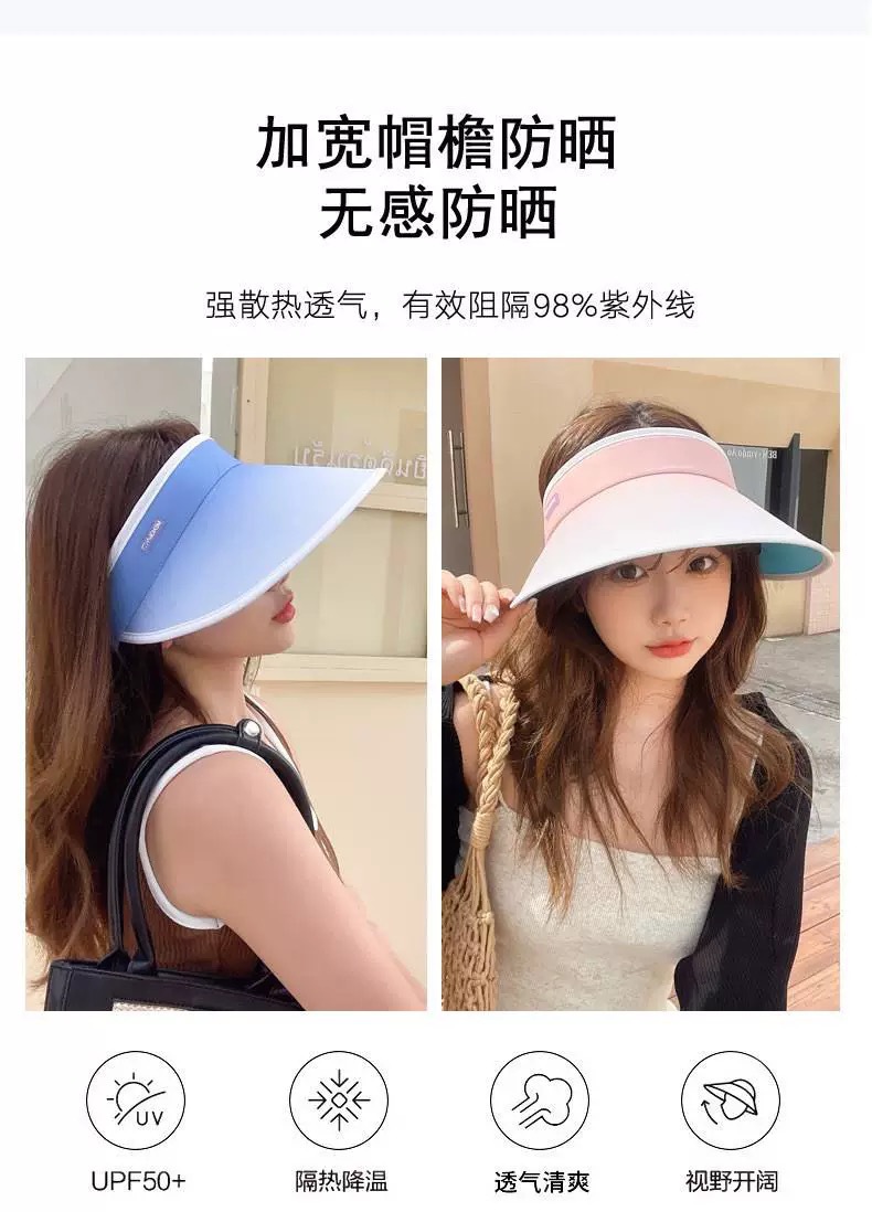 【外出旅行,加宽12cm大帽檐】夏日时尚必备!空顶遮阳,防晒护肤。女孩们的沙滩party必备:可折叠调节渐变空顶防晒帽。升级版加宽帽檐SPF50+,显瘦小脸渐变色设计,让你美丽绝伦!