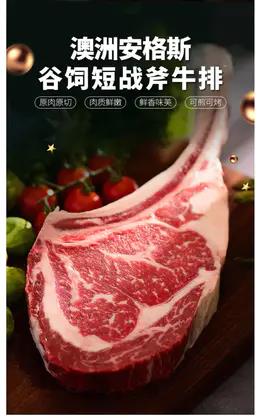 花间肥 【2-4片厚切 1.6斤-3.2斤装】澳洲安格斯谷饲短战斧牛排 原肉原切 肉质鲜嫩 鲜香味美 可煎可烤