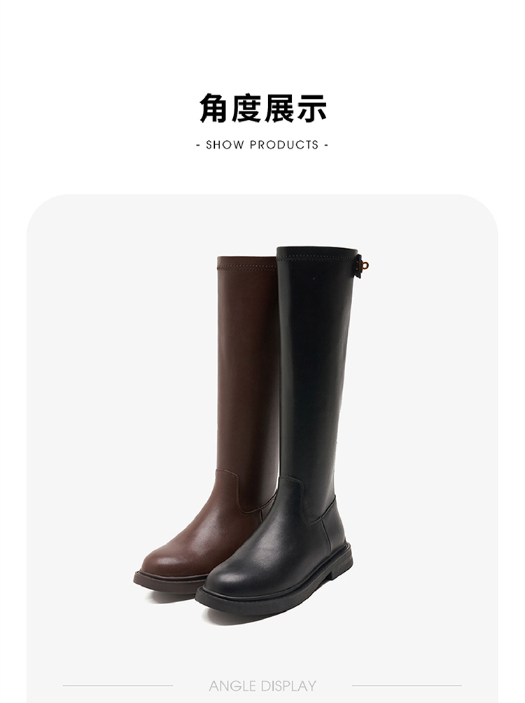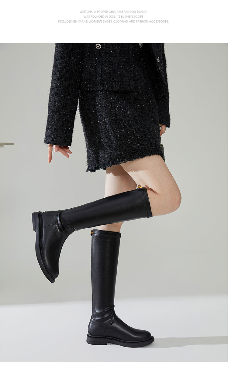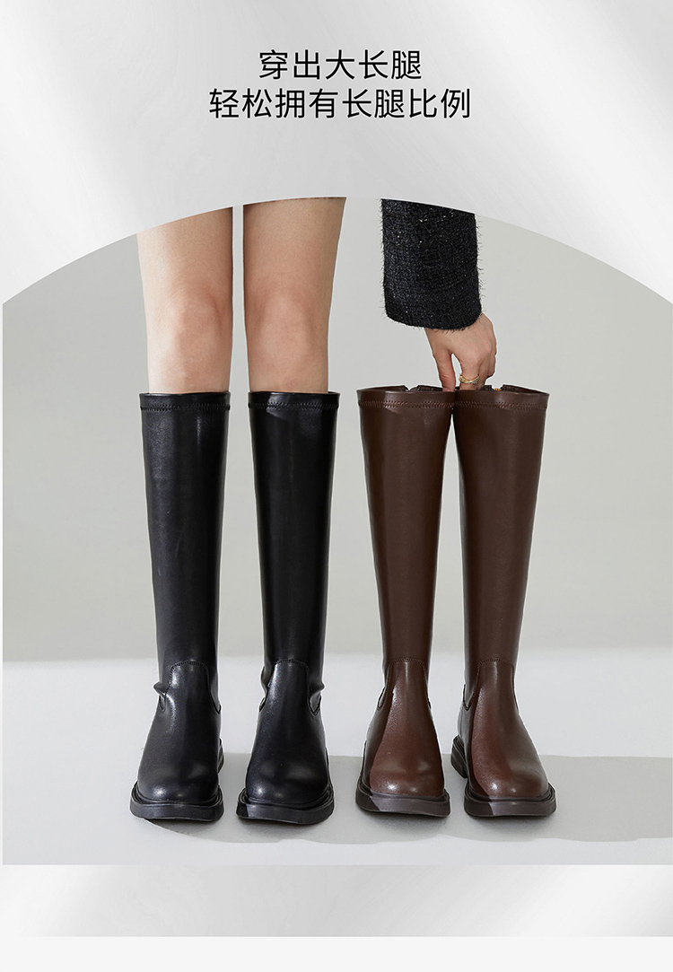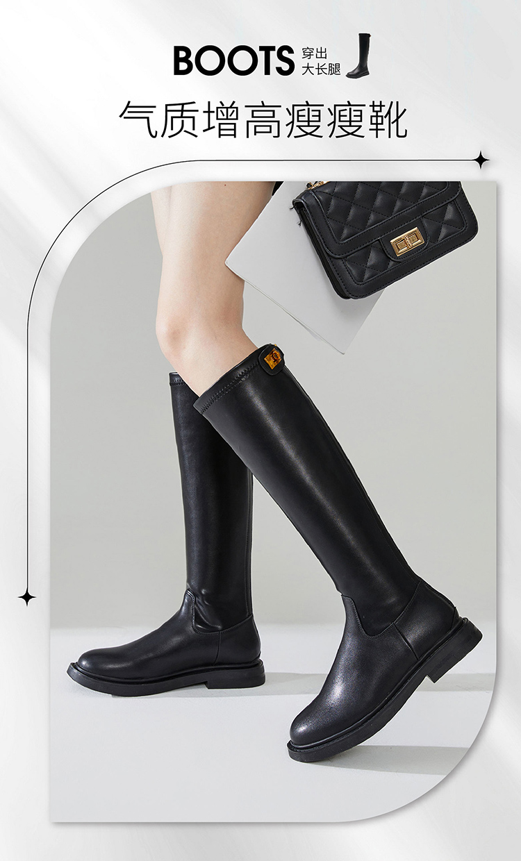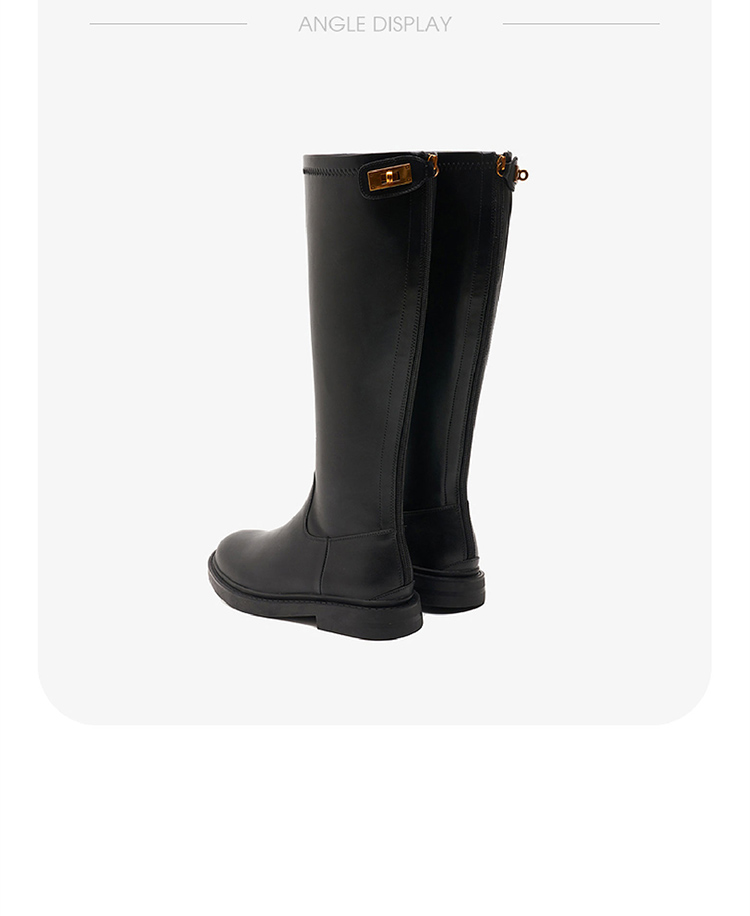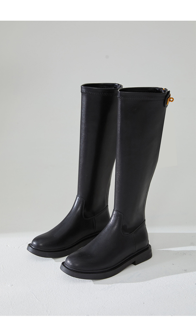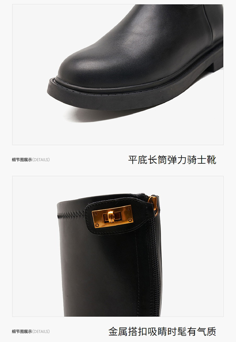 西遇长筒骑士靴女新款秋冬英伦风锁扣弹力高筒靴不过膝长靴子D0034270/D0034413