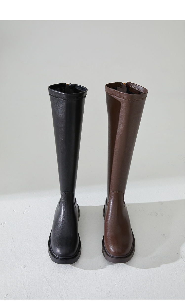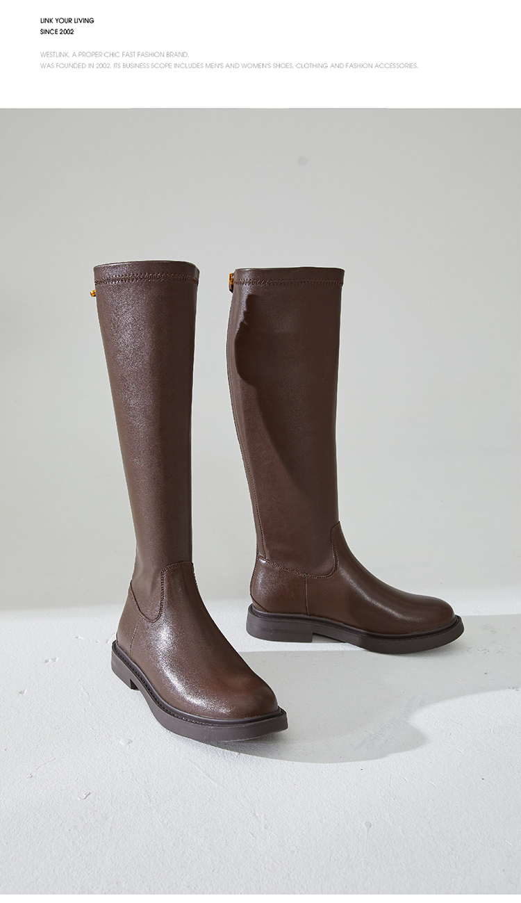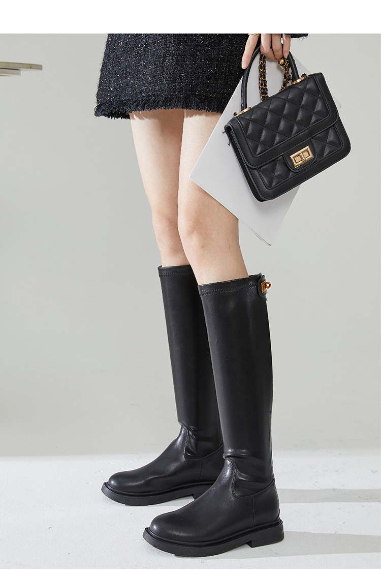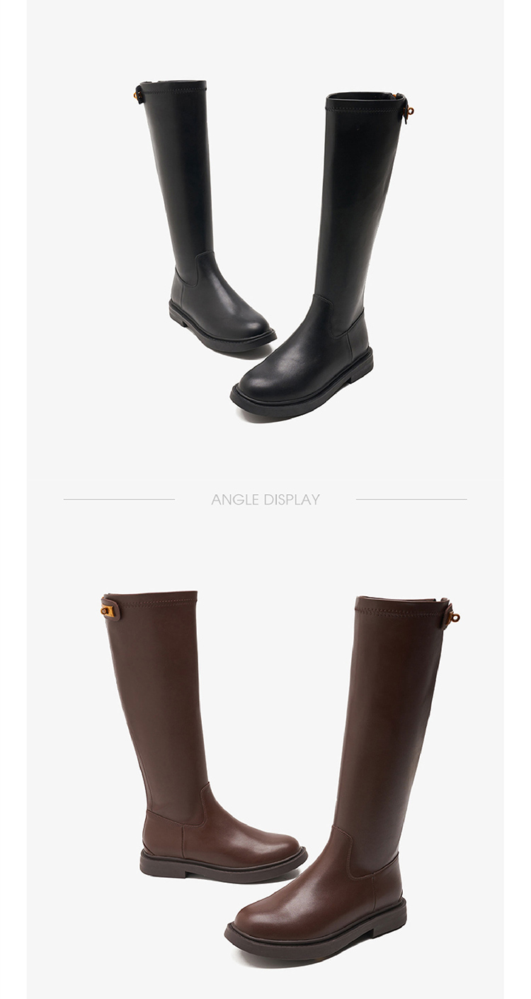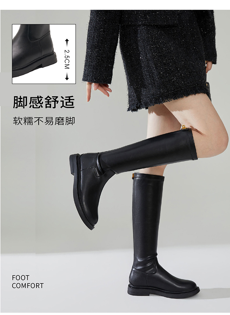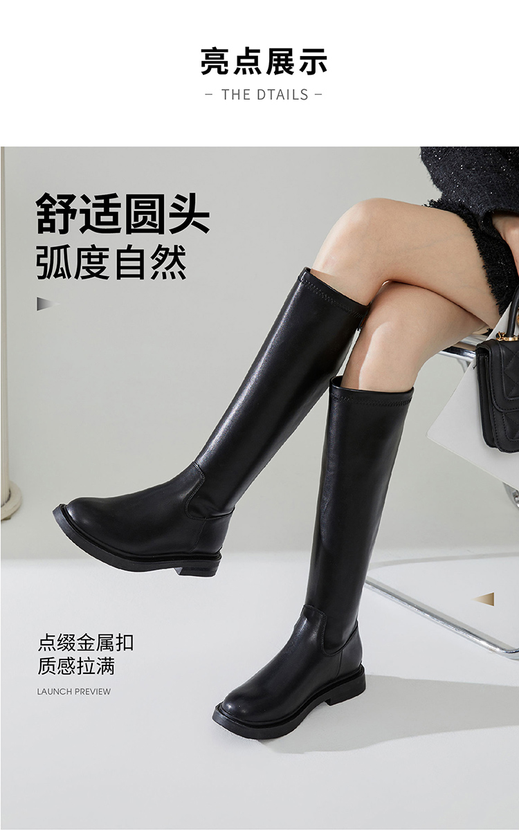 西遇长筒骑士靴女新款秋冬英伦风锁扣弹力高筒靴不过膝长靴子D0034270/D0034413