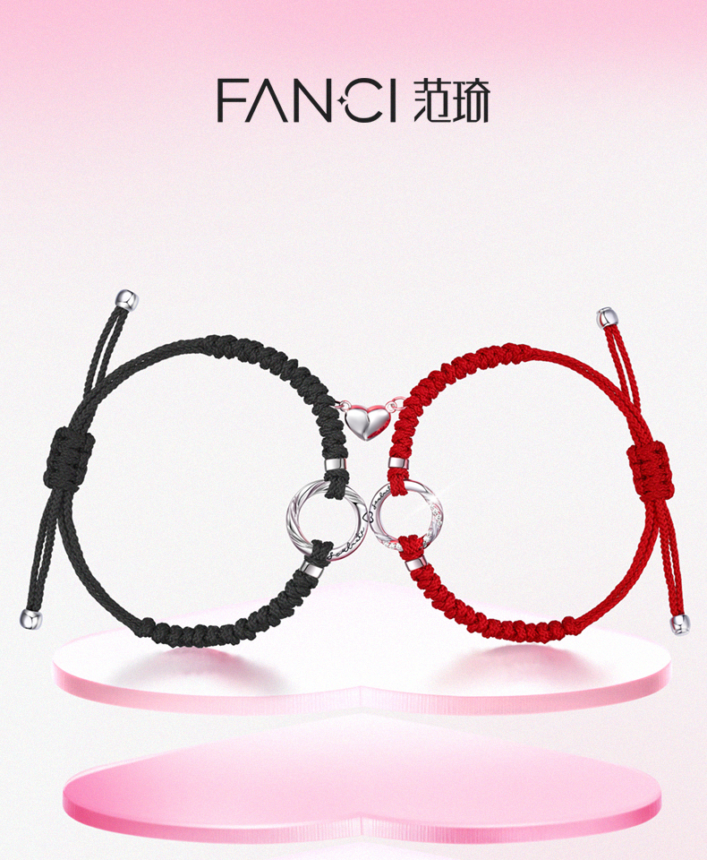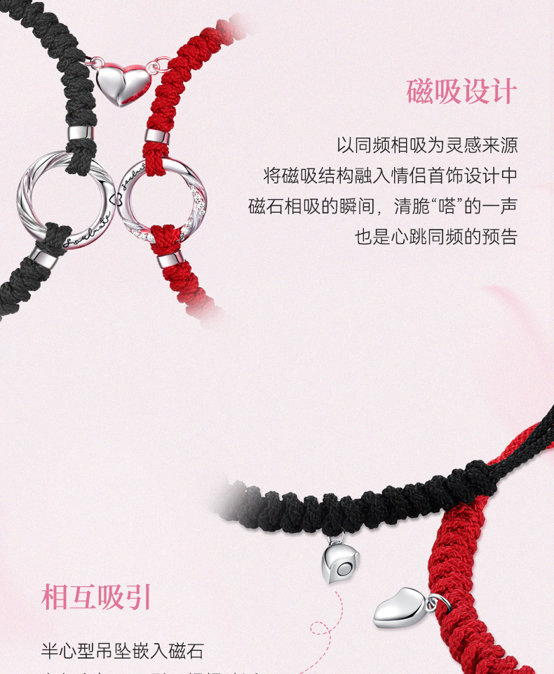 【恋爱频率情侣手绳-编绳款】Fanci范琦银饰 恋爱频率系列 爱心磁吸手链 下单即赠精美礼盒+顺丰包邮+运费险