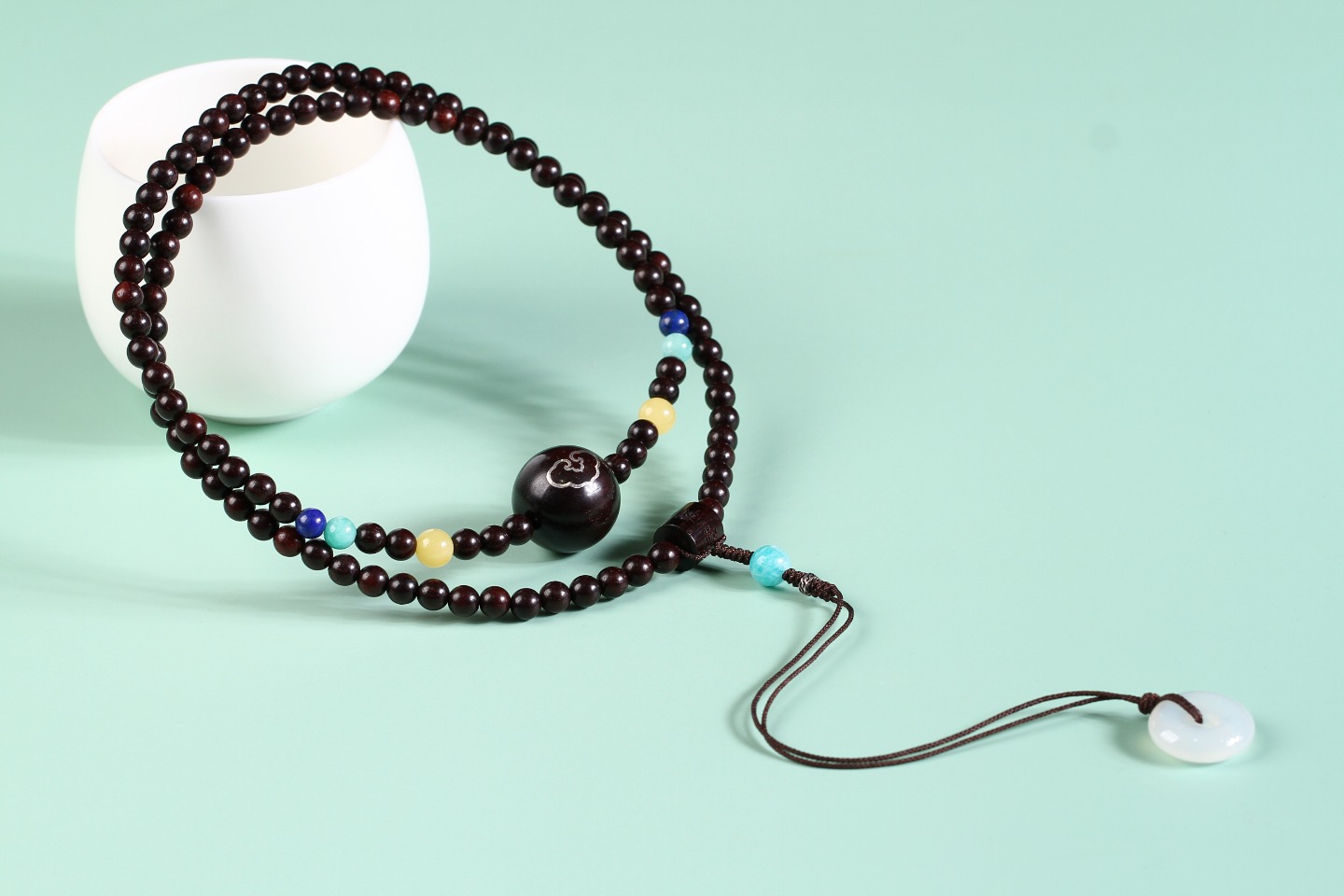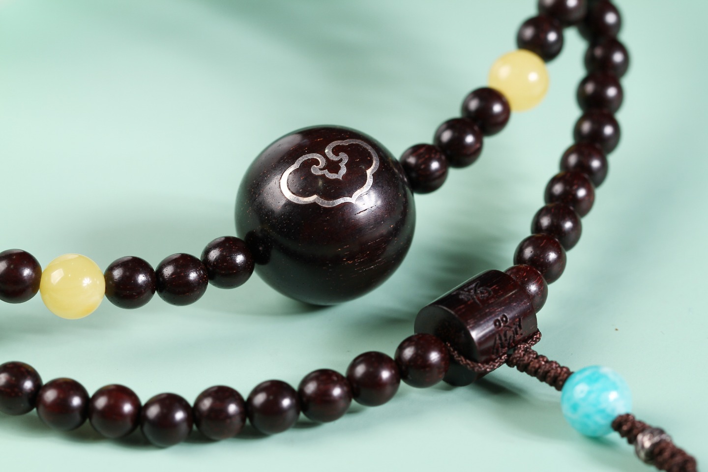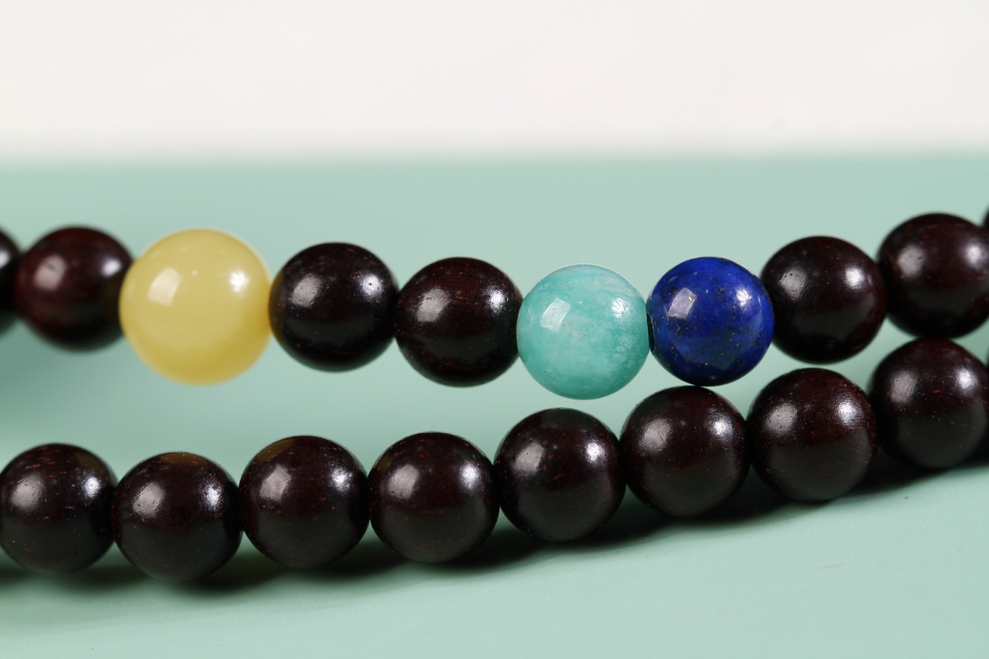 紫檀六字真言/青金/天河石/蜜蜡/玛瑙平安扣/银隔片/紫檀镶银如意