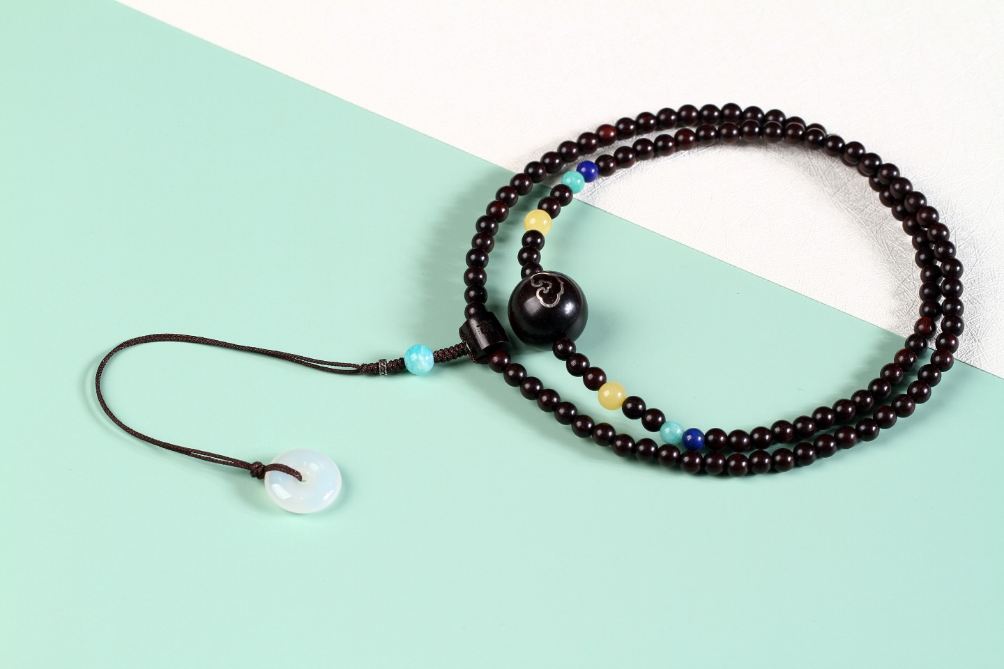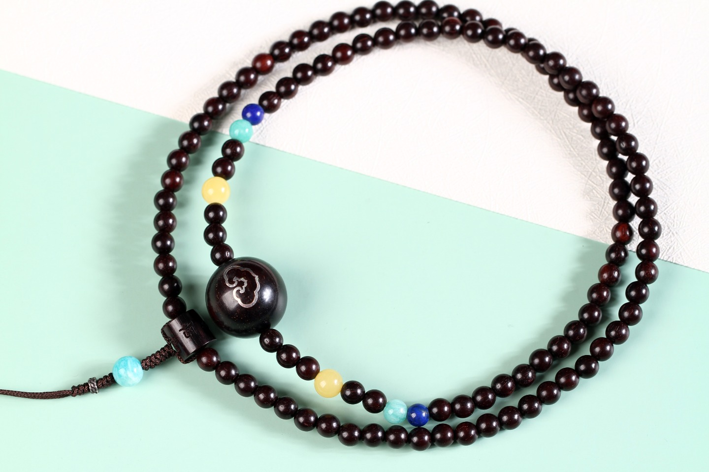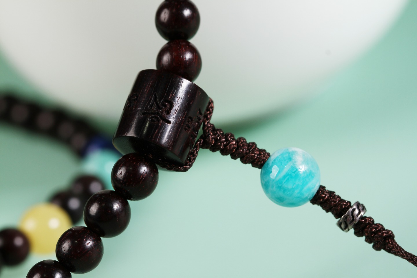 紫檀六字真言/青金/天河石/蜜蜡/玛瑙平安扣/银隔片/紫檀镶银如意