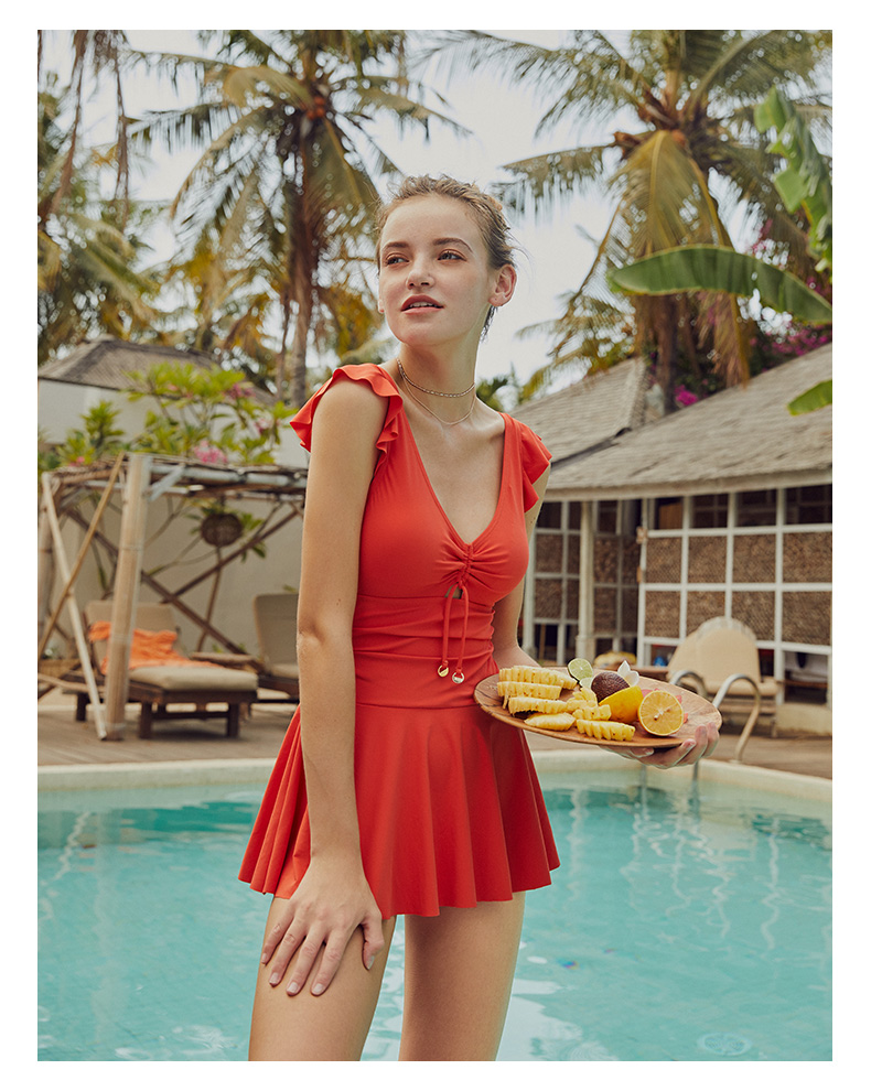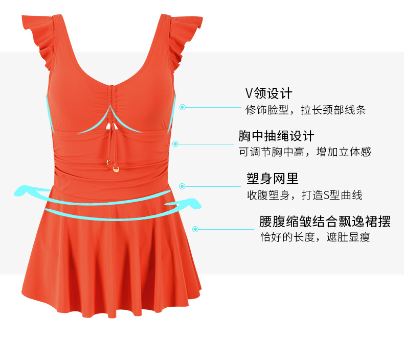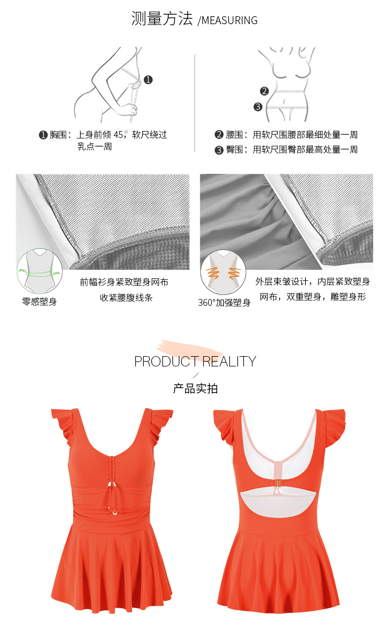 | 袖长: 无袖 | 款式: 裙式连体泳衣 |